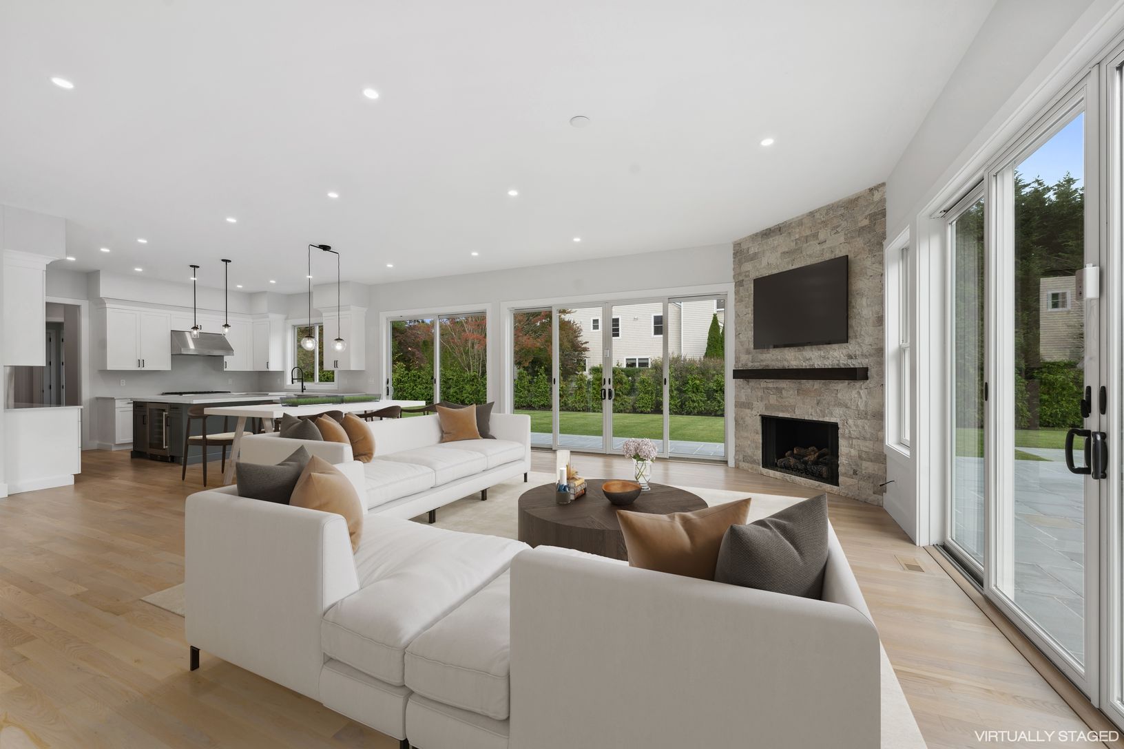 This newly constructed custom home has just been completed by Paramount Development Group, a luxury Hampton's home builder in business for 30 years. Nestled on a quiet street in Quogue Village, this 7 bedroom 6 bath home offers a spacious first floor open floor plan featuring a two story entry foyer, spacious living room with a magnificent stone fireplace and glass slider doors overlooking the pool/patio, open dining area, high end custom kitc