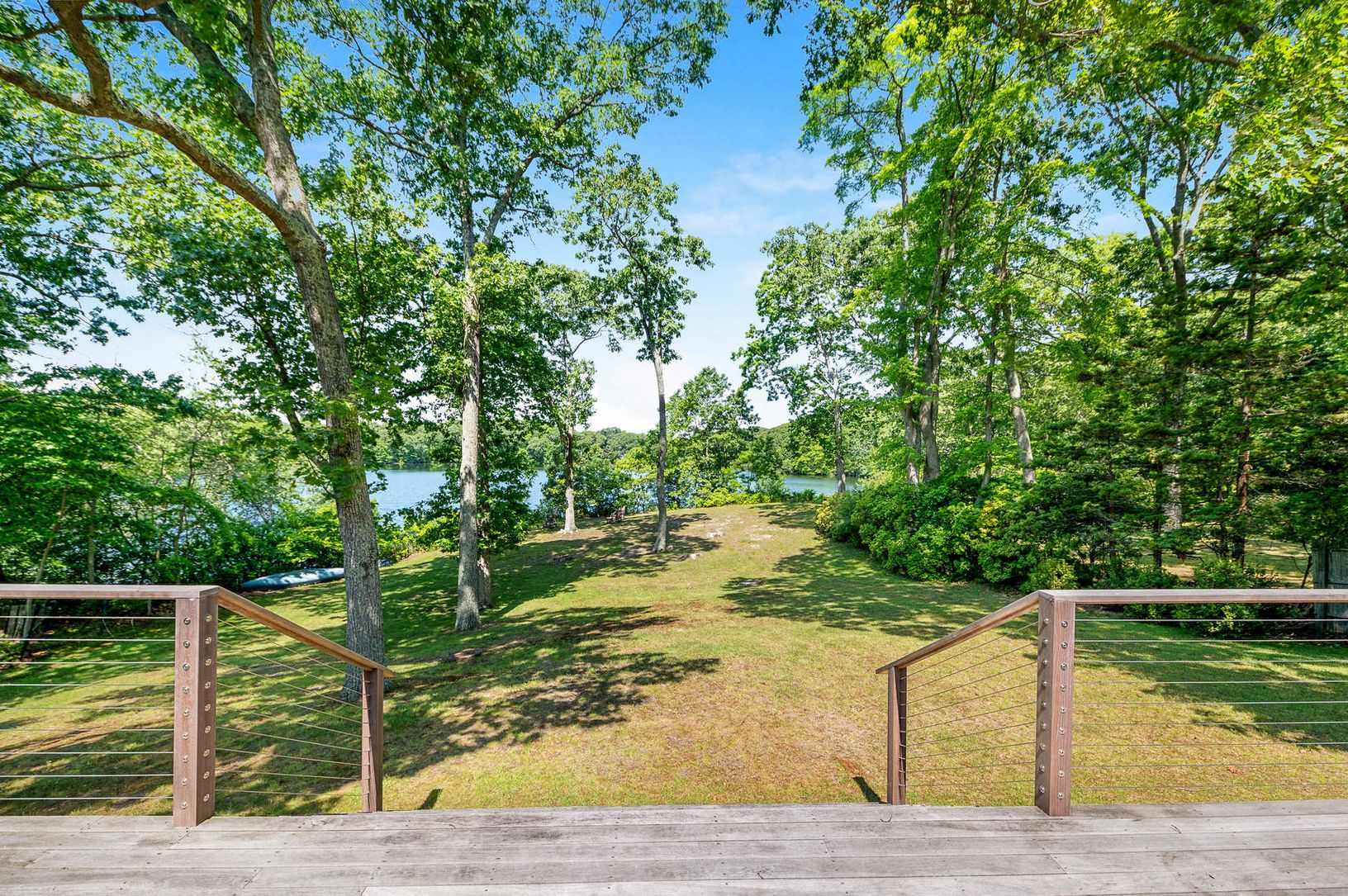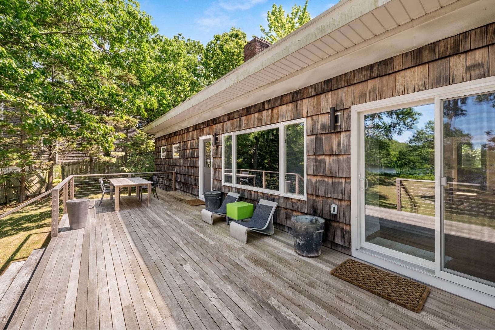 Charming 1660 s.f. cottage, sited on Shelter Island's Fresh Pond--an idyllic setting. Room for Pool. This beach house has 3 bedrooms, 2 full baths and sits on a private .65 acre parcel, affording privacy and beauty and a true sense of get-away. Renovated with lovely kitchen and baths, the mid-century vibe makes this chic cottage a very attractive property. The fireplace, eat-in kitchen and bonus room fill out the picture. The front yard runs d