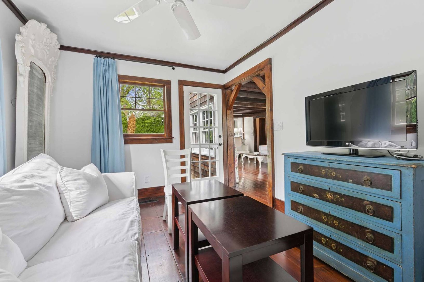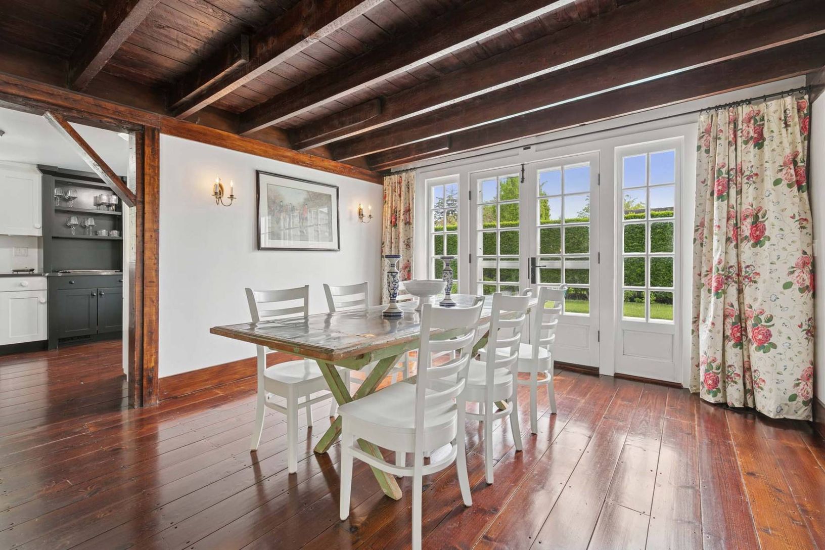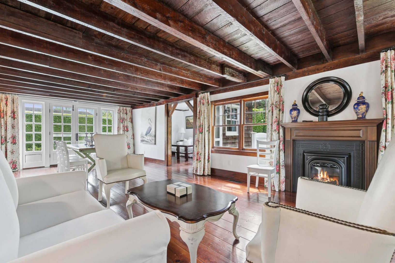 Welcome home to a picture-perfect Hamptons escape for the Summer, located in the heart of Southampton Village. Sited on a peaceful quarter acre, this charming cottage is claded in cedar-shake siding and has immediate appeal with 1,565 +/- sq. ft. of living space across 2 levels with 3 bedrooms, 2 full baths, and pool. Interiors boast beautiful hardwood floors, exposed beams, and antique wooden accents throughout. A well-sized kitchen is adjace