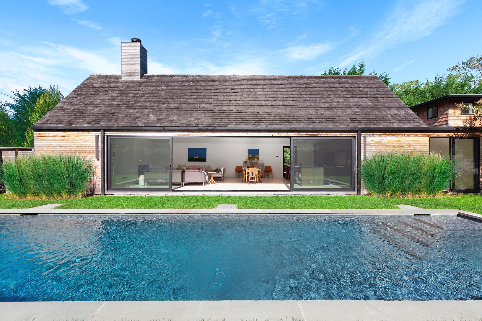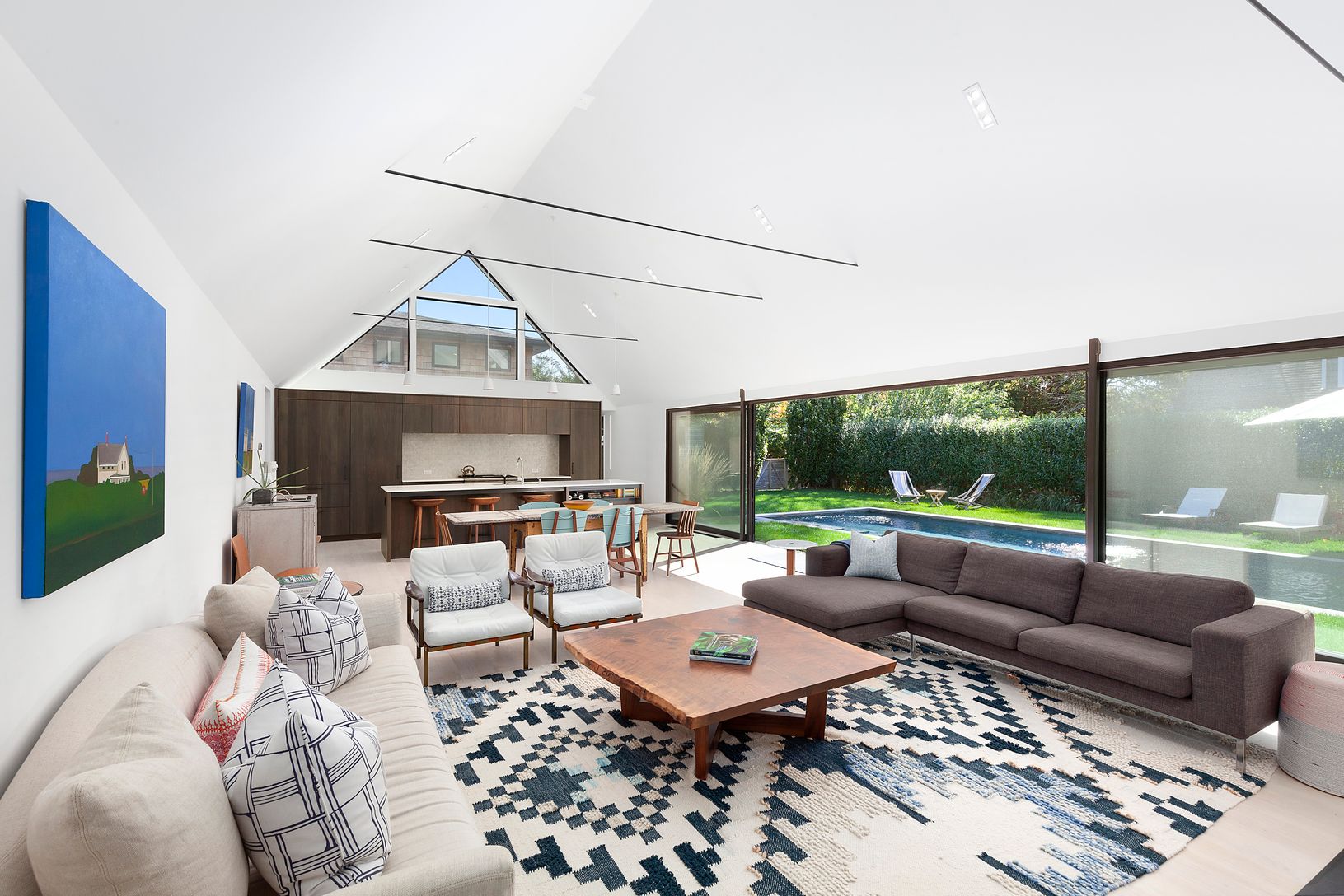 Rental Registration #: 19-947 This beautiful high end Modern four bedroom three and a half bathroom home was designed by award winning Nick Martin Architects and completed in 2017. The stunning Great Room, with peaked eighteen foot ceilings, features open living and dining with a chef's kitchen. A wall of glass sliding doors which retracts to open the space to the forty two by fourteen foot heated salt water Gunite Pool. Professional landscapi