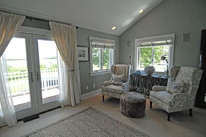 Panoramic views of Coecles Harbor and Gardiners Bay are the inspirational backdrop to this wonderfully complete, immaculate Traditional on 1.8 +/- acres. The entry foyer has a double height ceiling inviting sunlight in. There is an open living plan for living and dining areas and high end kitchen with French doors on both front and rear of the home, allowing for cross breezes during the summer. The wrap around entertainment decks just off the