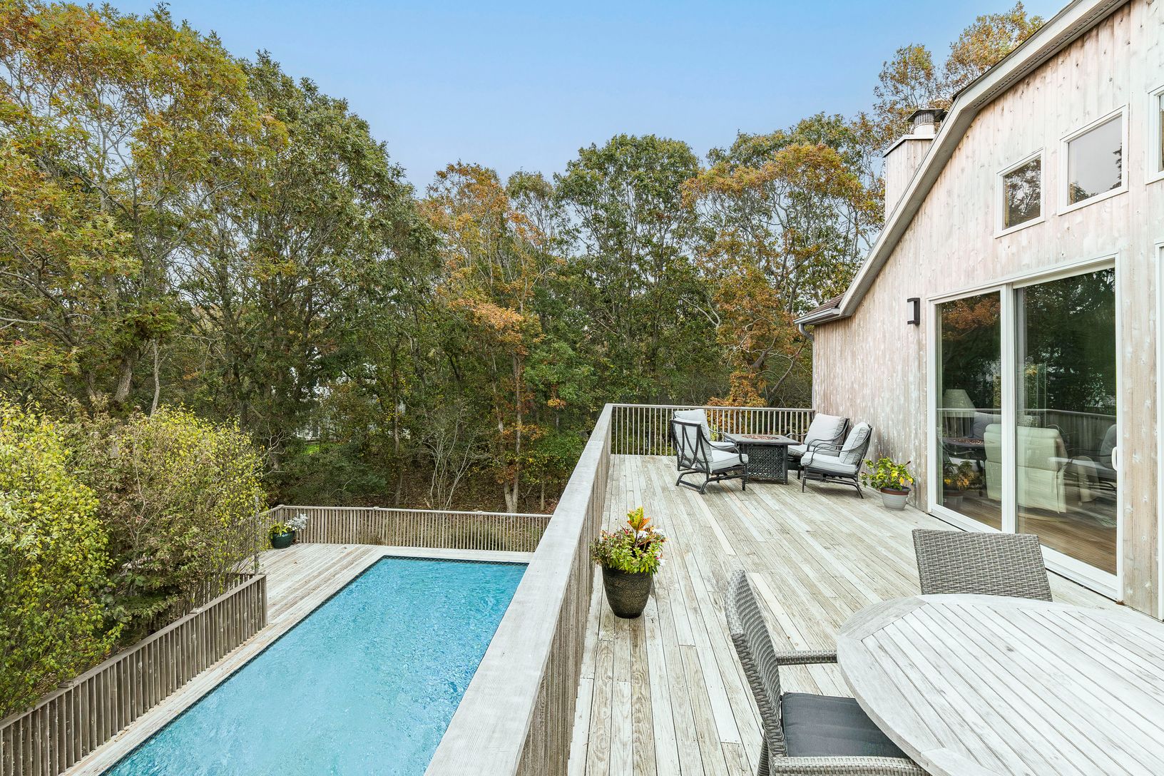 Enjoy open sky views from the Francis Fleetwood designed Montauk Treetop escape off the beaten path on a less traveled country road. This custom built home offers 3 bedrooms 2.5 baths, glass lined cathedral ceiling living space, expansive deck, heated pool, pool deck, private yard, outdoor shower all just minutes form Town and ocean. Come view the sunset heughs and gaze at your favorite constellations.