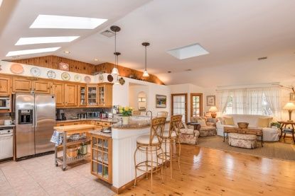 Two miles from the center of Sag Harbor Village lies this custom contemporary home in an oasis of beauty and nature. Meticulously maintained, this four bedroom, three and one-half bath home is turnkey and offers endless possibilities. Designed to take advantage of the extraordinary views of the 100+ acres right outside the backyard. The first floor offers an open floor plan that includes a front living room with wood-burning stone fireplace, e