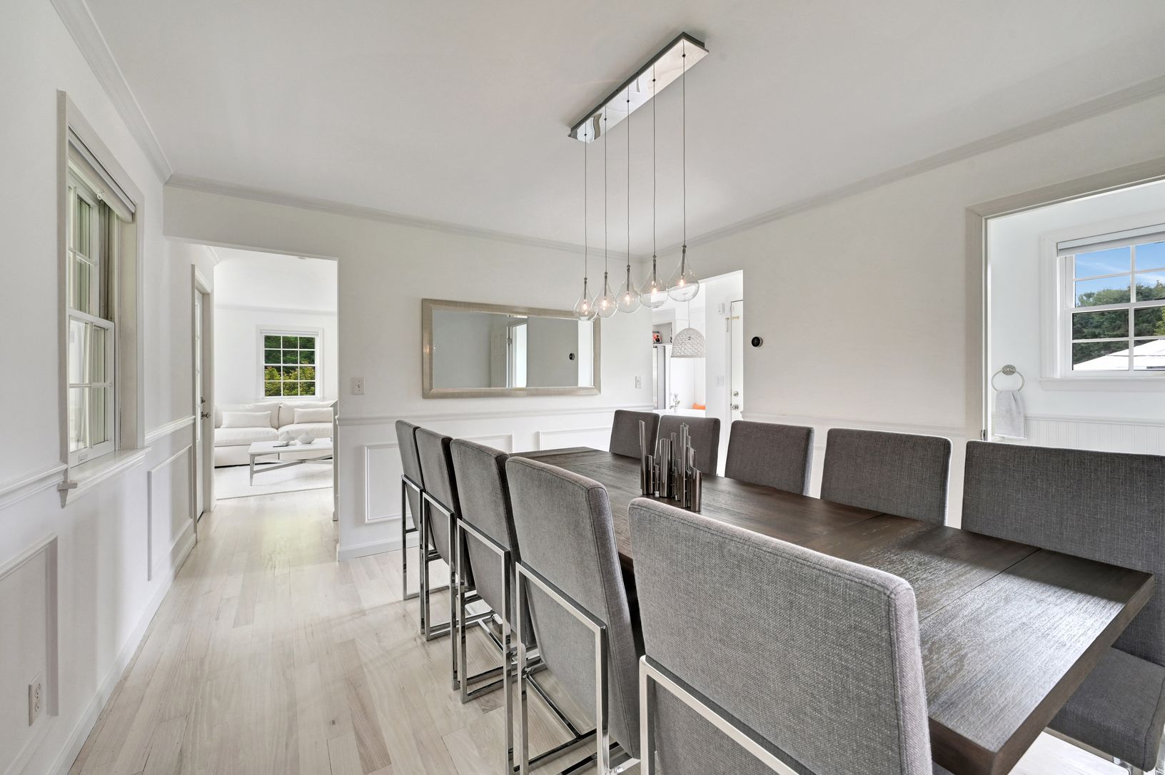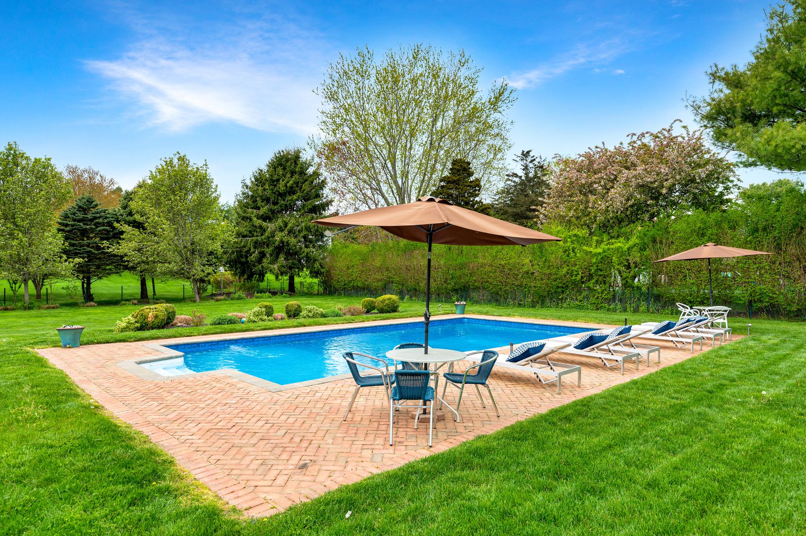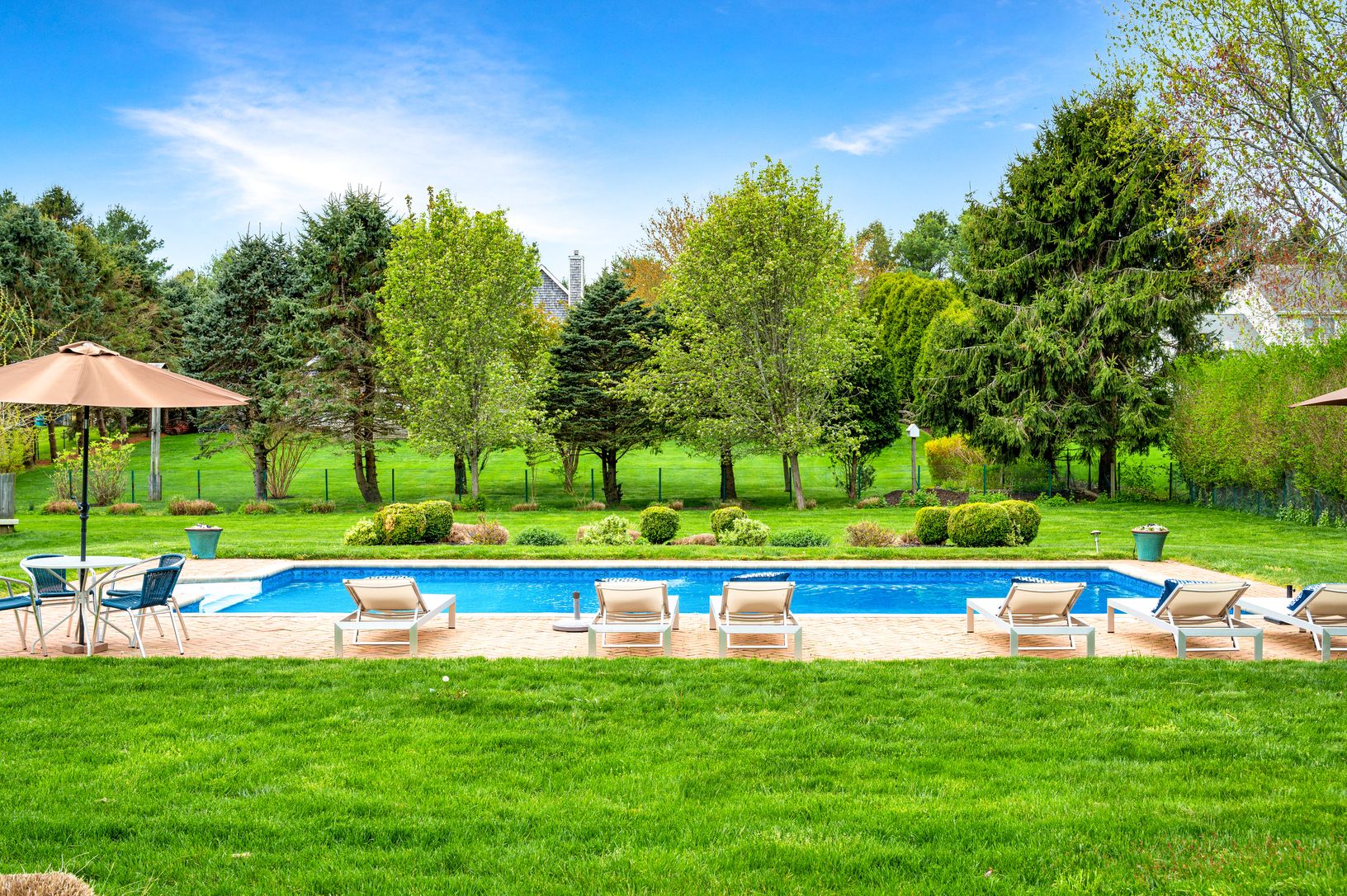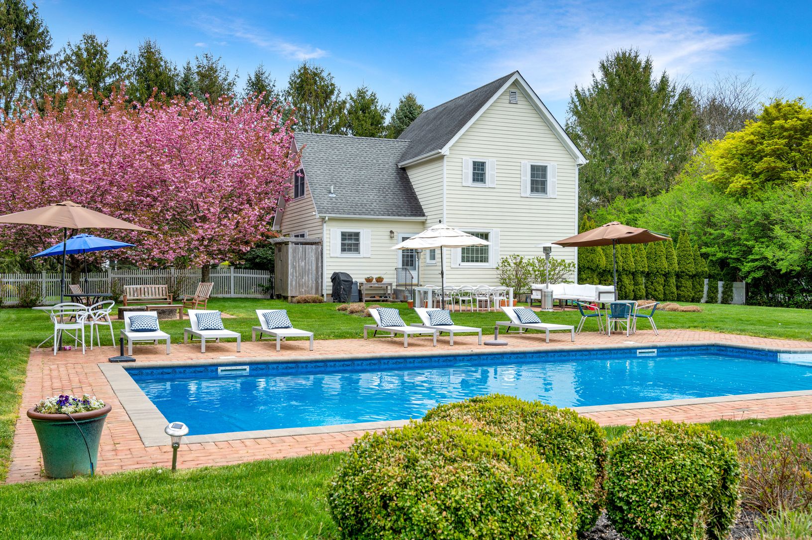 Located in Water Mill farm country, this very private .80 +/- acre flag lot offers 2,000 +/- square foot of recently renovated living space that was designed and furnished by National Designer, Cindy Montgomery. The light-filled living room is equipped with flat screen television and new modern fireplace that lead to an open modern kitchen with custom designed breakfast nook that looks out to the pool and lush grounds. The second floor feature