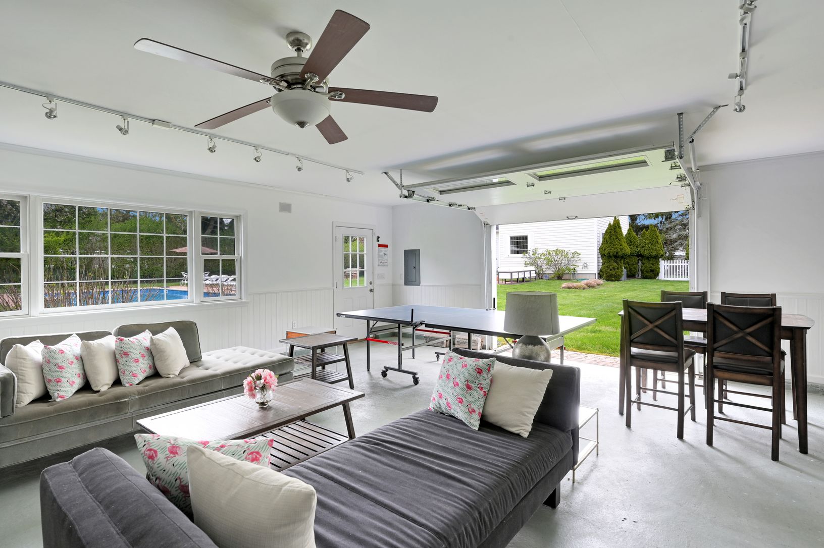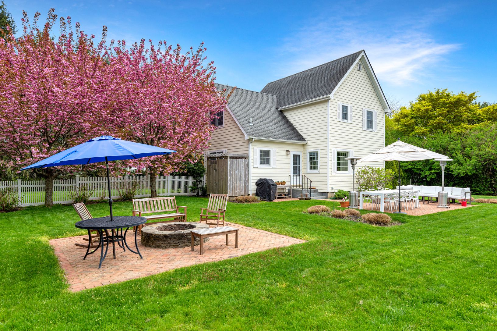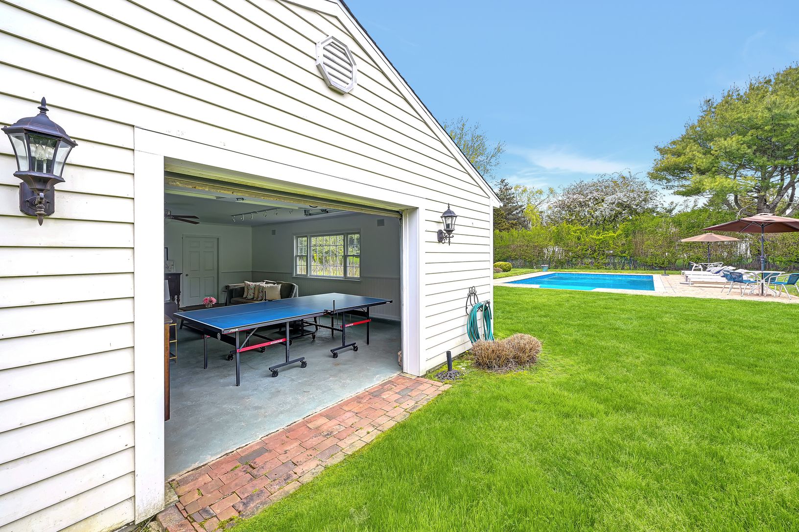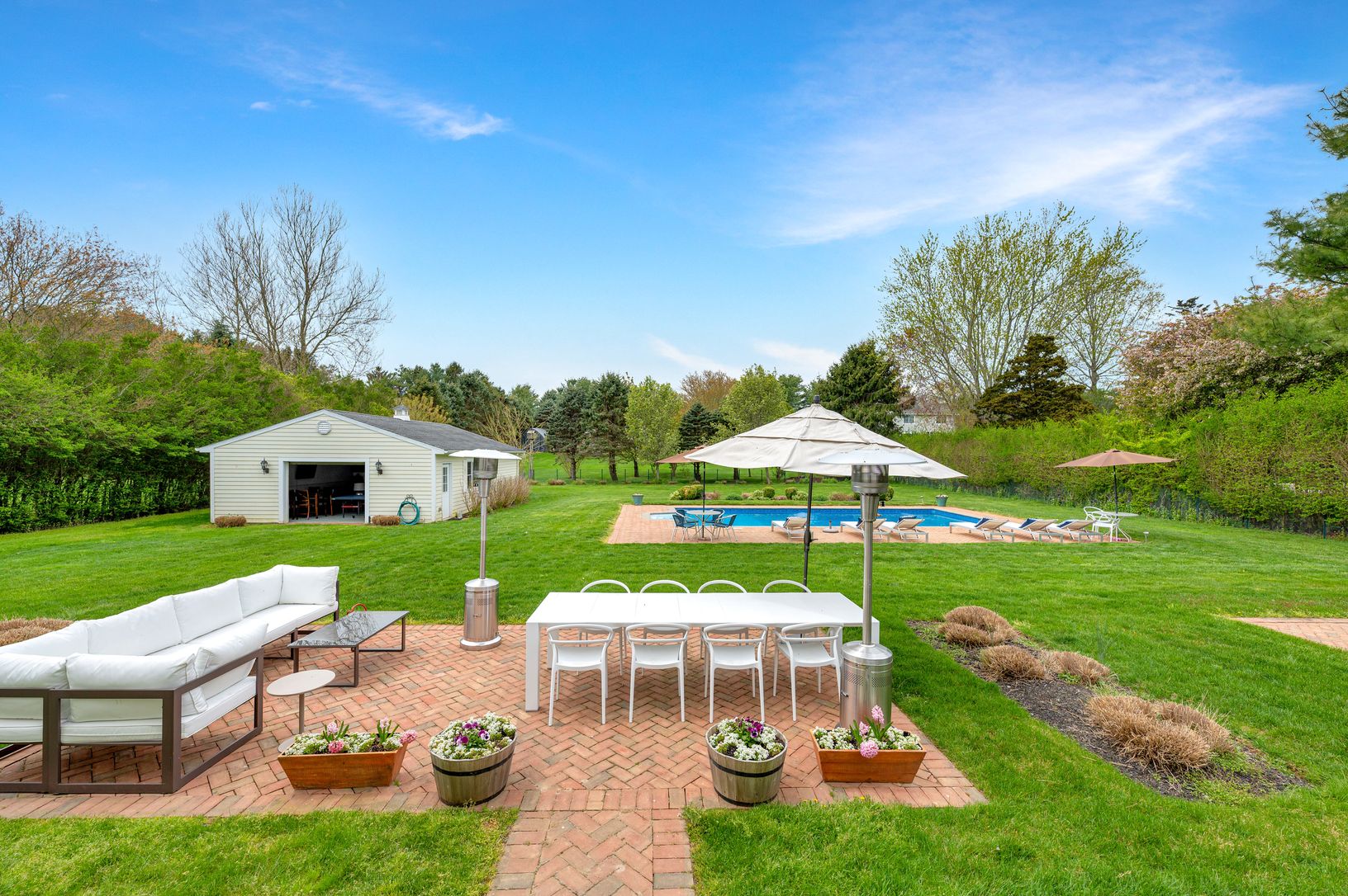 Located in Water Mill farm country, this very private .80 +/- acre flag lot offers 2,000 +/- square foot of recently renovated living space that was designed and furnished by National Designer, Cindy Montgomery. The light-filled living room is equipped with flat screen television and new modern fireplace that lead to an open modern kitchen with custom designed breakfast nook that looks out to the pool and lush grounds. The second floor feature