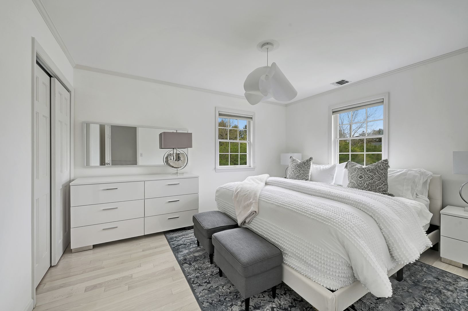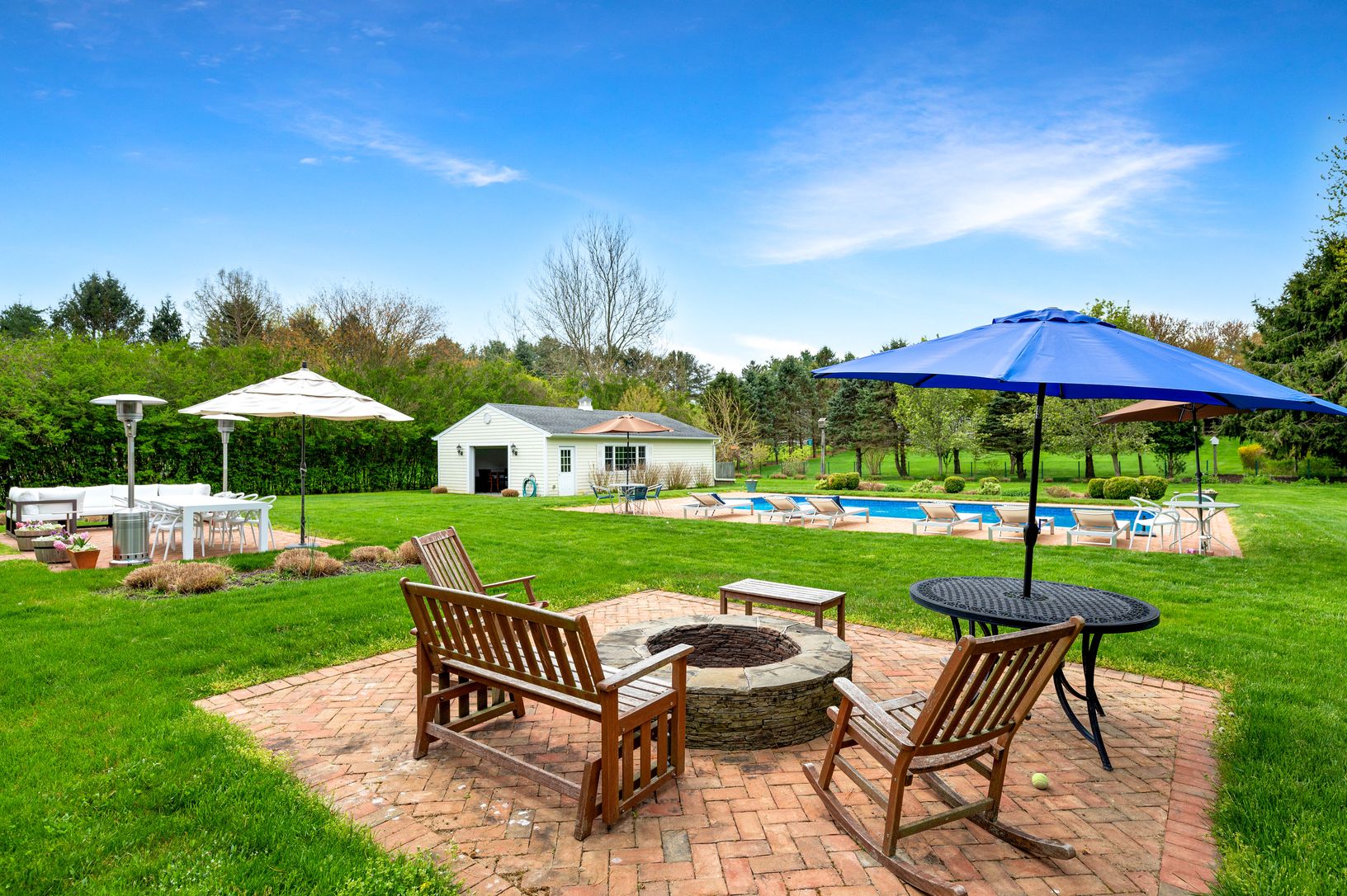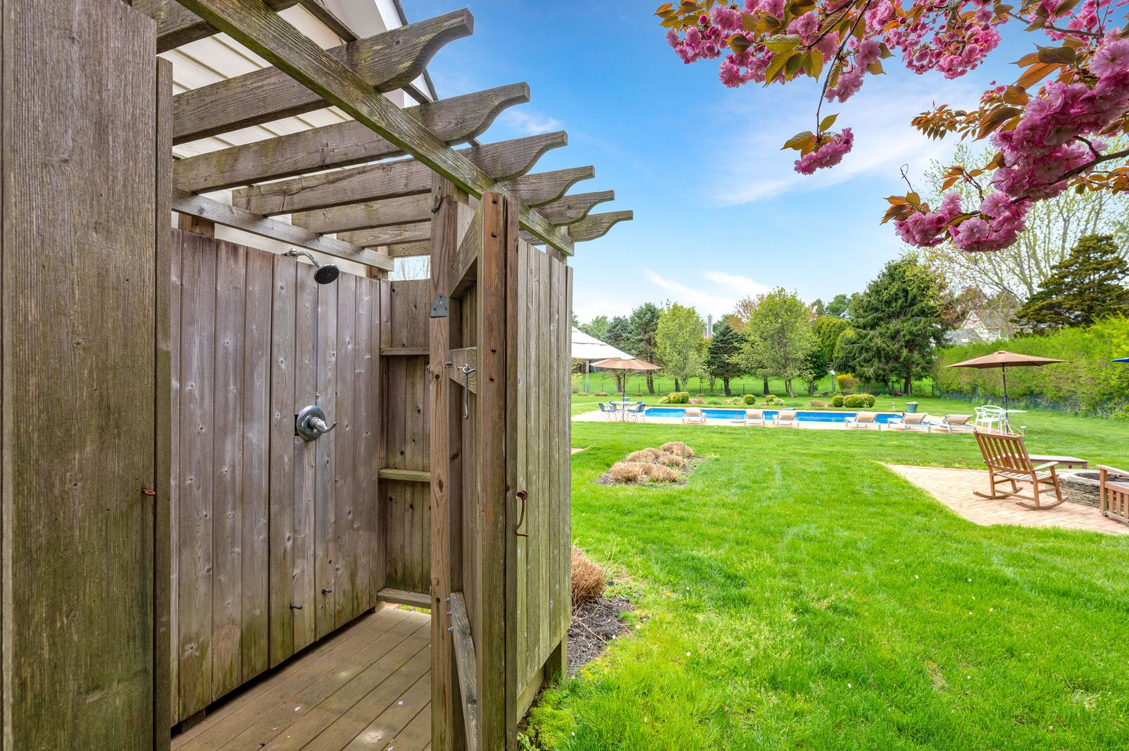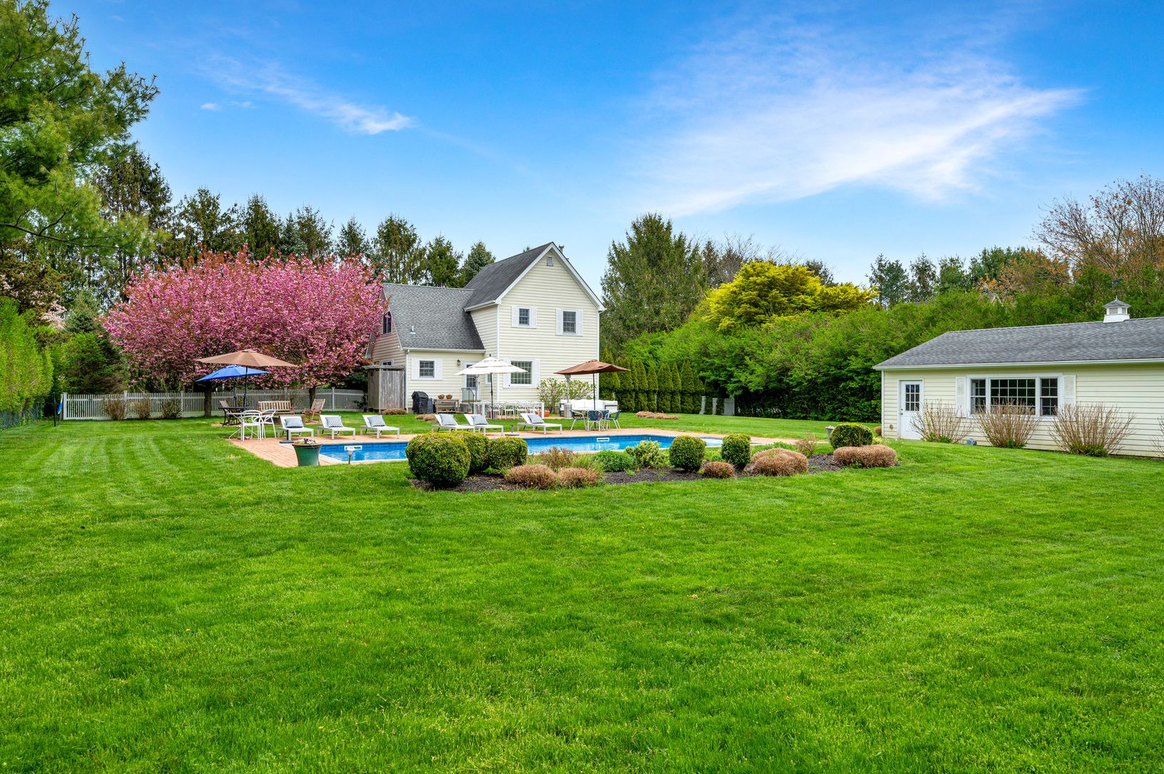 Located in Water Mill farm country, this very private .80 +/- acre flag lot offers 2,000 +/- square foot of recently renovated living space that was designed and furnished by National Designer, Cindy Montgomery. The light-filled living room is equipped with flat screen television and new modern fireplace that lead to an open modern kitchen with custom designed breakfast nook that looks out to the pool and lush grounds. The second floor feature
