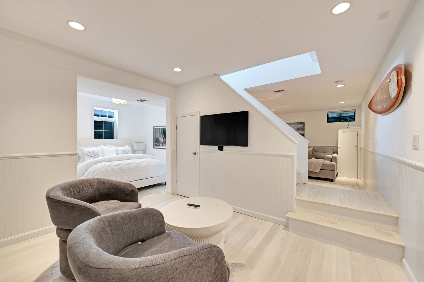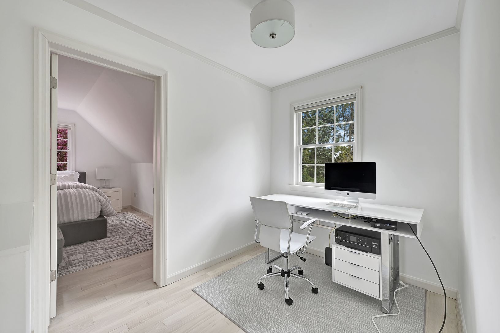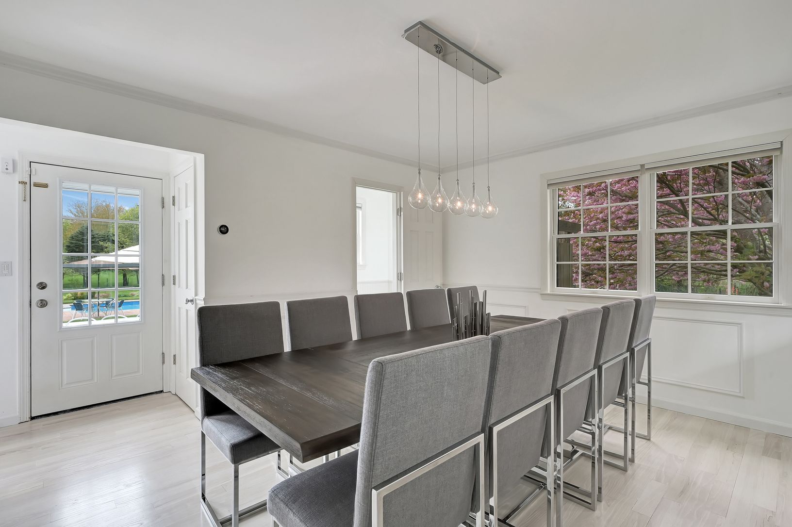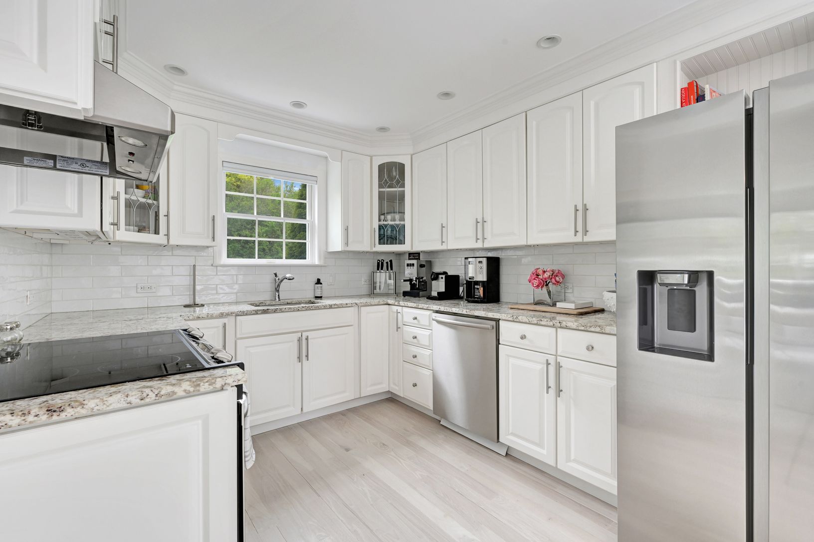 Located in Water Mill farm country, this very private .80 +/- acre flag lot offers 2,000 +/- square foot of recently renovated living space that was designed and furnished by National Designer, Cindy Montgomery. The light-filled living room is equipped with flat screen television and new modern fireplace that lead to an open modern kitchen with custom designed breakfast nook that looks out to the pool and lush grounds. The second floor feature