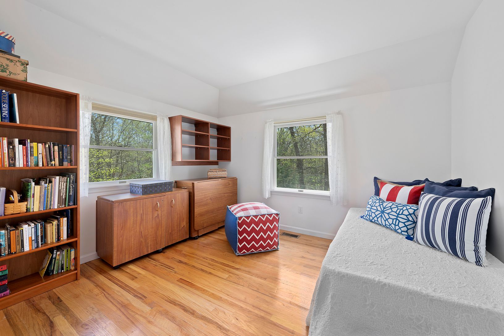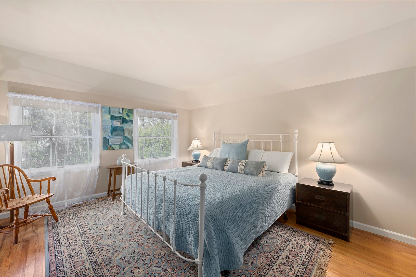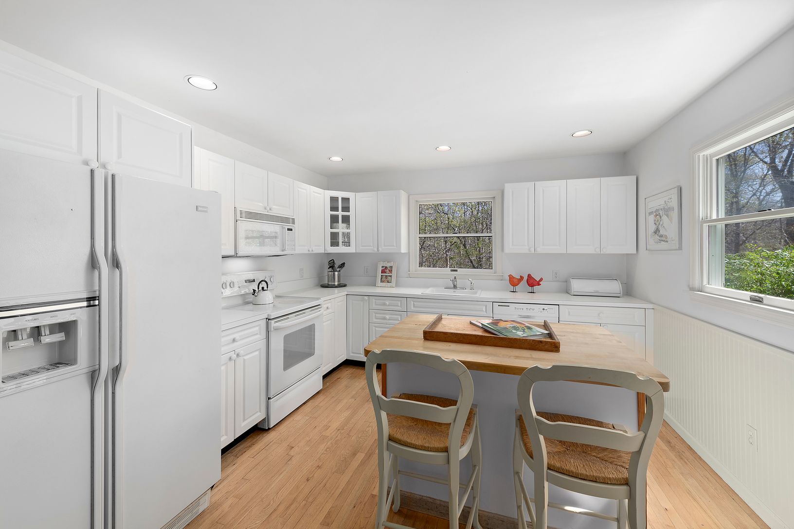 Tucked away behind the Chapel in Barnes Landing, sits this Traditional home with four bedrooms and two and a half baths. Set on .48+- of an acre, and surrounded by Nature preserve, this home has a spacious living room, a dining room with masonry fireplace, an all weather sun-room, bright kitchen, front porch, back deck, and outdoor shower. Very close to Markets and bay beaches.