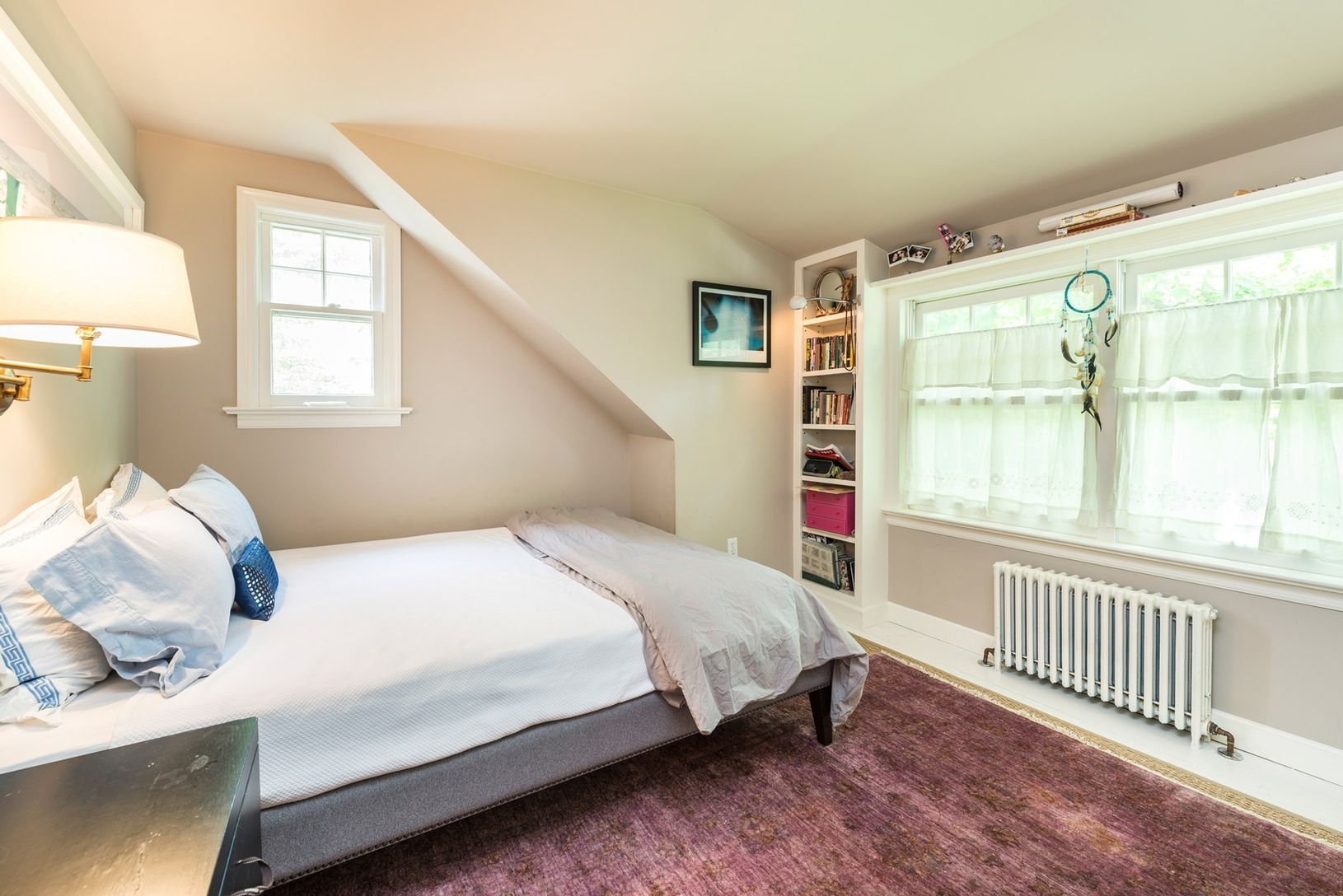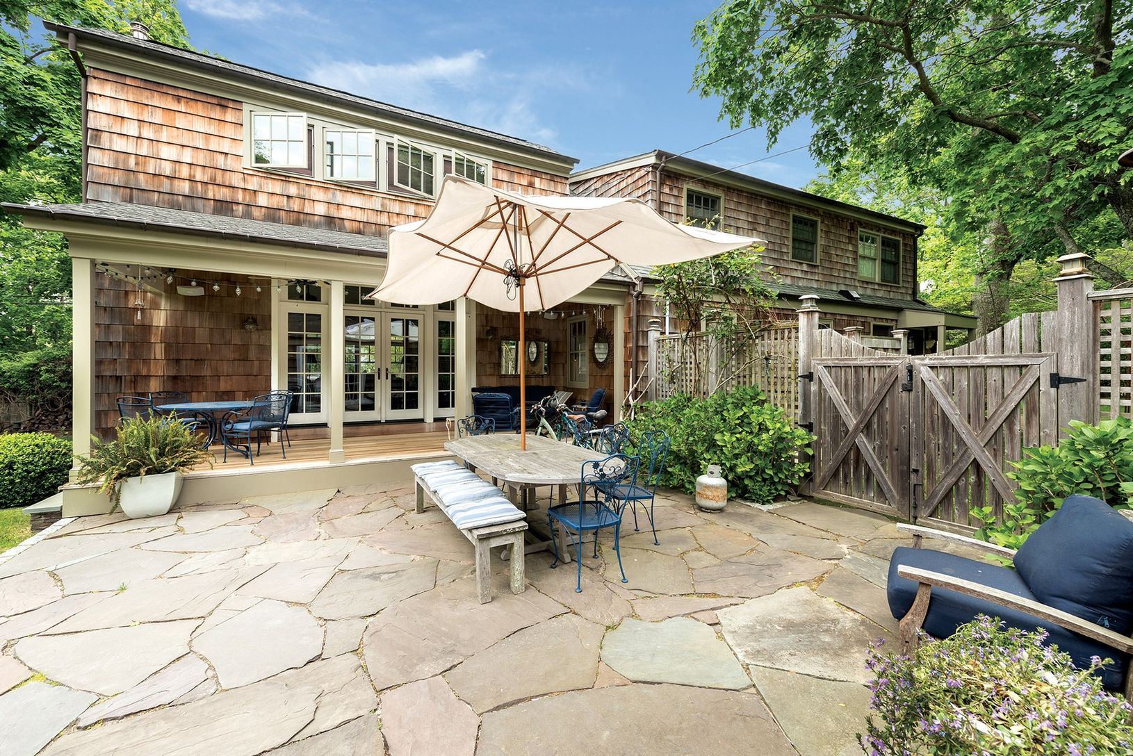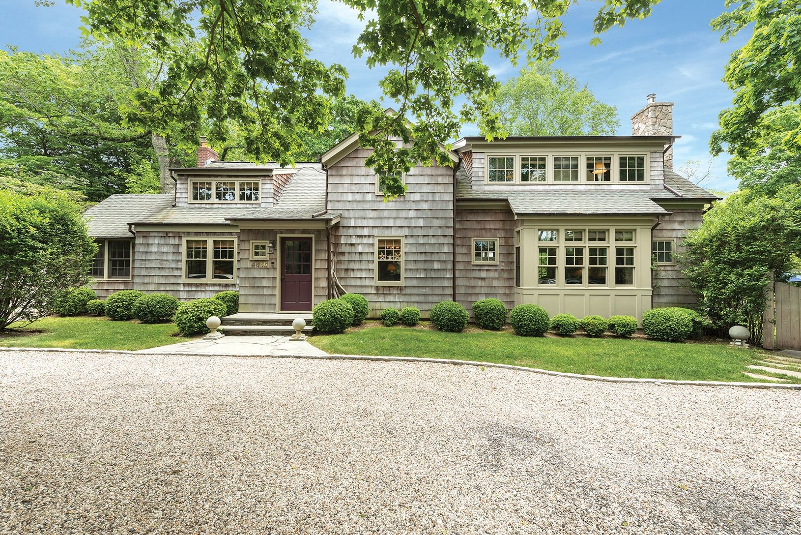 This elegant home combines the charm of old Sag Harbor with a contemporary country lifestyle. Set amid beautiful, lush landscaping on a full acre, the shingled two-story, four bedroom, three bath home provides 2,700+/- sq. ft. of living space. First floor living areas include the welcoming stone-floored living room with fireplace, wet bar and French doors to a porch, a dining area and an eat-in kitchen with island seating, stone countertops an
