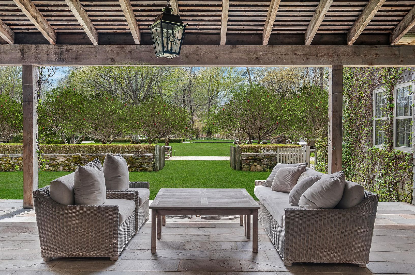 This exquisite sun-kissed compound on Further Lane offers a serene setting throughout the entire 2.11 +/- acre property. The land features a 6,500 +/- sf main house and 4 outbuildings, superb outdoor entertainment areas, stone installations and apple orchards, all found south of the highway in the perfect location. With a total of 7 bedrooms, 9.5 baths, a gourmet chef’s kitchen, full dining room, den, and large screening room, this elegant hom