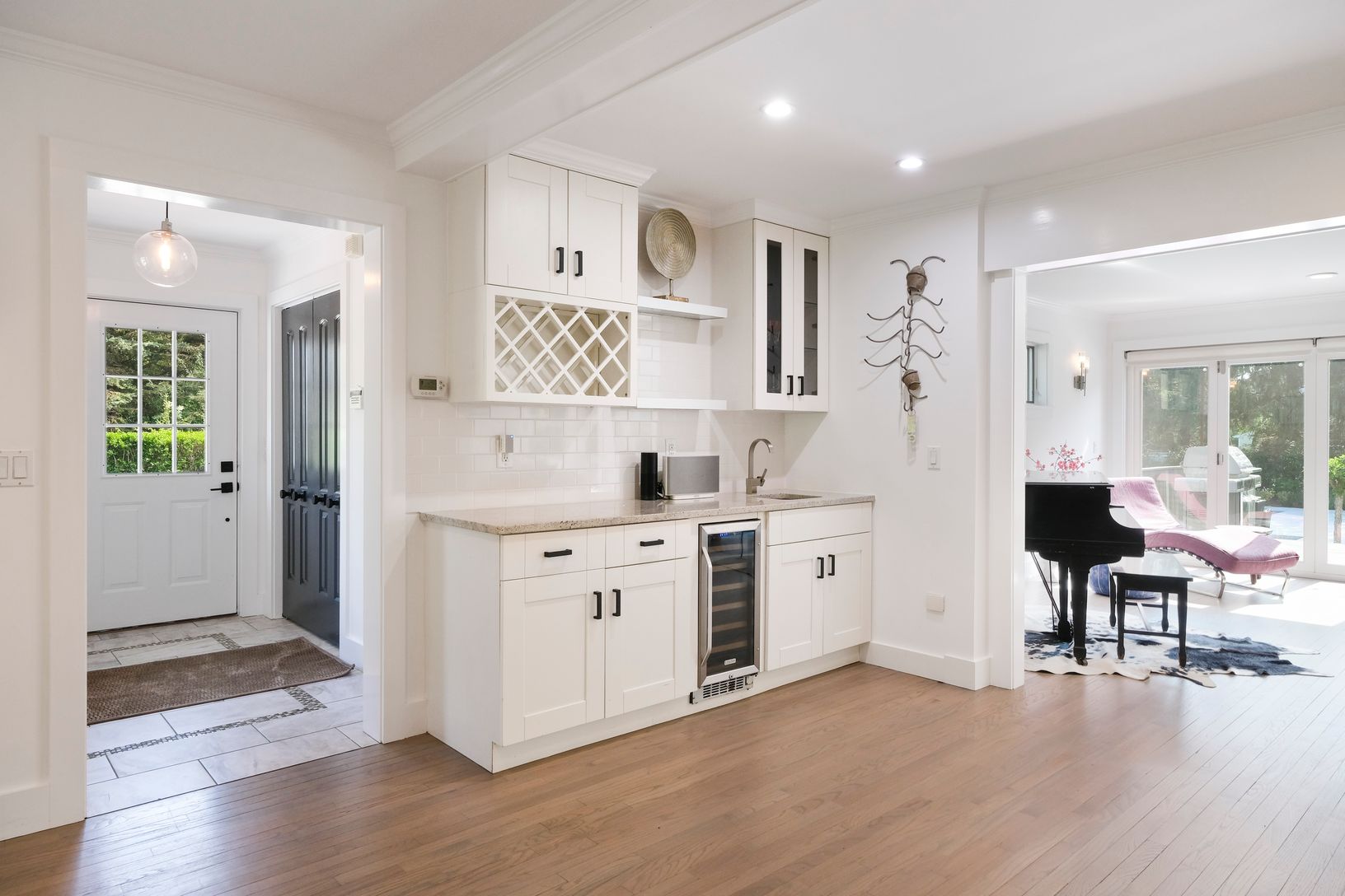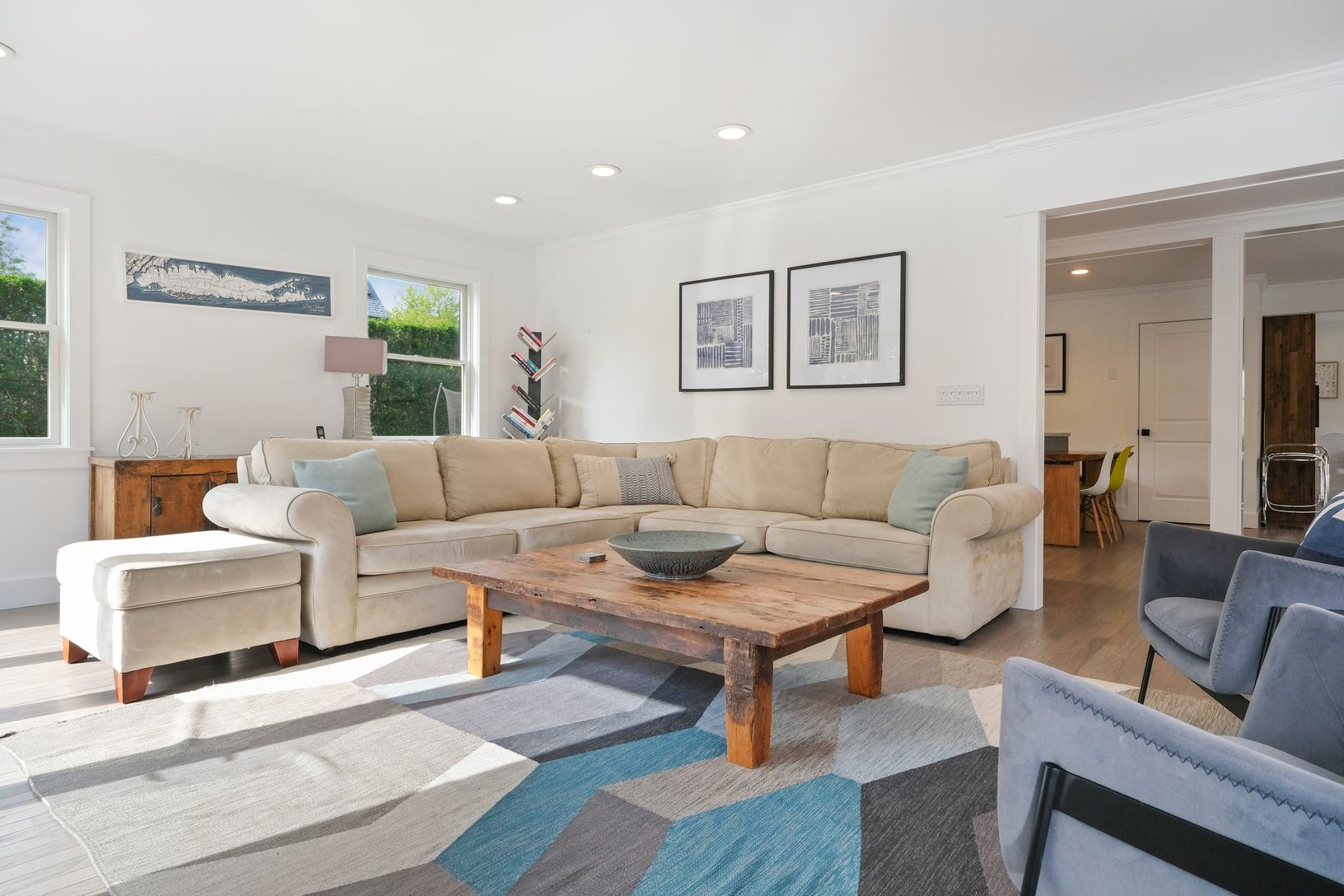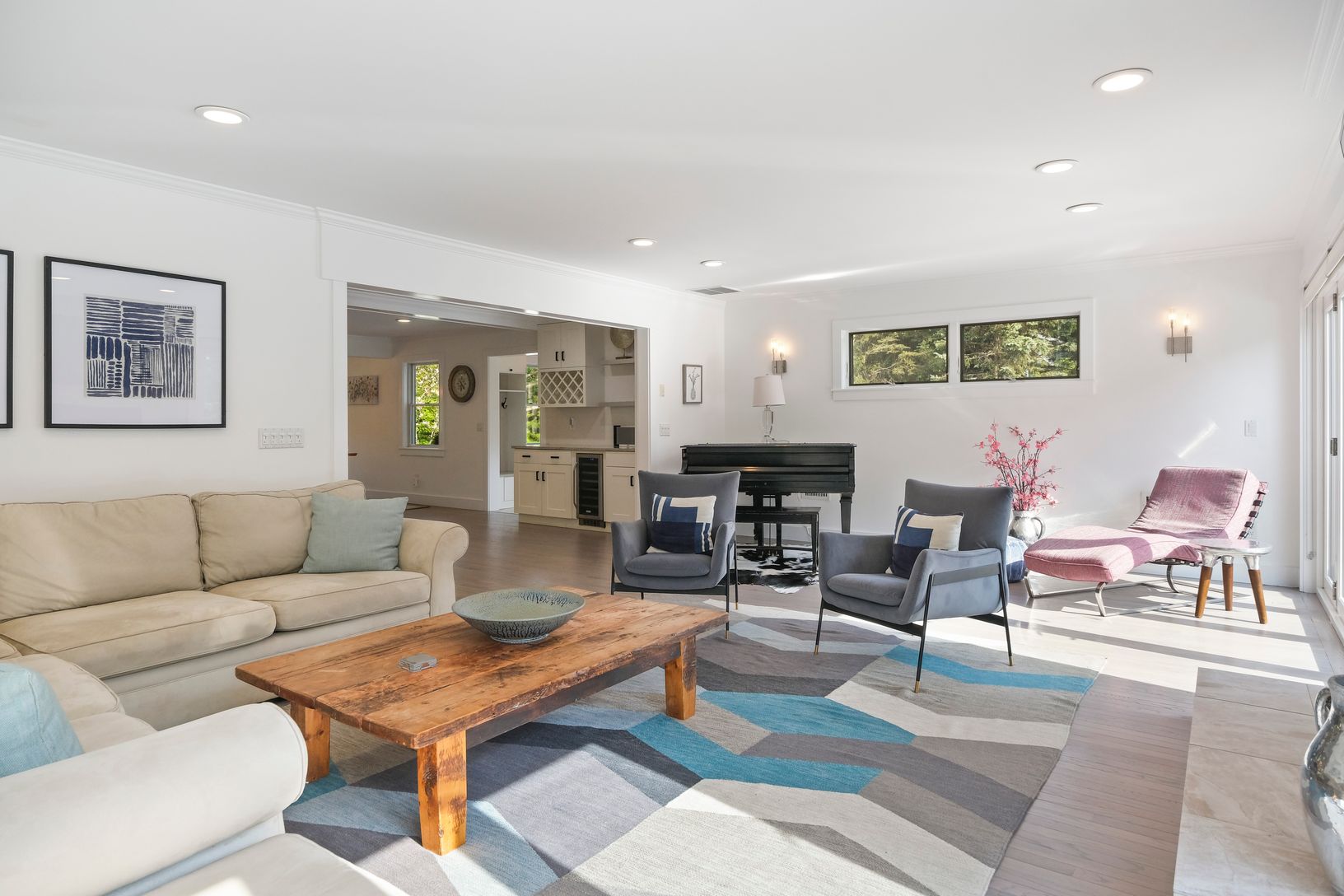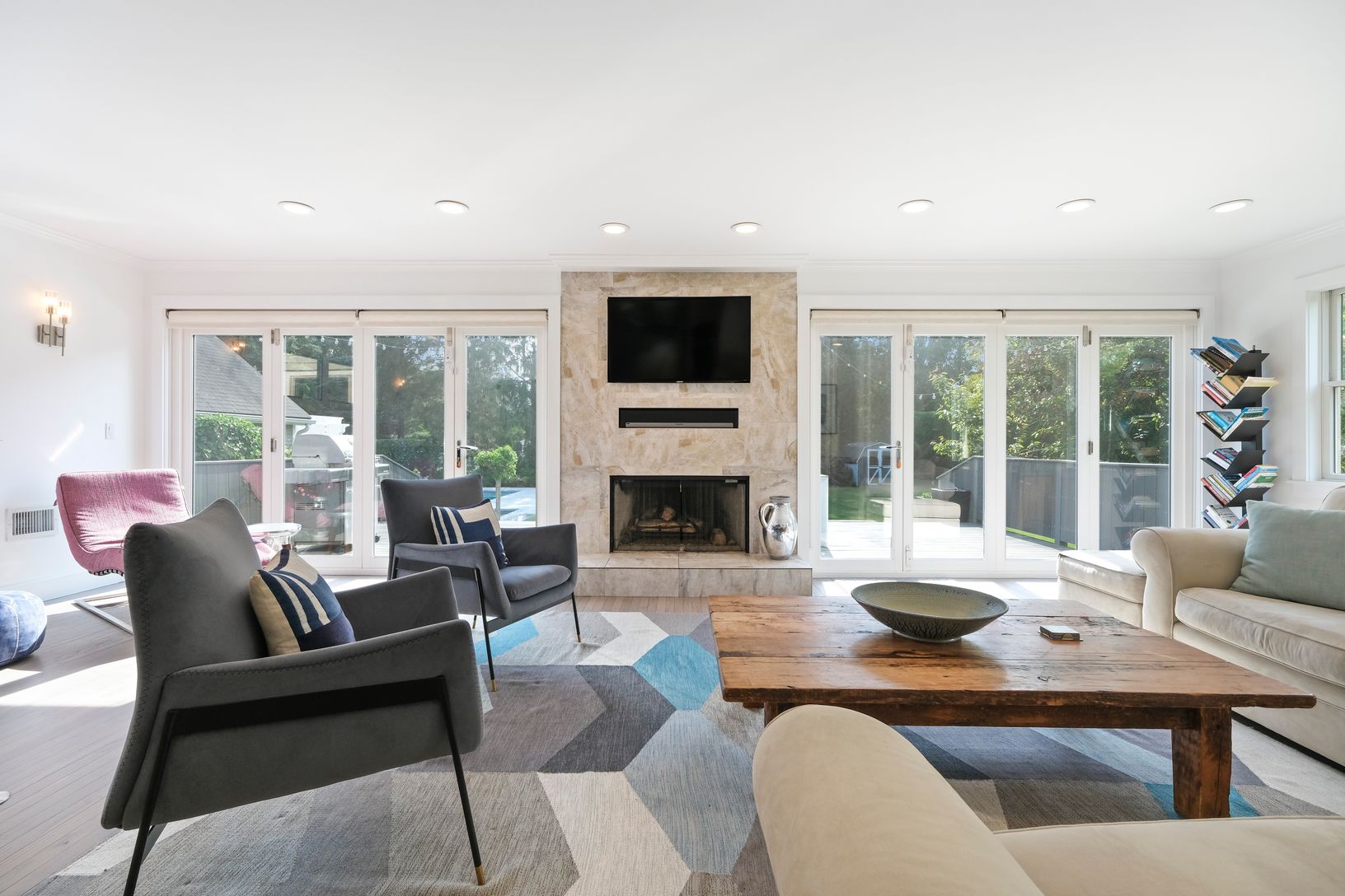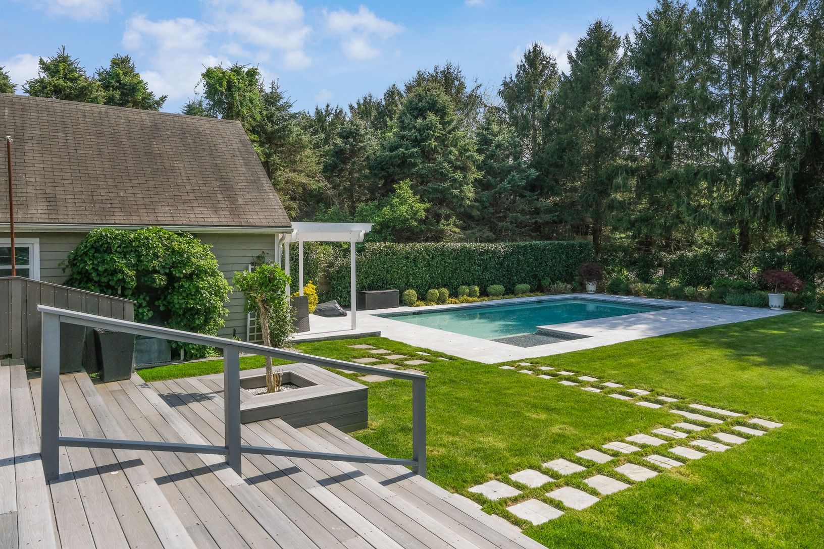 Nestled amid the tranquil countryside of Water Mill, this enchanting four-bedroom home, complete with a finished basement, presents an ideal retreat. Impeccably renovated in 2022, this sunlit abode graces a peaceful dead-end street and beckons with an open living room, where expansive wall-to-wall bifold glass doors seamlessly merge the indoors with the lush private backyard. The generously sized Trex deck awaits your entertaining aspirations.
