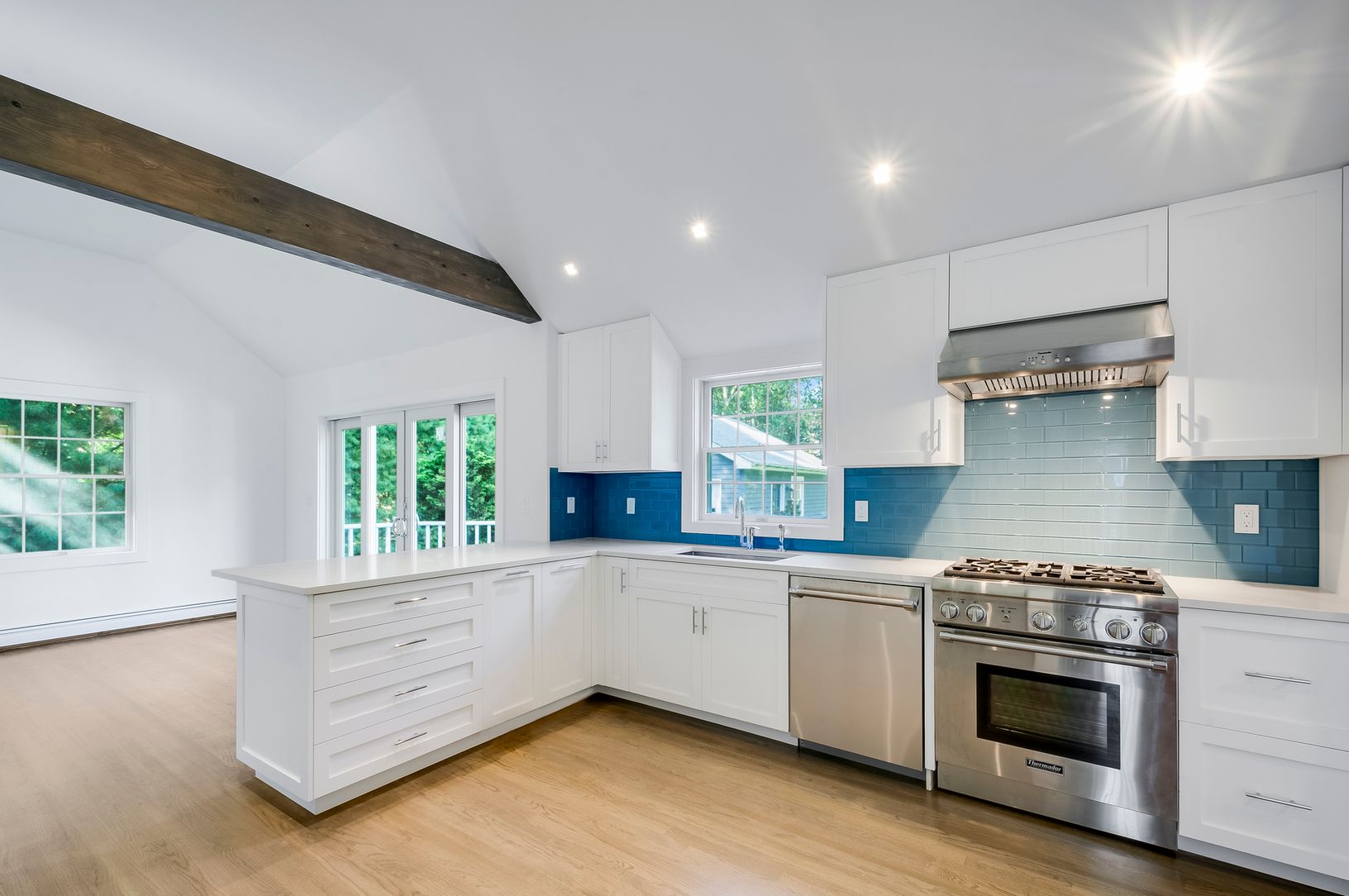 Newly renovated 3 bedroom 2 1/2 bath home with hardwood floors throughout is located on a quiet street in the village of Sag Harbor. Mahogany front porch accents the standing seamed galvanized steel roof to give the home a contemporary and elegant curb appeal. Heated gunite pool, with large and lushly landscaped back yard. This home also features a chef's kitchen with custom cabinets, stone countertops, Thermidor gas range and refrigerator