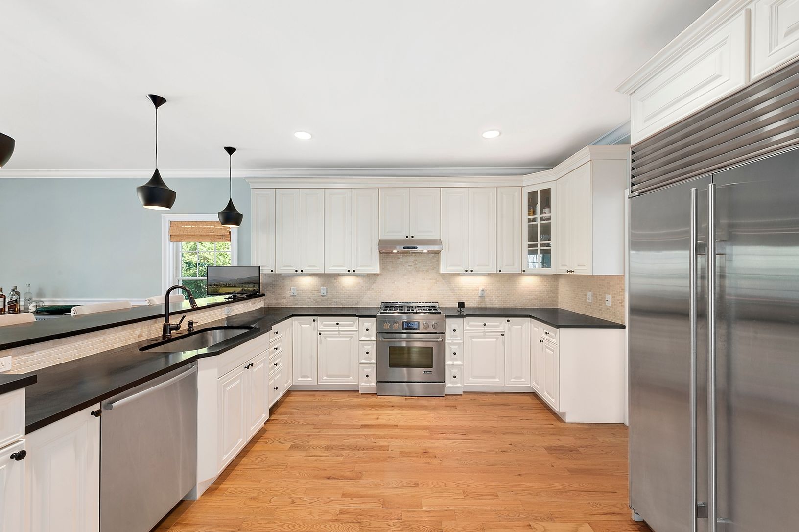 Beautiful home with over 2,800+/- sq. ft. of living space and is located conveniently between Southampton Village and the bay. The main level has a gourmet kitchen that opens to a great room with a fireplace and French doors that open up to the patio and pool. Additionally, there is a formal living room and a formal dining room. Upstairs there is a large master bedroom and bath and three additional bedrooms. The lower level is finished with a
