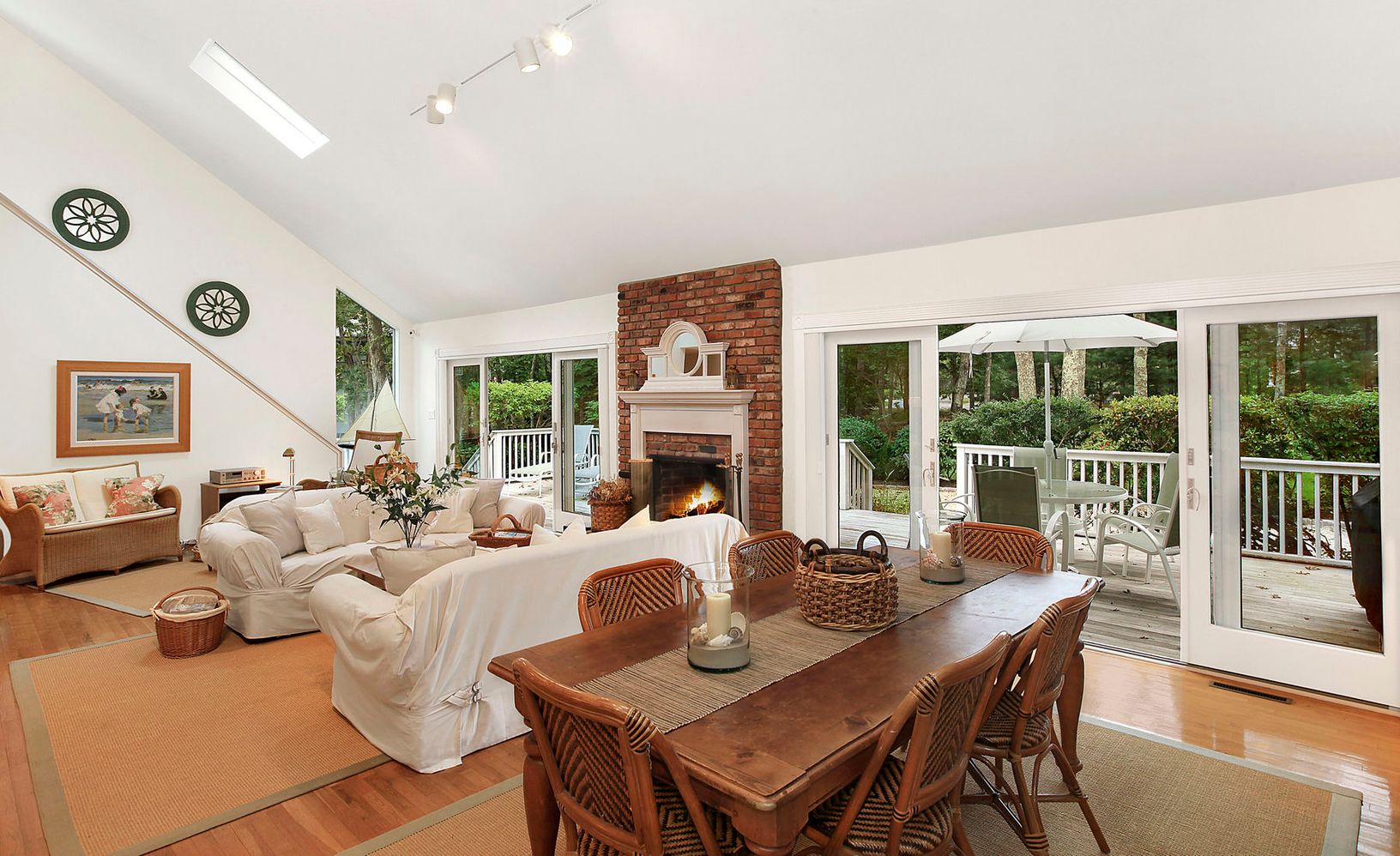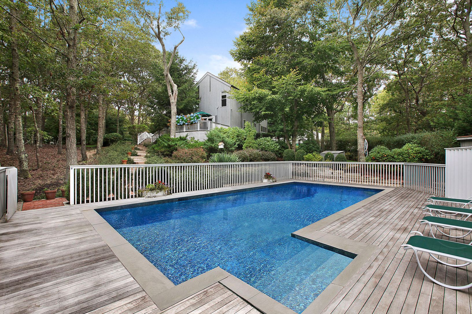 This open and airy light filled contemporary home with 3 bedrooms and 2.5 baths is sited on approximately .71 acres of lovely landscaped grounds. It is located close to the Village of East Hampton in a private community with tennis. The first floor is made up of a large master suite that opens out to its own private deck overlooking the pool. An open kitchen and dining area pus a spacious living room with its soaring ceilings and fireplace all
