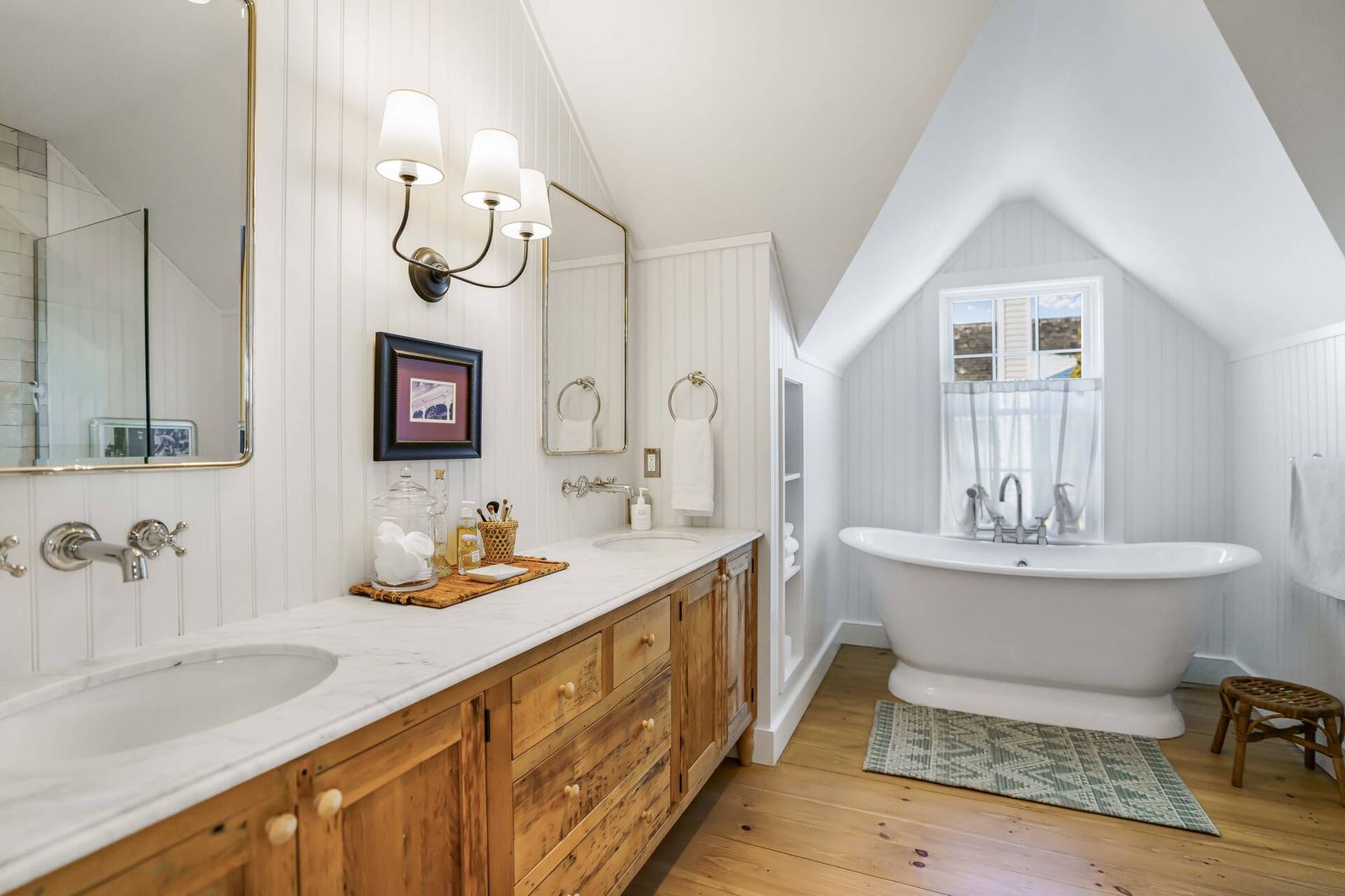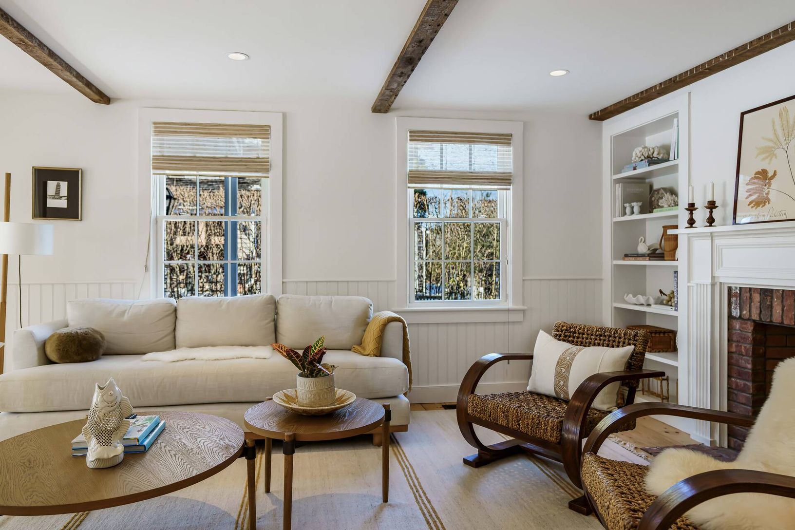Nestled on one of the most sought-after streets in Sag Harbor Village, 47 Howard Street is a rare offering that seamlessly blends historic charm with modern luxury. This exquisitely renovated 4-bedroom, 4.5-bathroom home retains its original 1860s wide-plank floors and exposed beams, preserving its rich heritage while incorporating high-end finishes and thoughtful design. A short stroll leads you to the heart of Sag Harbor's vibrant shopping,