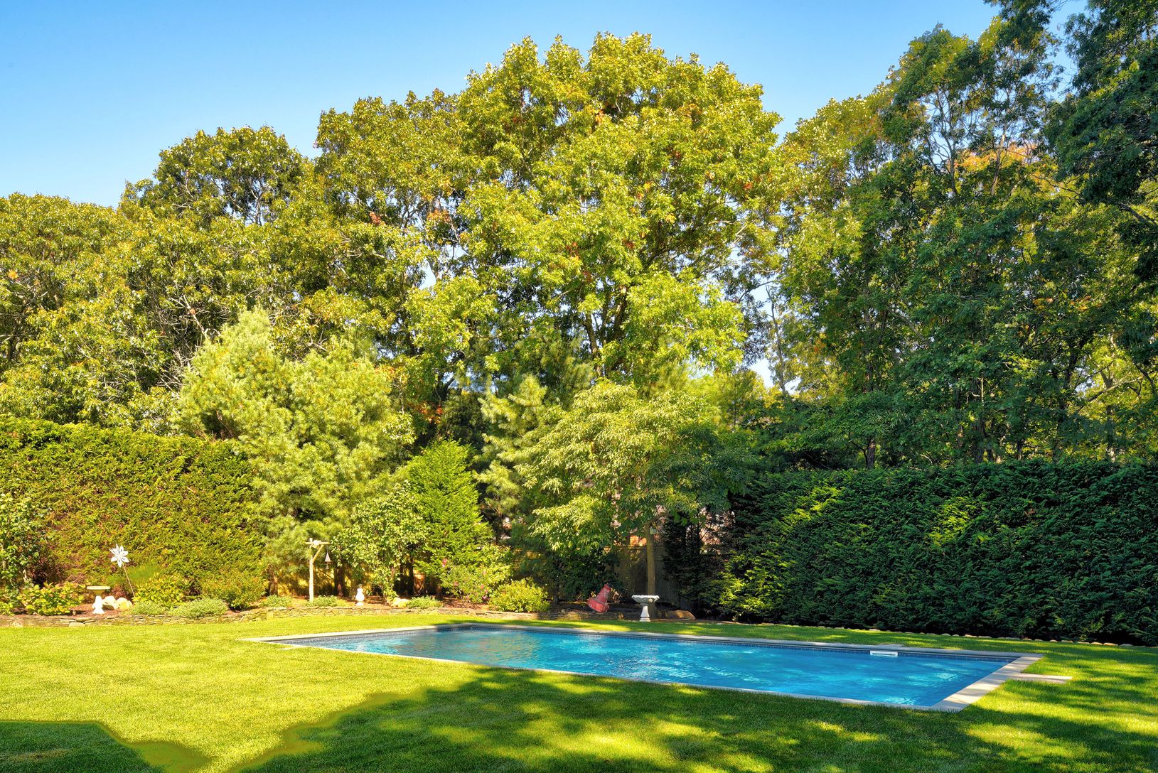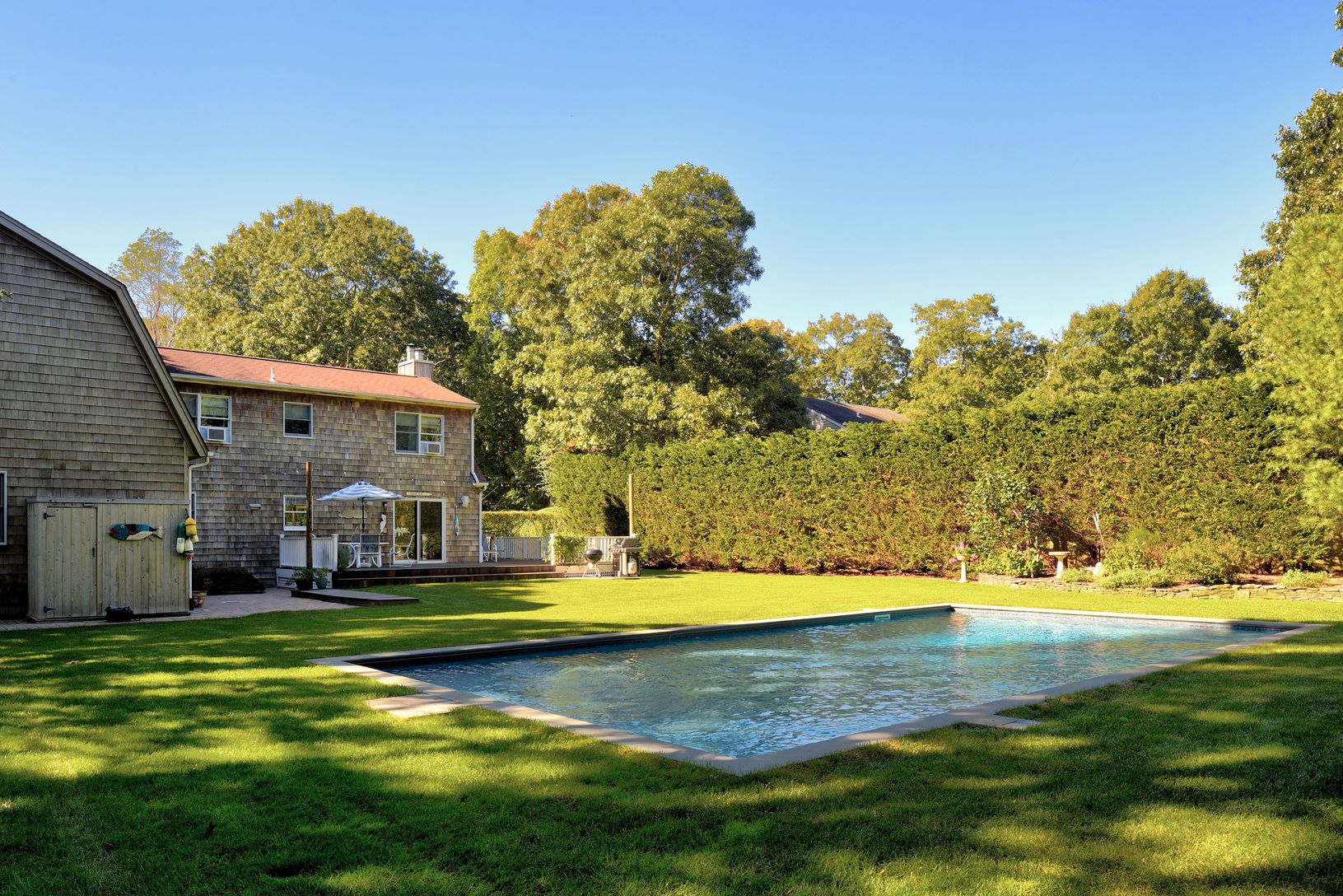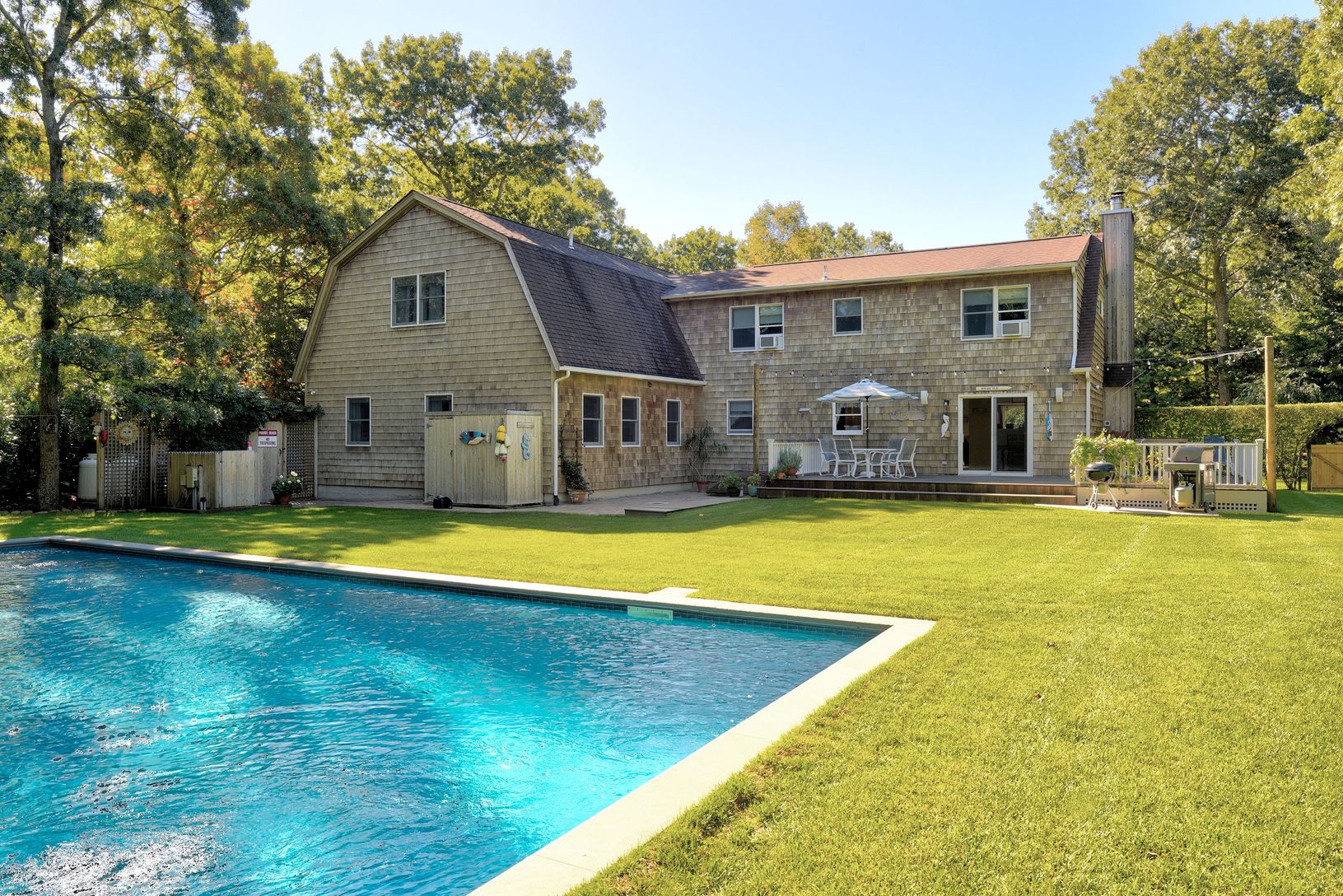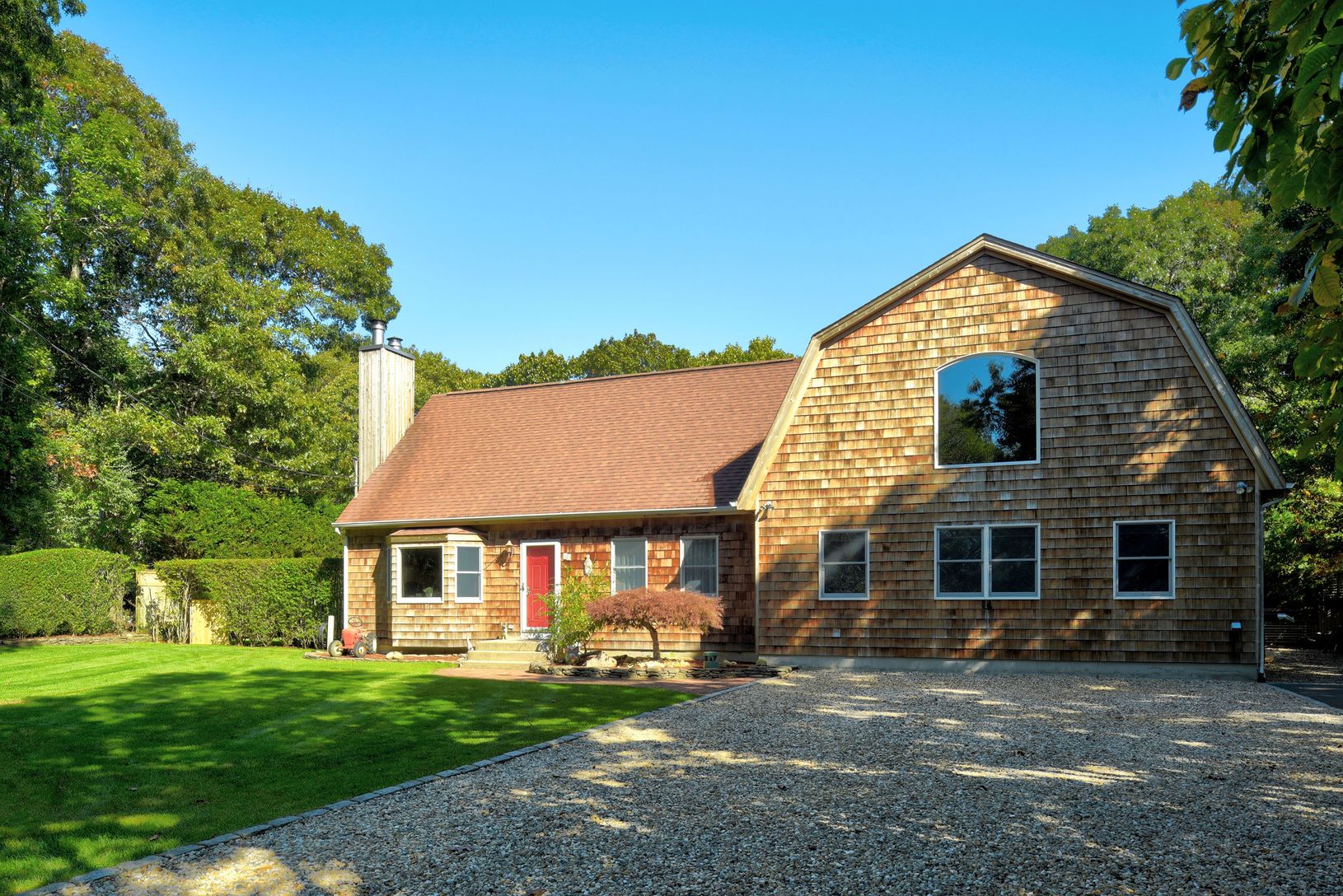 Sited on a beautifully landscaped half-acre parcel on a quiet cul-de-sac less than a mile away from Three Mile Harbor and Maidstone Bay beaches is a five bedroom, three bathroom home with heated, saltwater pool ready for the savvy buyer who desires a home in The Hamptons. This well-maintained home has a welcoming entry into a cozy living room with fireplace which flows to the eat-in kitchen. The heart of the home is the expansive great room wi