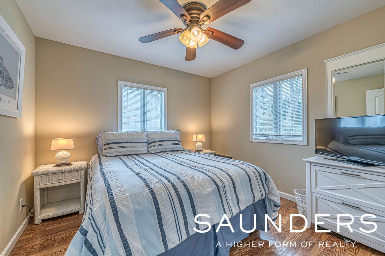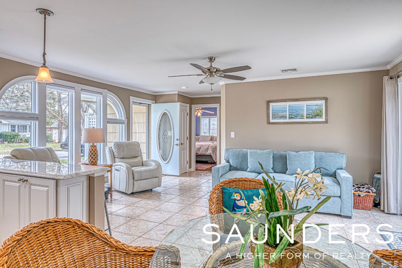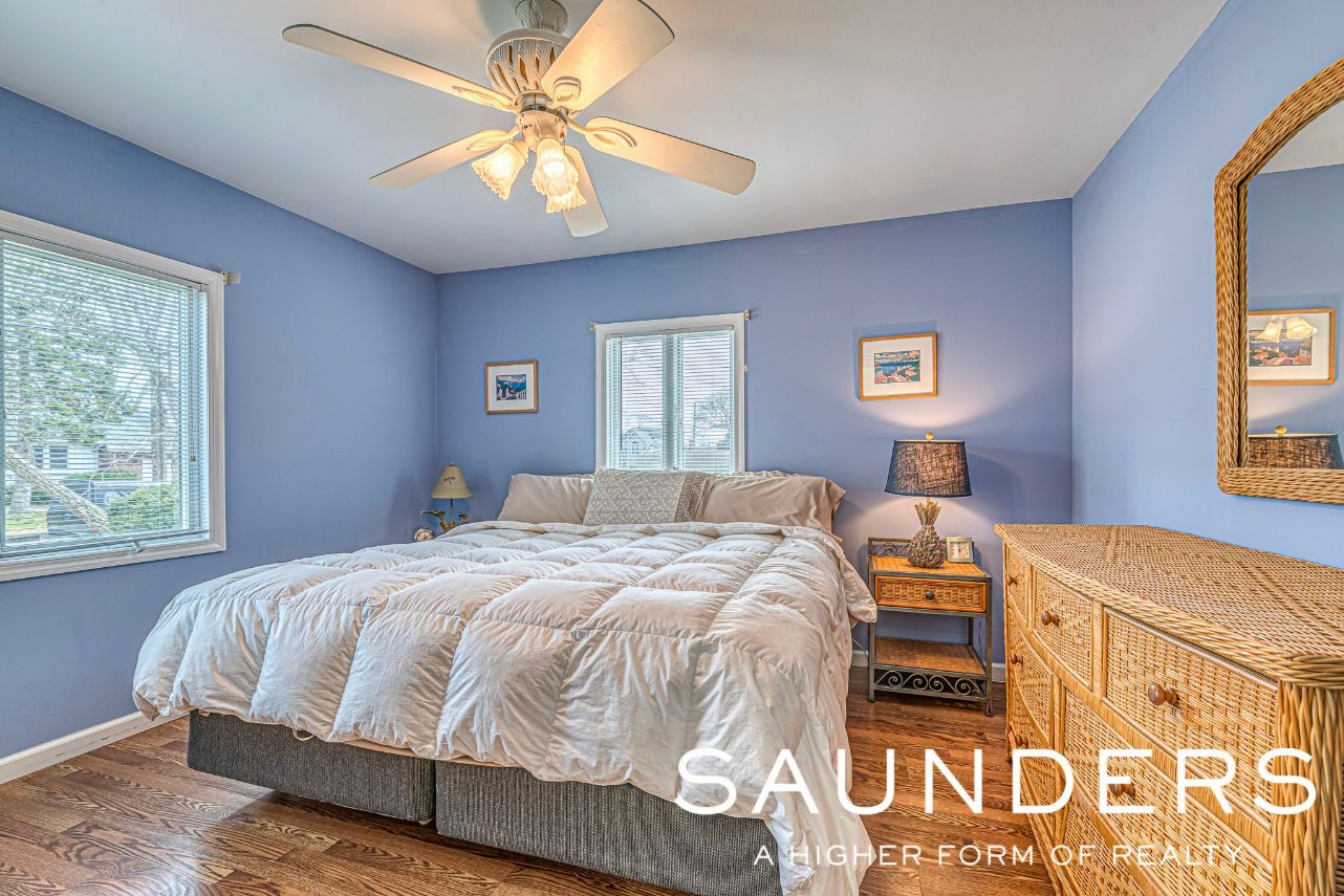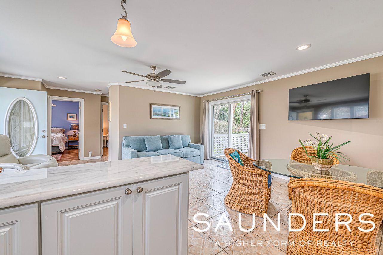 Rent year round in beautiful Sag Harbor… This adorable 2 bedroom 1 bath cottage is located in the coveted waterfront community of Bay Point, which has a lovely Bay Beach just a few minute stroll away. Bright and beachy this home is impeccably maintained and features open floor plan, updated kitchen and bath. Kitchen also has a bar with stools for entertaining. Master bedroom features a king size bed and guest bedroom with a double bed. The l