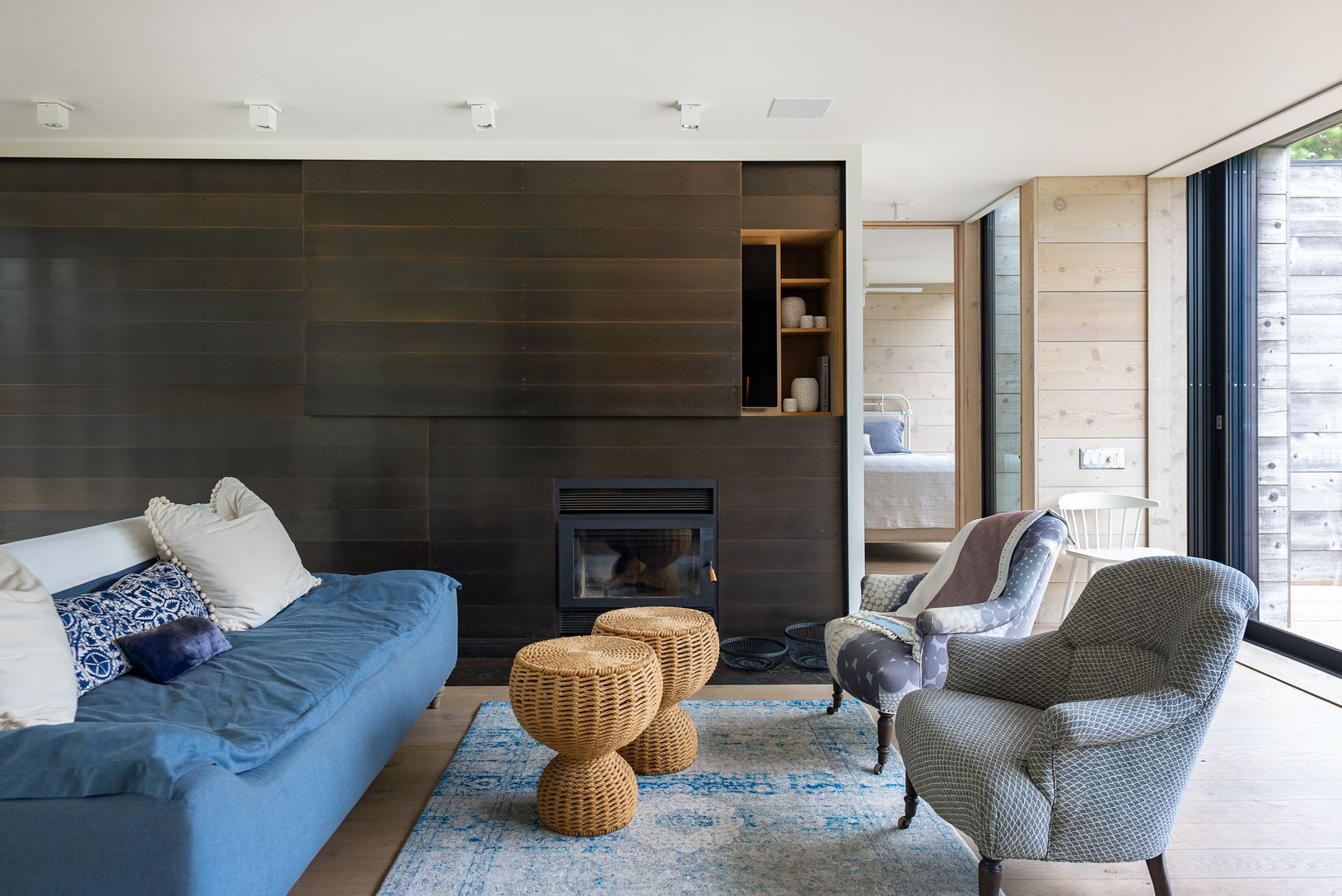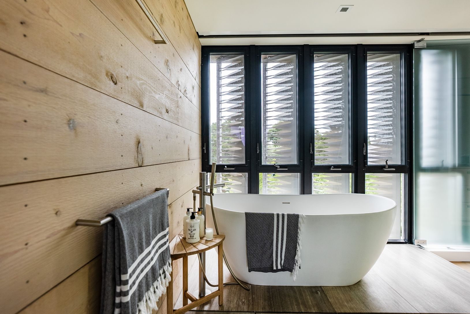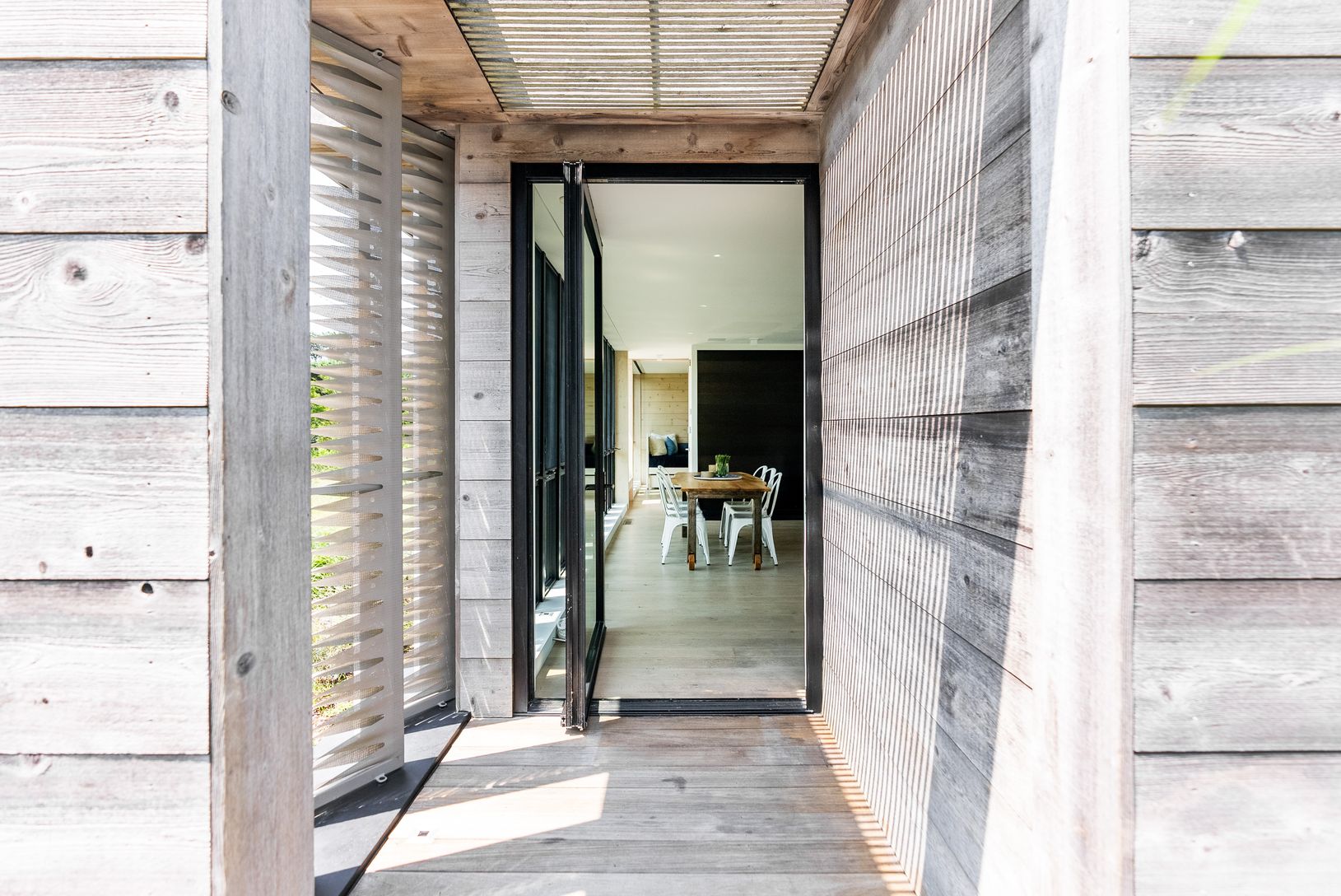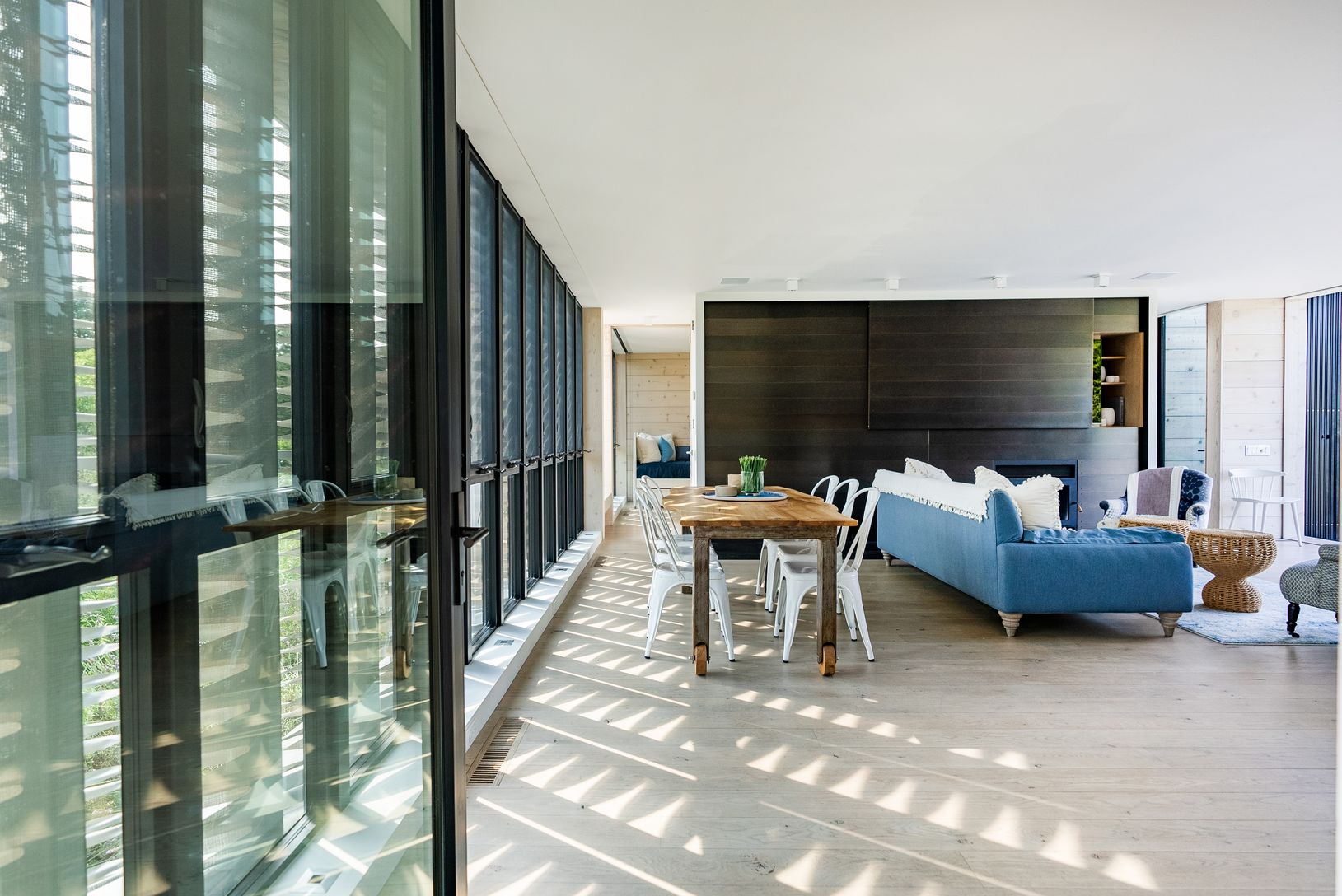 Designed and built in 2015. This striking Bates Masi + Architects modern home in the Amagansett Dunes provides unmatched style, comfort and beauty, just a few houses from a private ocean beach. The louvered facade, which covers the West side of the house, not only provides breathtaking visual appeal, but filters warm natural light and a cool breeze throughout the home, all the while providing complete privacy. Enter the home a few steps up, pa