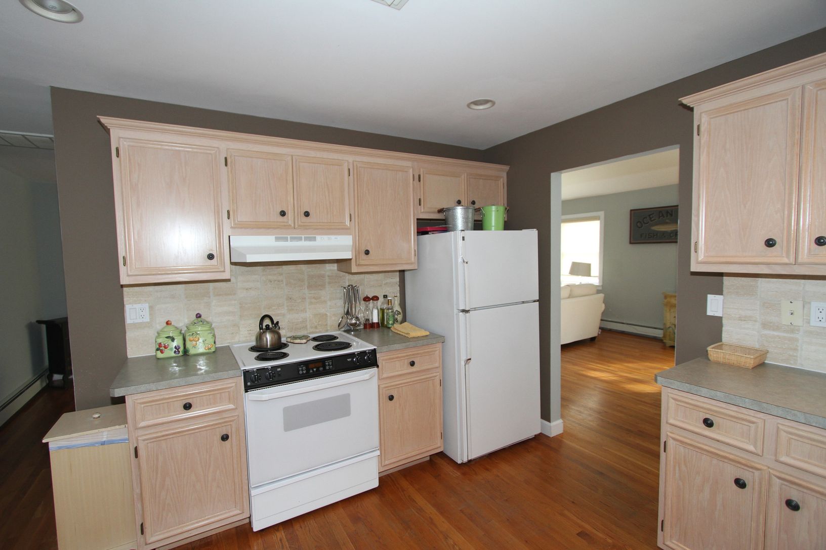 Floors: Hardwood, Tile