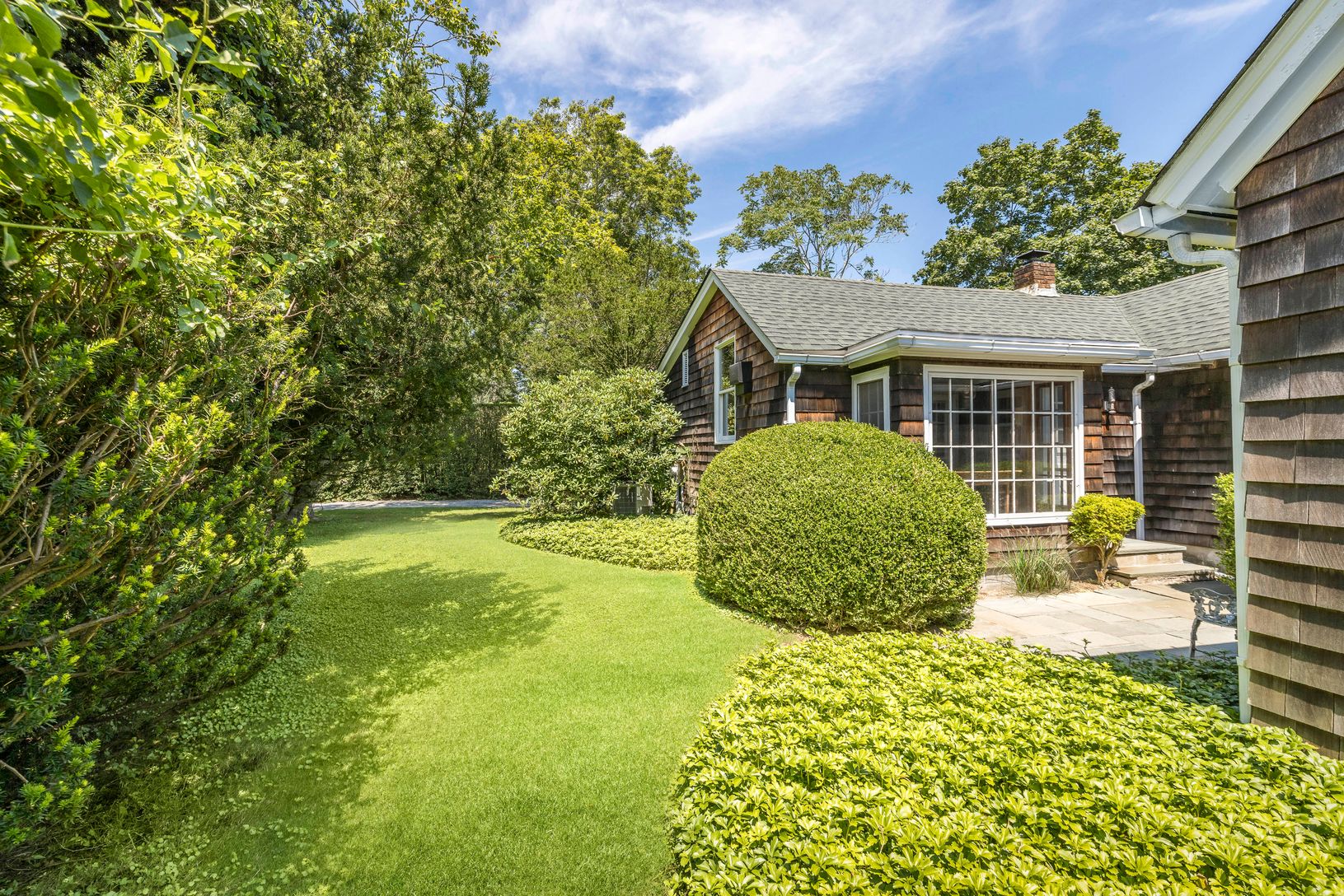 Classic three-bedroom, one and a 1/2 bath farmhouse on a cleared 0.60± acre. This light-filled, one-story cedar-shingled house exudes period charm and features central air conditioning, mature landscaping, and a stunning parcel. The property includes a detached garage and offers the opportunity to expand or build a sizable house, pool, and accessory building. Flanked by significant properties and conveniently located near ocean beaches, restau