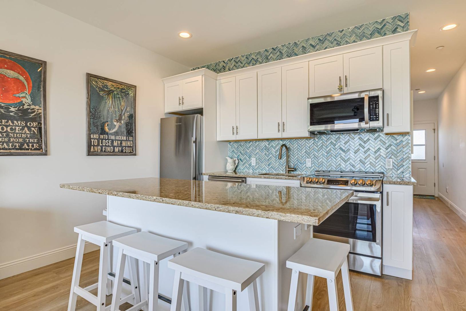 Your oceanfront lifestyle awaits at The Sandpiper. This one bedroom, one and a half bath, co-op constructed in 2018 features panoramic ocean views, bay views and private access to the beautiful ocean beach and bay. Hardwood style vinyl floors run throughout the unit and perfect for beach life. The kitchen features stone-like countertops and stainless steel appliances with glass sliding doors opening from the adjacent living/dining area to your