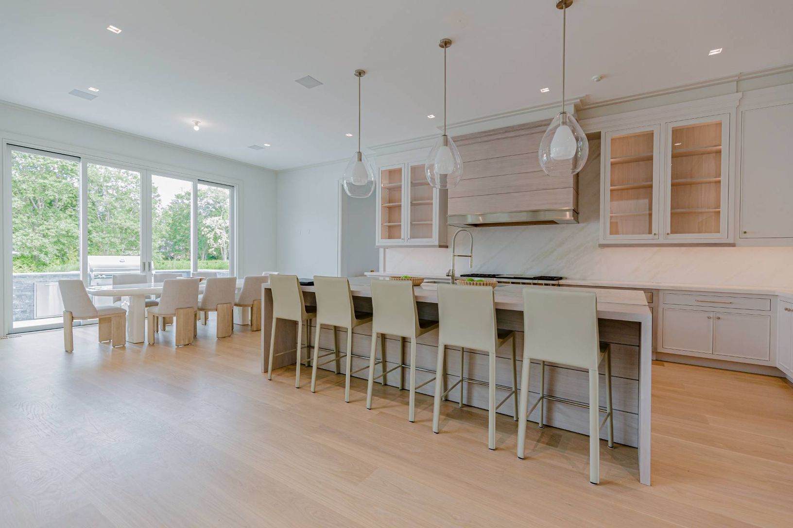 Long Springs Estate. Historic Long Springs Area from the year 1671. Suffolk County’s 62 Acre Preserve to the West. This is a New Bencar Construction. It is comprised of over 11,000+ square feet spread across three levels, all easily accessed by the elevator, on 2.3 acres of pristine land. All-new designer interior with 8 spacious bedrooms, including first and second-floor primary bedrooms. The grand primary bedroom on the second floor offers a
