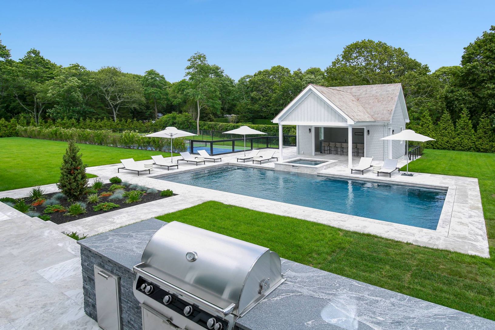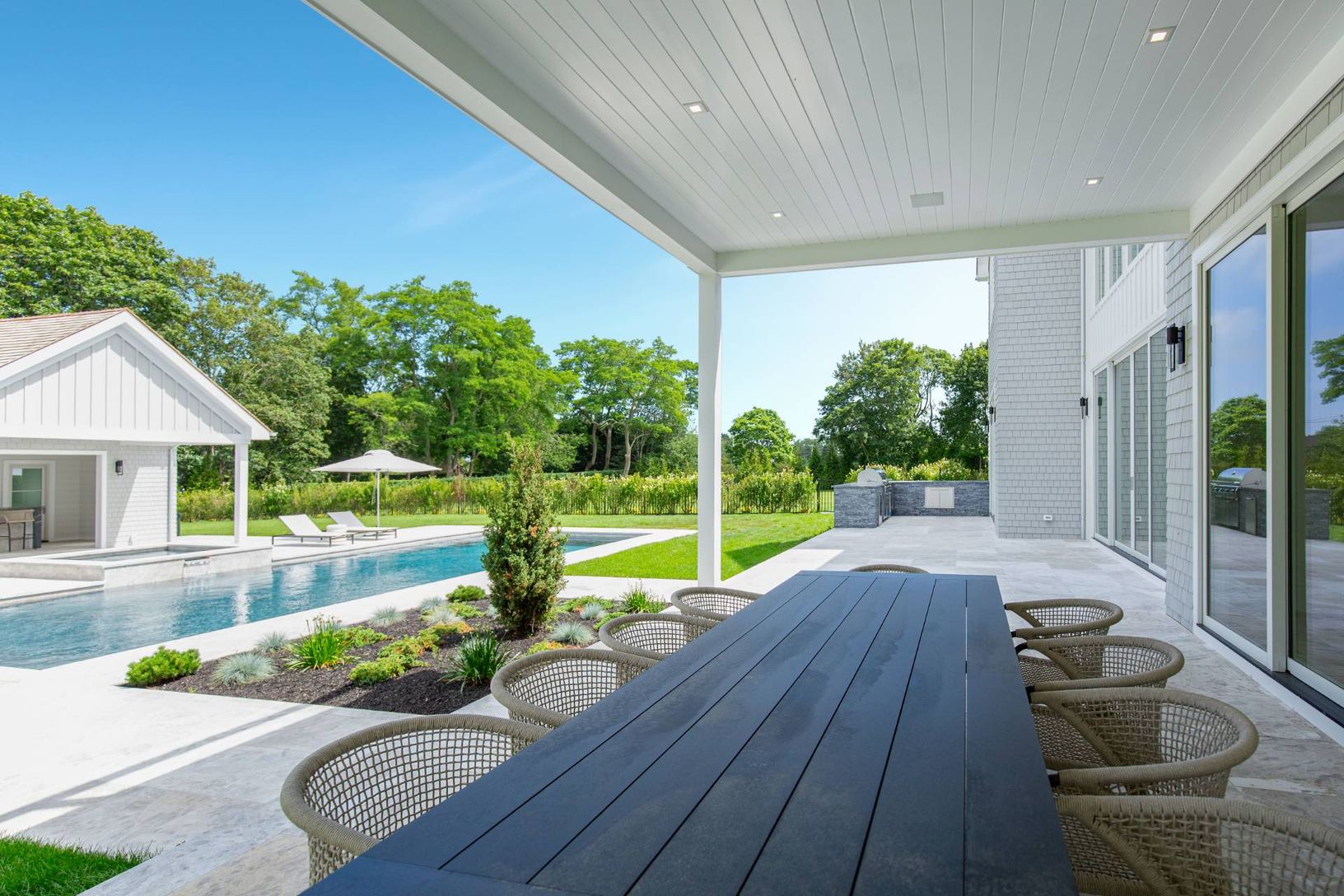 Move right in for summer 2025! Just completed and designer furnished- Stunning Southampton new construction with bright and open skies beam natural light across every inch of the expansive 2.3 acre property with large pool, pool house, and tennis. Inside and out, everything is elevated with premium materials and artisan craftsmanship in the design and construction to create a portrait of chic contemporary living in the Hamptons. Arrive to a gr