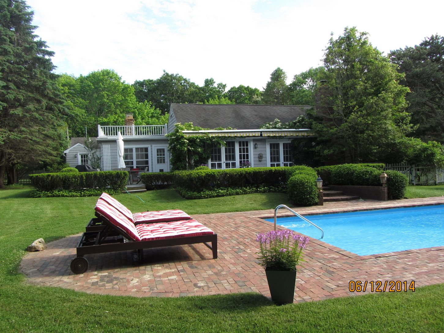 Handsome English Country-style Mini Estate, situated on a beautifully landscaped 1.38-acre property. Features include four bedrooms, three baths, living room with fireplace, formal dining room, kitchen, and central air conditioning. Exterior features include a large deck, brick patio, Heated pool and a pool house all surrounded by beautiful mature landscaping. Pool house is heated and has CAC, and just under 600 SF. The 2,433 SF interiors