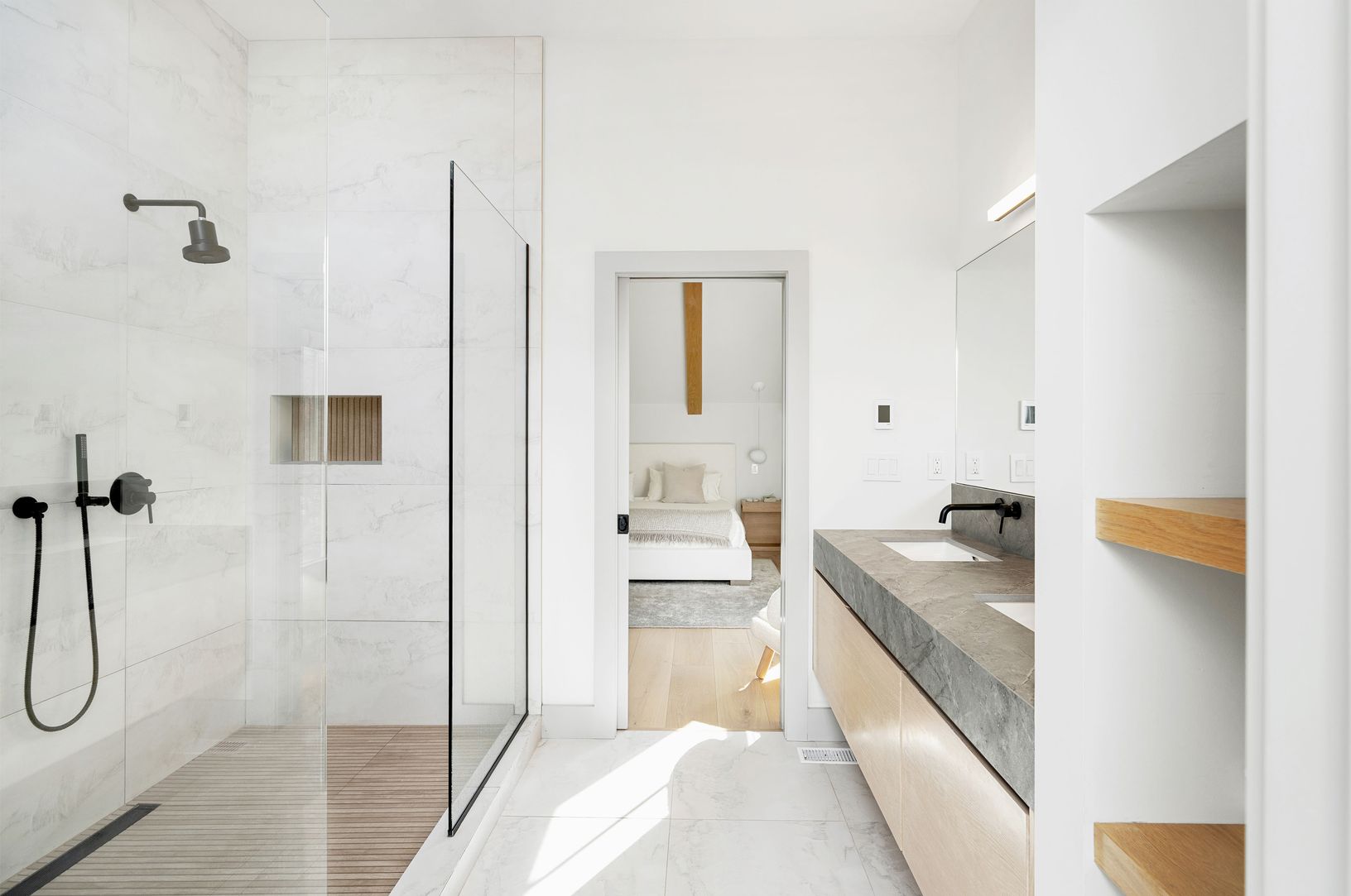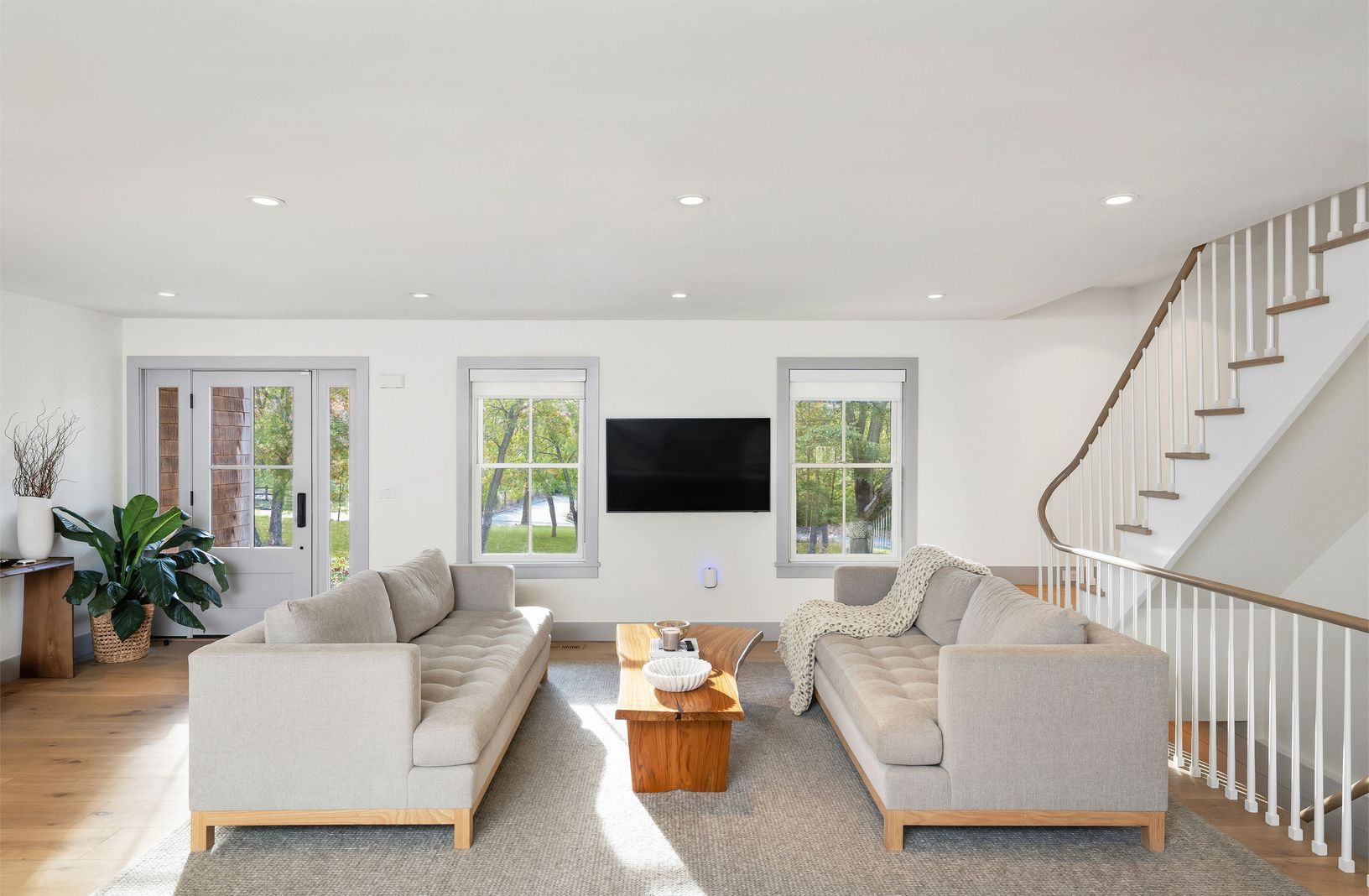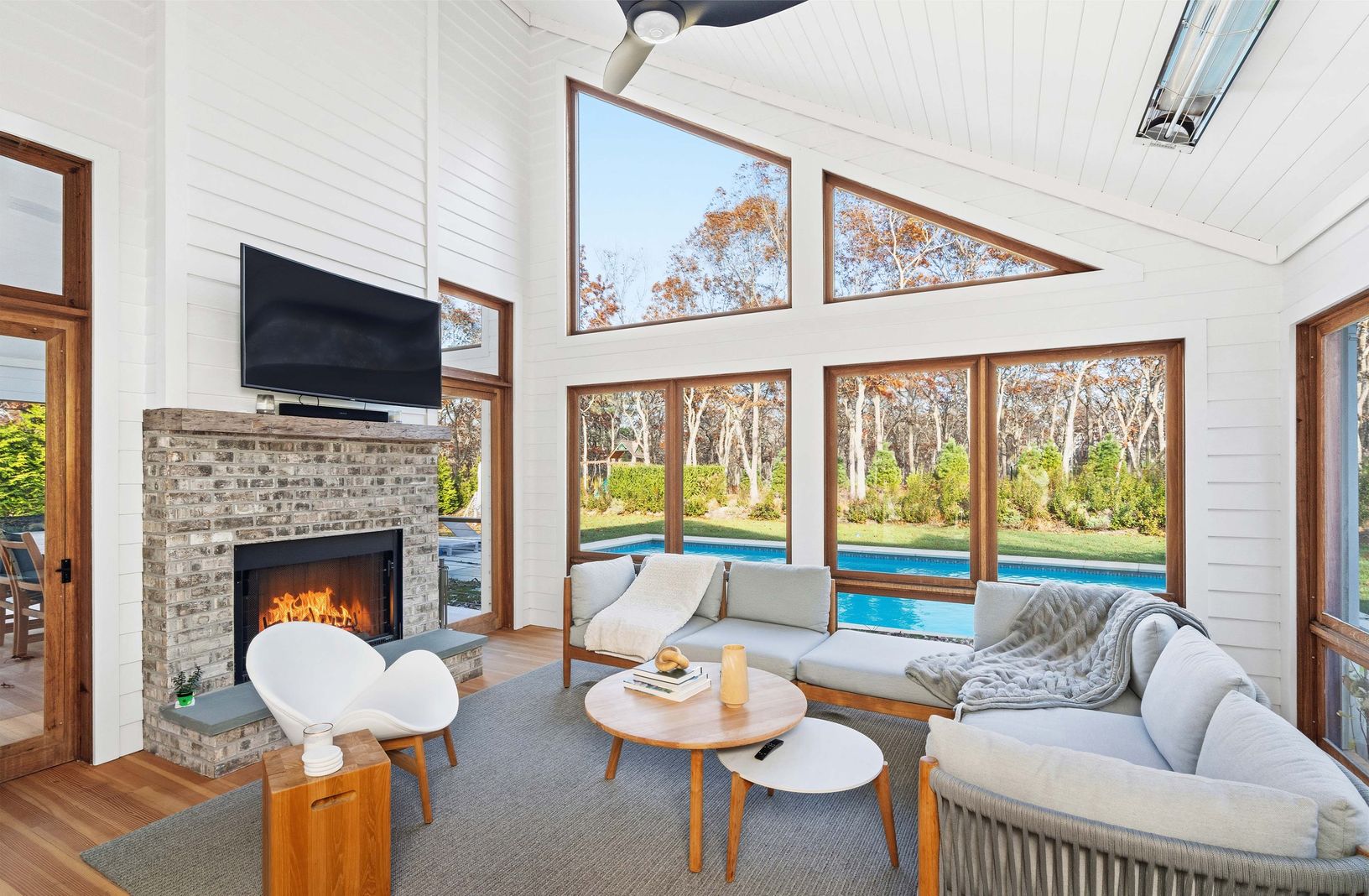 Centrally located between Bridgehampton and Sag Harbor, this sophisticated Sagaponack residence sits on .87 acres+/- and spans 6,292 SF+/- across three finished levels. Recently renovated in 2021 by Craft Modern Architects, the home reflects a meticulous blend of contemporary comfort, clean architectural lines, and warm natural textures. With 5 bedrooms, 5 full and 1 half bathrooms, and a heated attached 2-car garage, the residence offers both