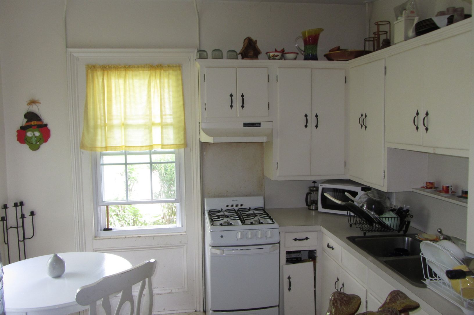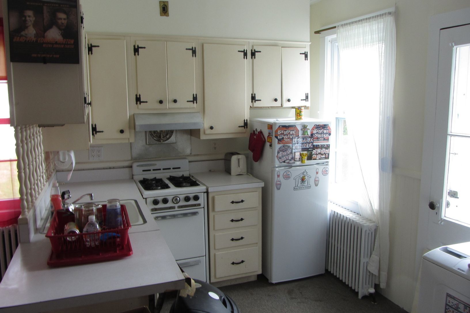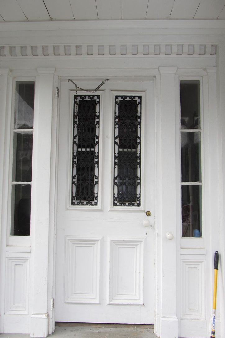 There are pine floors, original doors and moldings throughout, a front door with ruby glass, and a leaded grill that opens for ventila