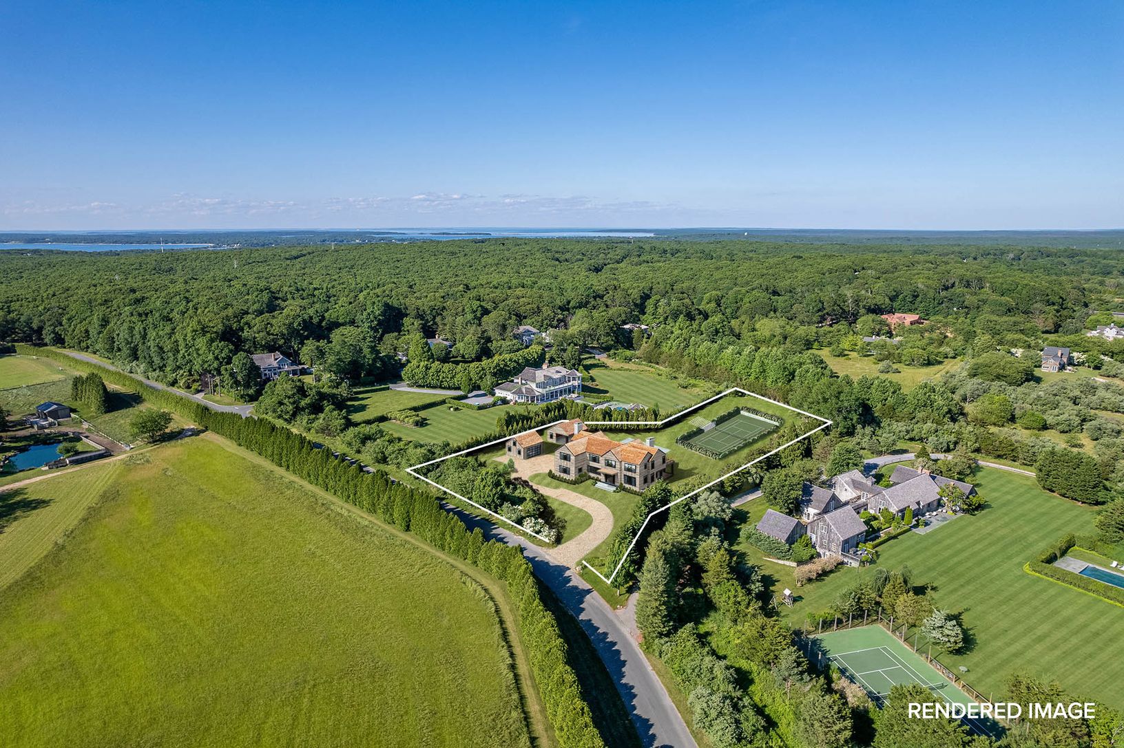 Set on a sprawling 2.65 acre+/- lot, this exquisite pre-completion estate is situated within Bridgehampton's horse and wine country. Complete with a 10,200 SF+/- main residence, 7 bedrooms, 7 full and 3 half bathrooms in total, a heated gunite pool and spa, pool house, tennis court, attached 2-car garage, and detached 2-car garage.