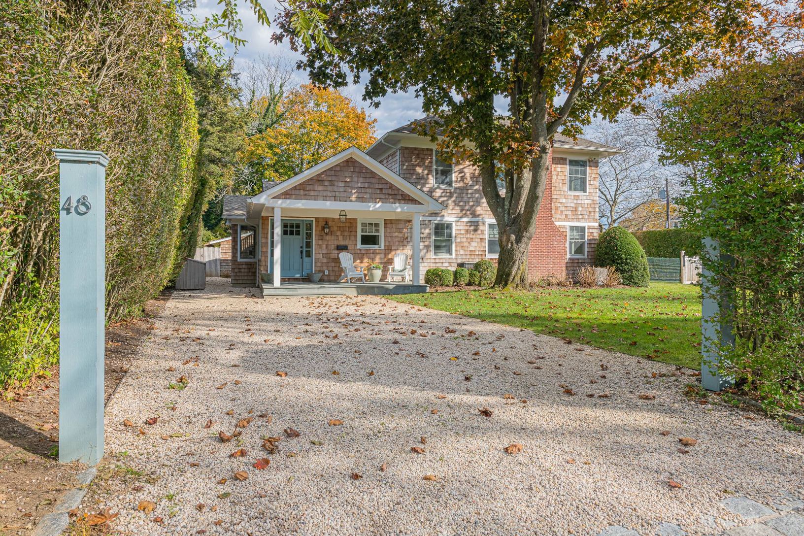 New to the Southampton Village Market! This upgraded traditional-style home, resting on 0.31 acres, contains four bedrooms (1st and 2nd level primary suites) plus five full baths and one half bath. The open kitchen features granite countertops and seating at the center island, plus ample pantry storage space. The kitchen flows into a generous dining area with a beamed cathedral ceiling. Beyond that is a living room with gas-burning fireplace a