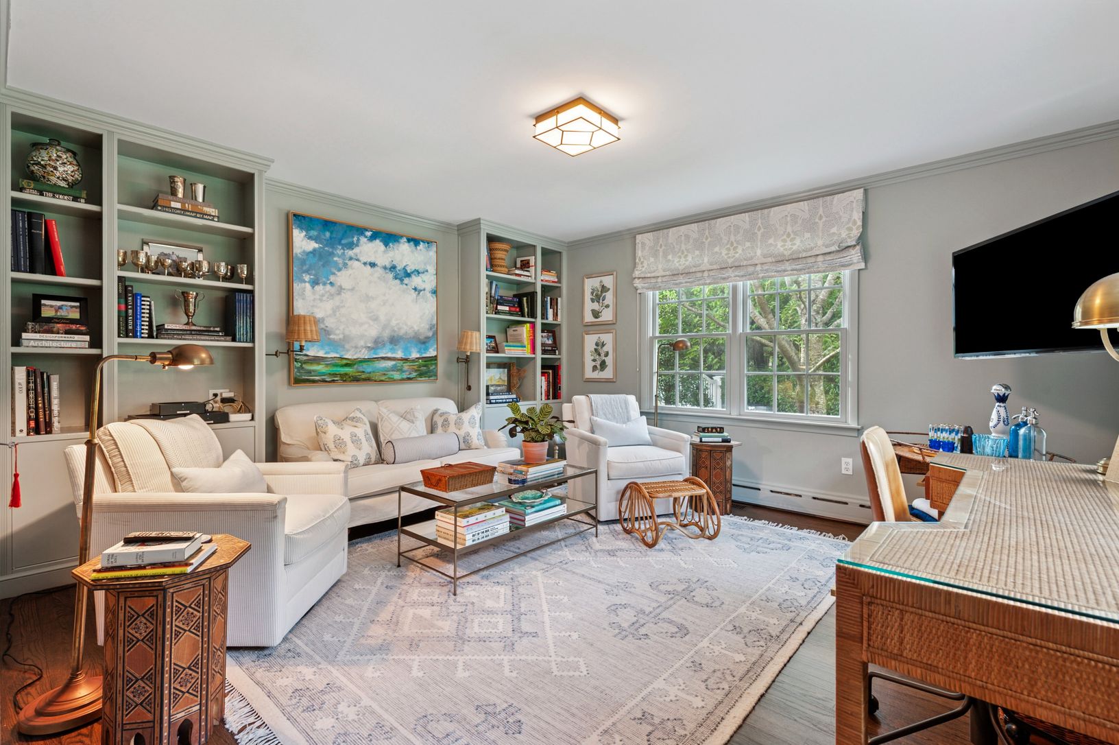 Situated on prestigious Captains Neck Lane, this beautifully renovated shingle-style residence is nestled on over half an acre in the heart of Southampton Village's coveted estate section, minutes from shops, restaurants and world class ocean beaches. Offering a turn key elegant home with modern amenities, the home features 4 bedrooms, a gracious living room with fireplace, a cozy den/library, and an oversized chef's eat-in kitchen that opens