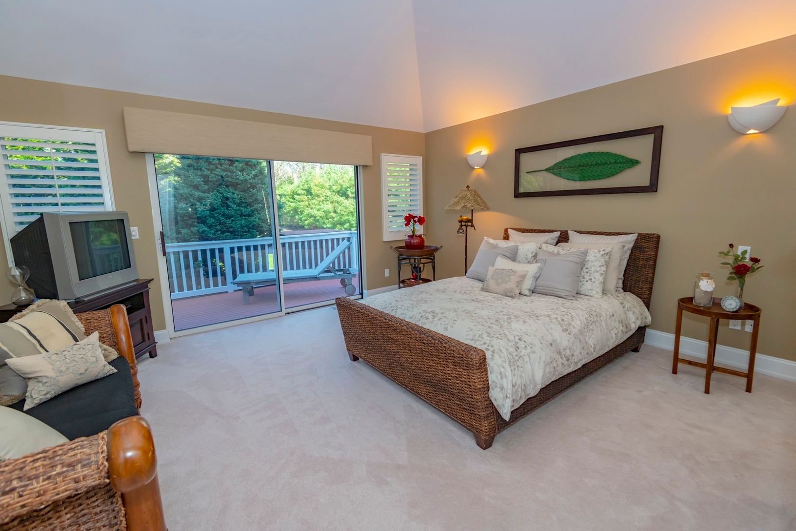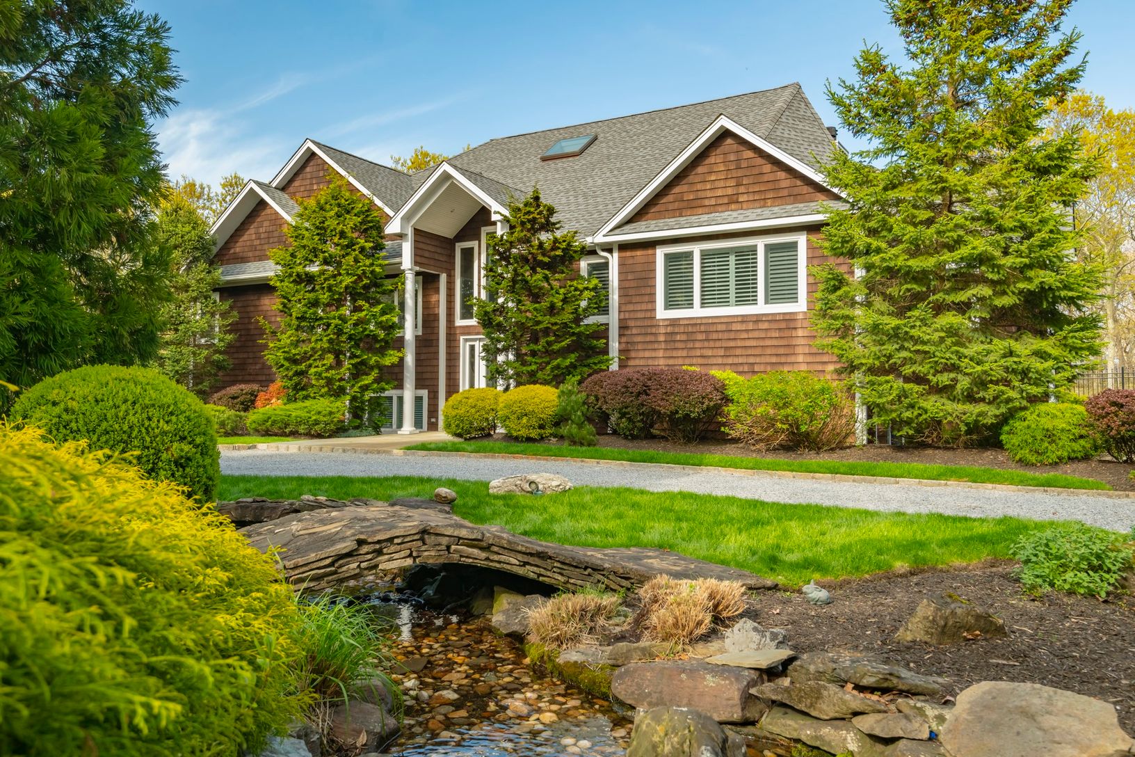 Enter the private gates to enjoy Hamptons Estate living. This expansive Post Modern home offers 6 large bedrooms, 4 full baths and luxury finishes throughout. Enjoy the great room with fireplace and vaulted ceilings overlooking the spacious deck and in ground pool with waterfall and outdoor shower. The custom kitchen complete with state of the art appliances and breakfast area perfect for entertaining. Your outdoor oasis is surrounded by