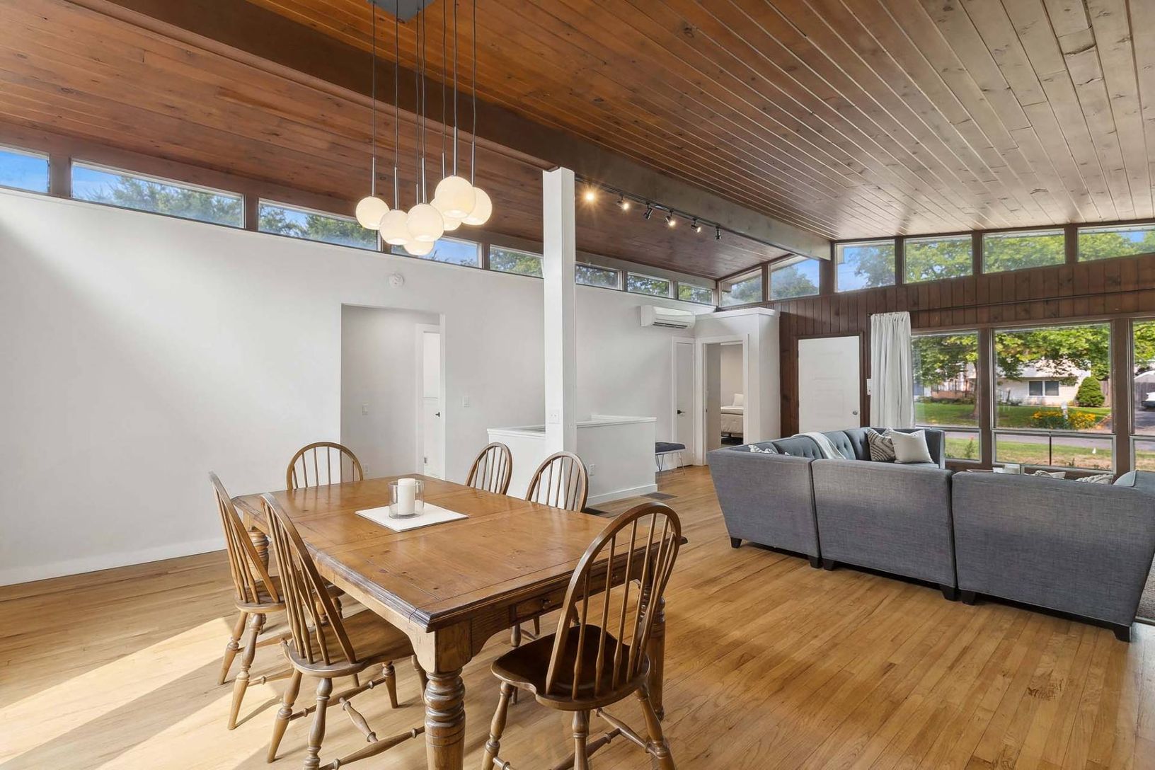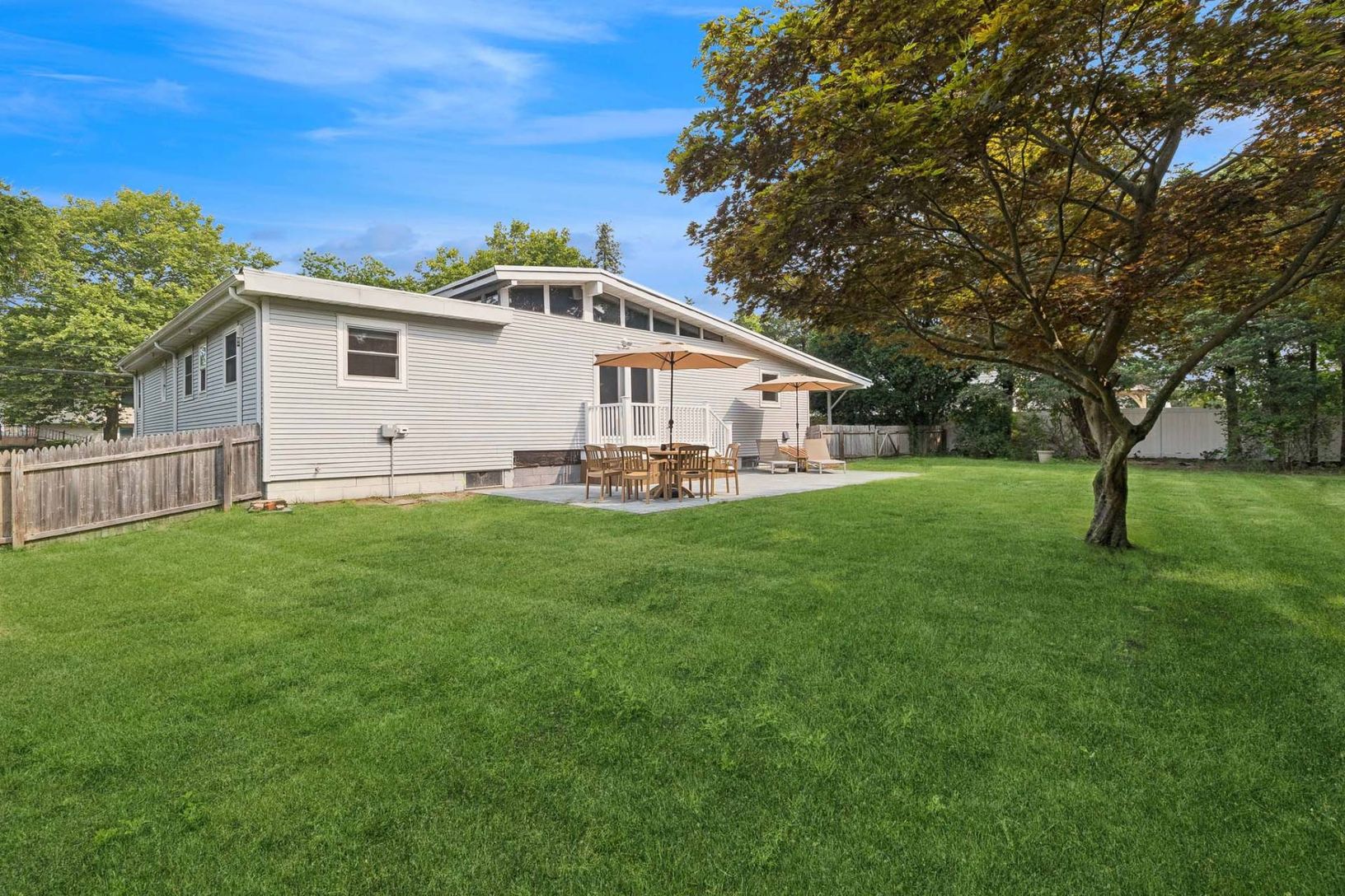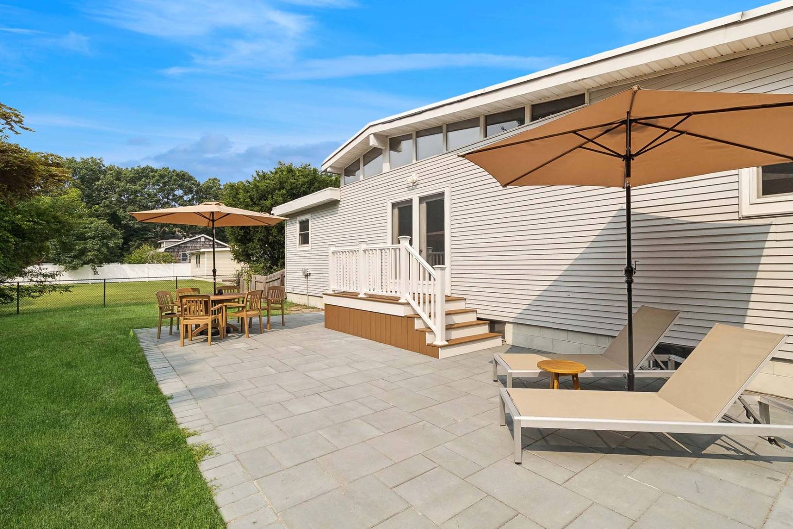 Come see this newly renovated three bedroom, two bath for year round rental in East Moriches Newport Beach community. This open concept, mid century modern home has a brand new kitchen, new patio and irrigation system.  The property has additionally been upgraded with a completely new roof and solar panels in 2025 offering significant savings on electricity costs. There is a large ensuite primary, two guest bedrooms, a recently renovated guest