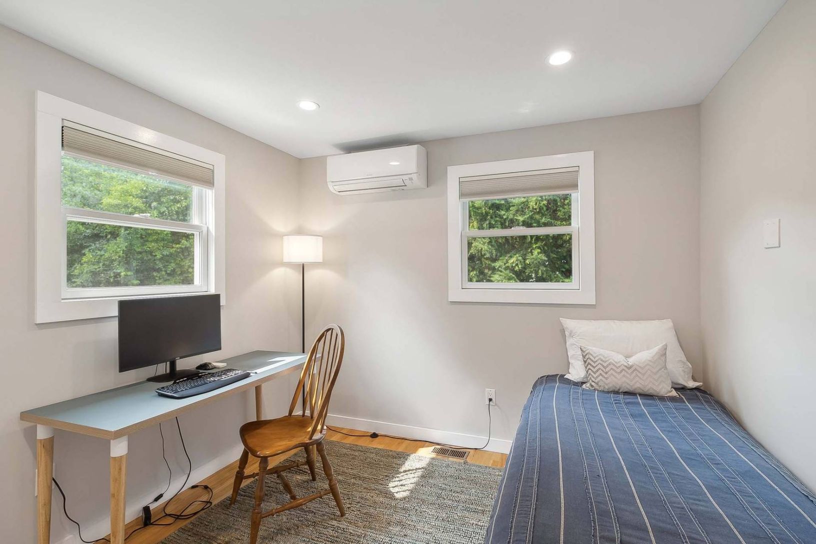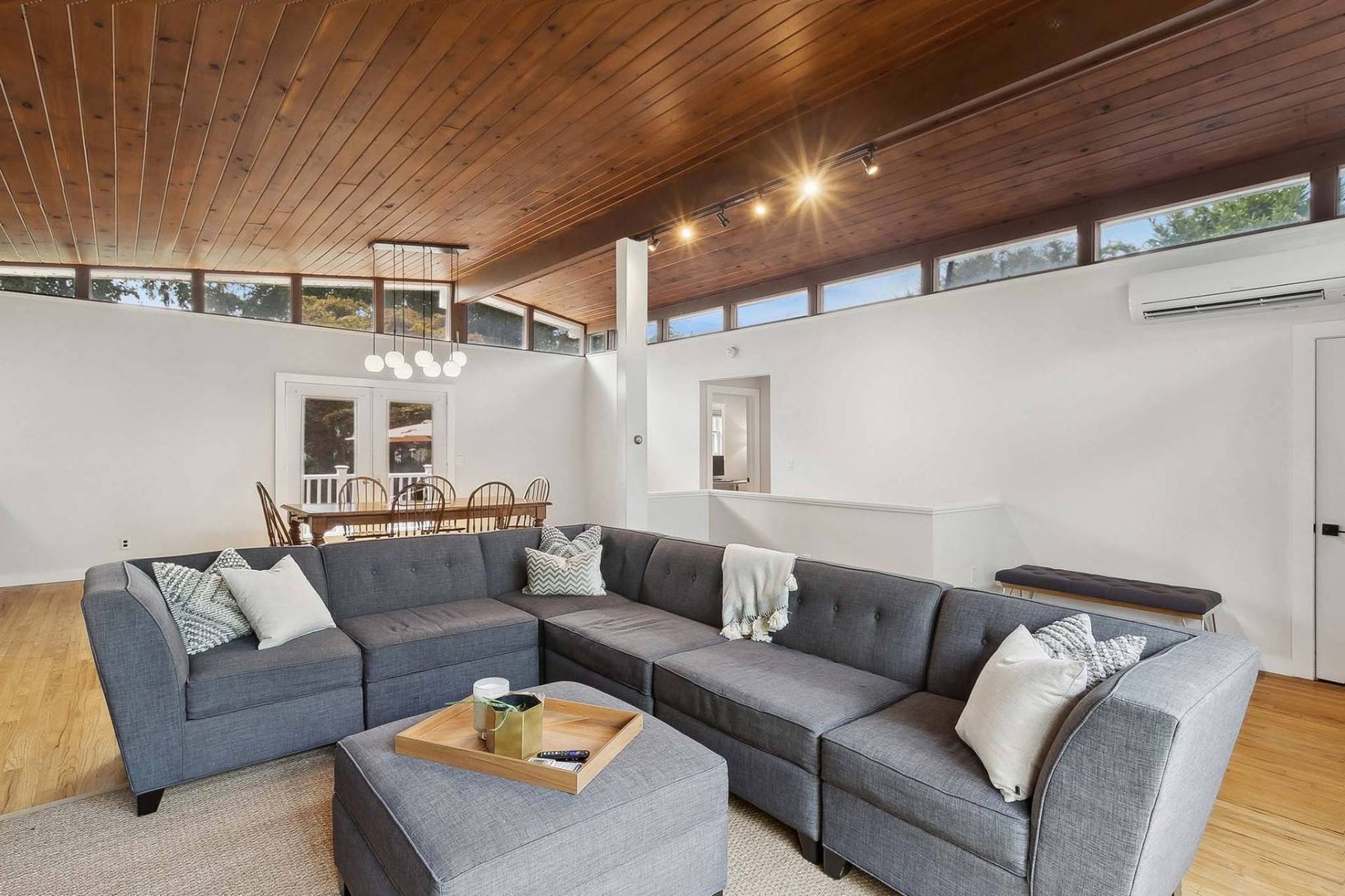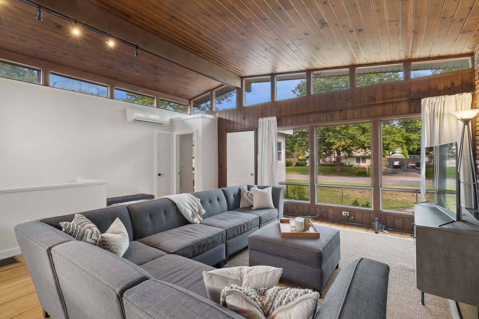 Come see this newly renovated three bedroom, two bath for year round rental in East Moriches Newport Beach community. This open concept, mid century modern home has a brand new kitchen, new patio and irrigation system.  The property has additionally been upgraded with a completely new roof and solar panels in 2025 offering significant savings on electricity costs. There is a large ensuite primary, two guest bedrooms, a recently renovated guest