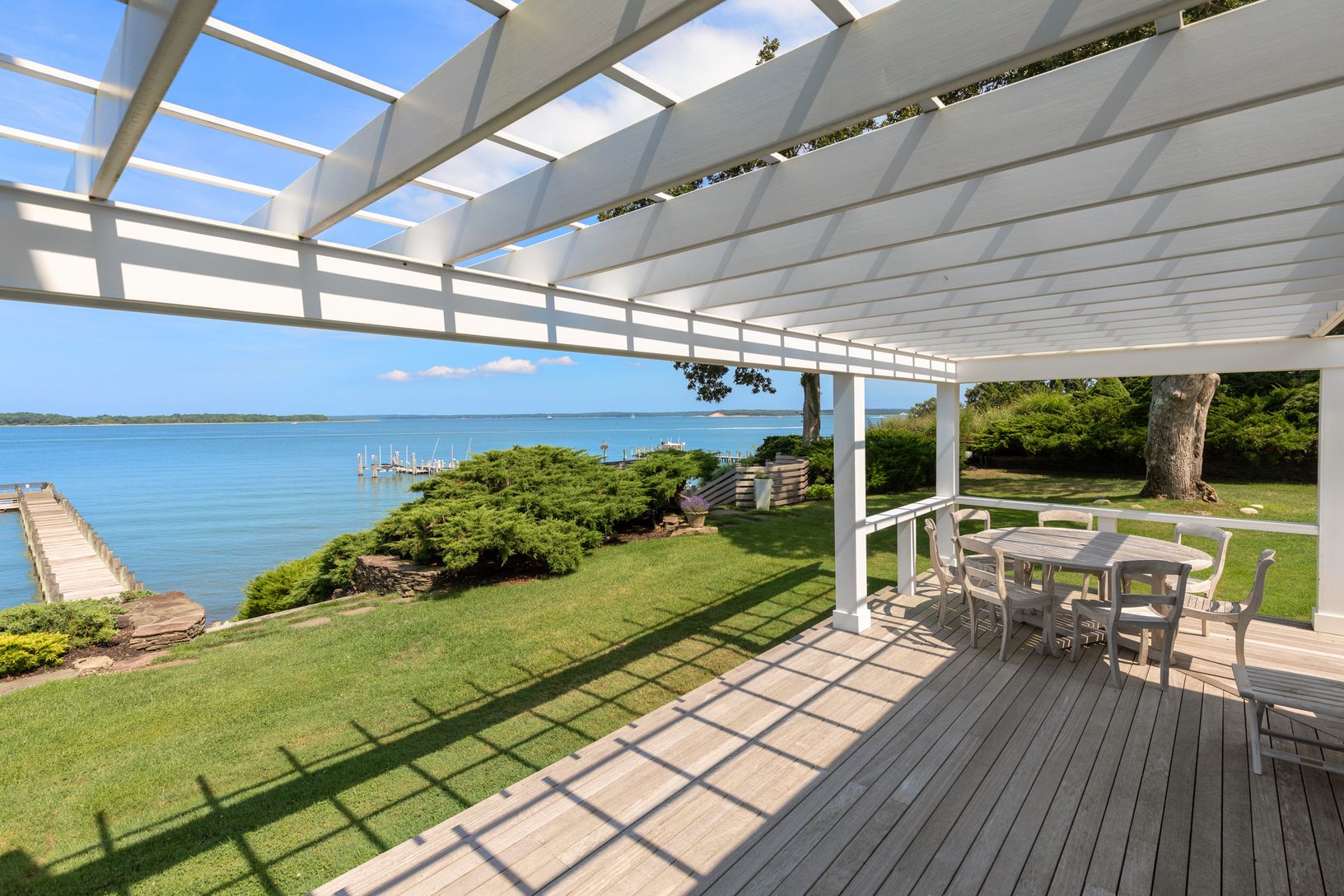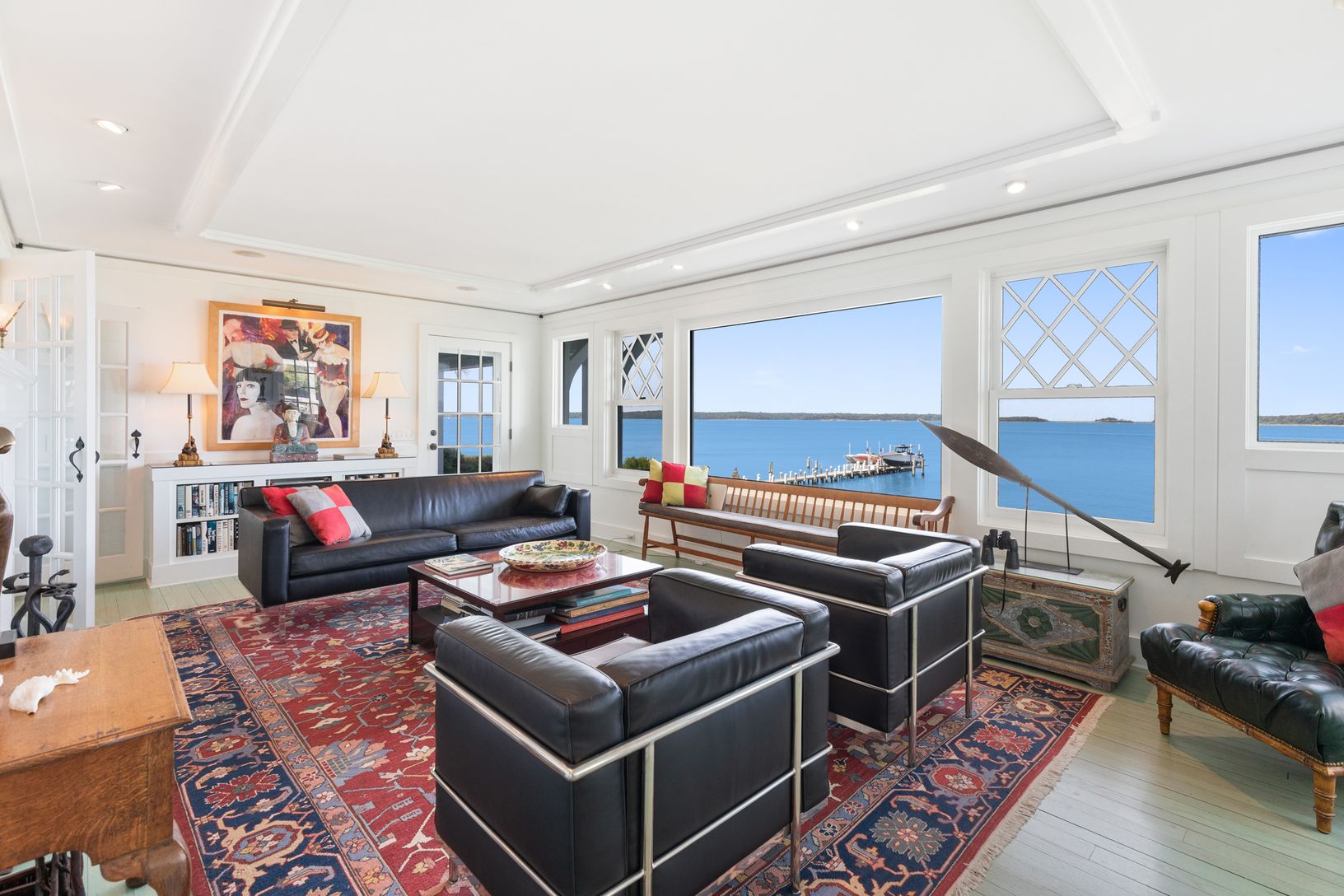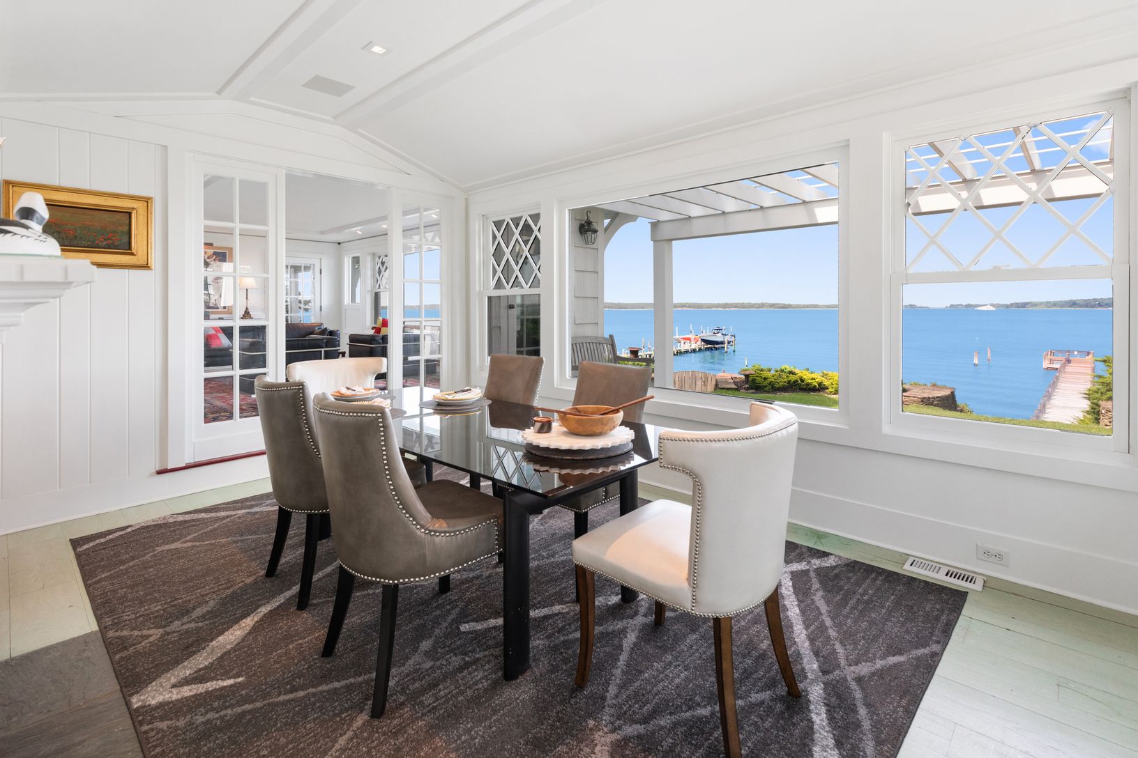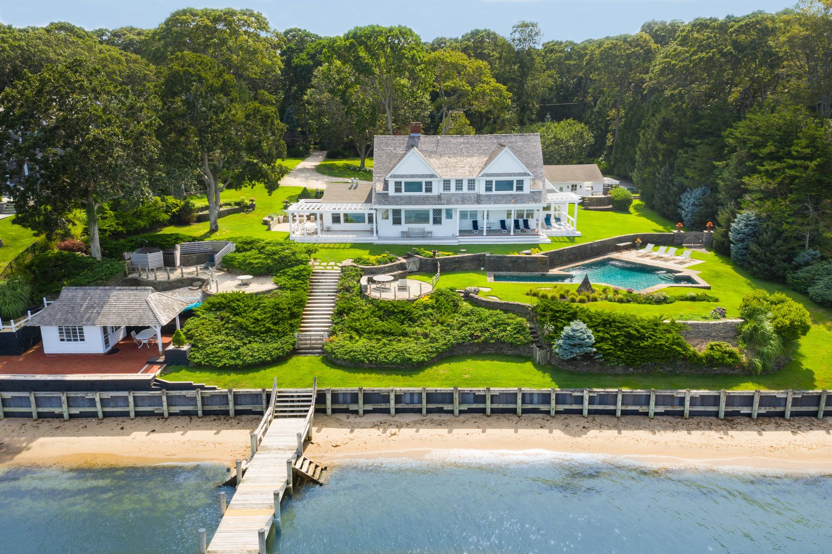 Located on the east facing shores of North Haven with picturesque sunrises across Sag Harbor Bay, this classic New England cape is steeped in gentility and elegance. High on a terraced bluff, the home sits on +-1.5 acres offering some of the most spectacular views to be found. Meticulously renovated and expanded since its original build in the 1940s, there are five bedrooms, each looking out across the water accompanied by four full and one ha