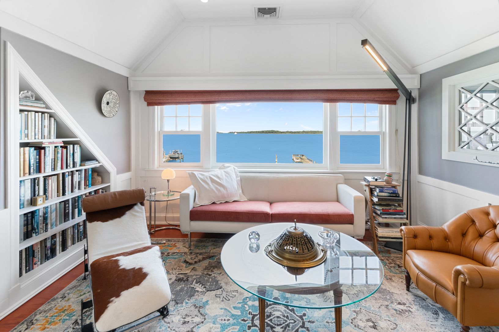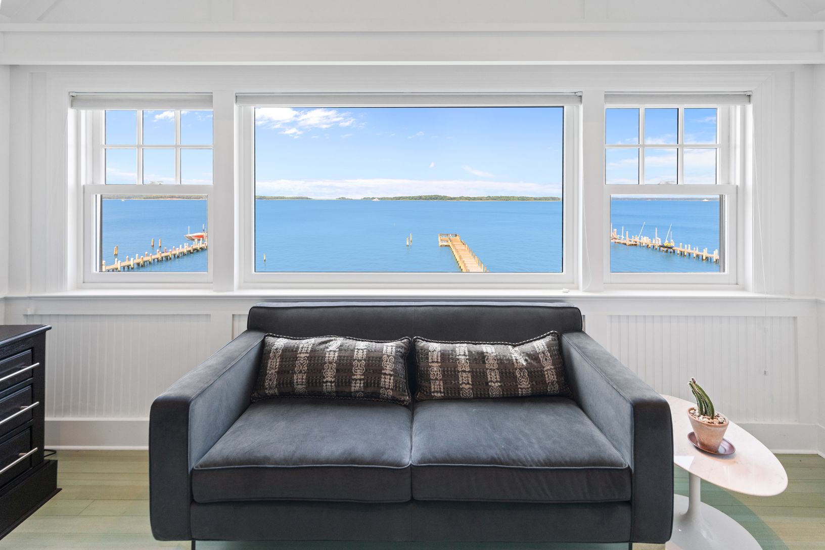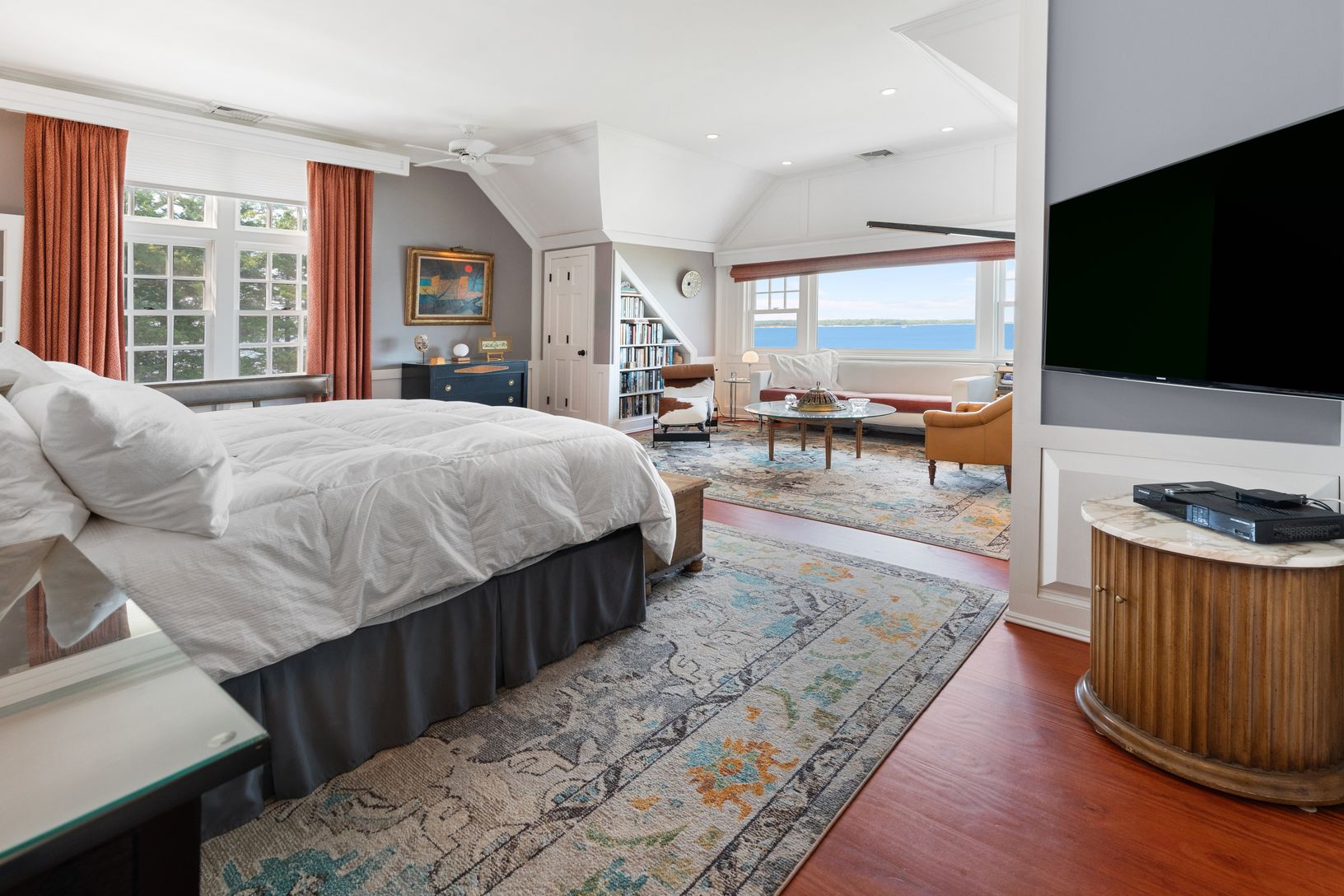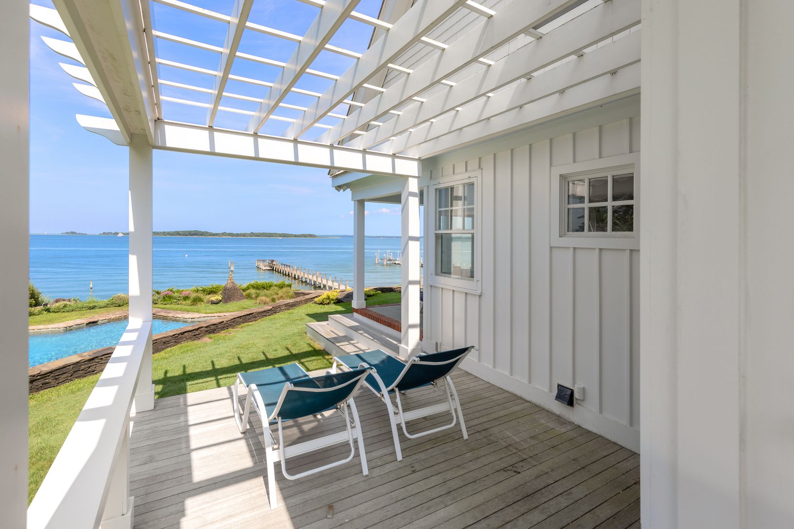 Located on the east facing shores of North Haven with picturesque sunrises across Sag Harbor Bay, this classic New England cape is steeped in gentility and elegance. High on a terraced bluff, the home sits on +-1.5 acres offering some of the most spectacular views to be found. Meticulously renovated and expanded since its original build in the 1940s, there are five bedrooms, each looking out across the water accompanied by four full and one ha