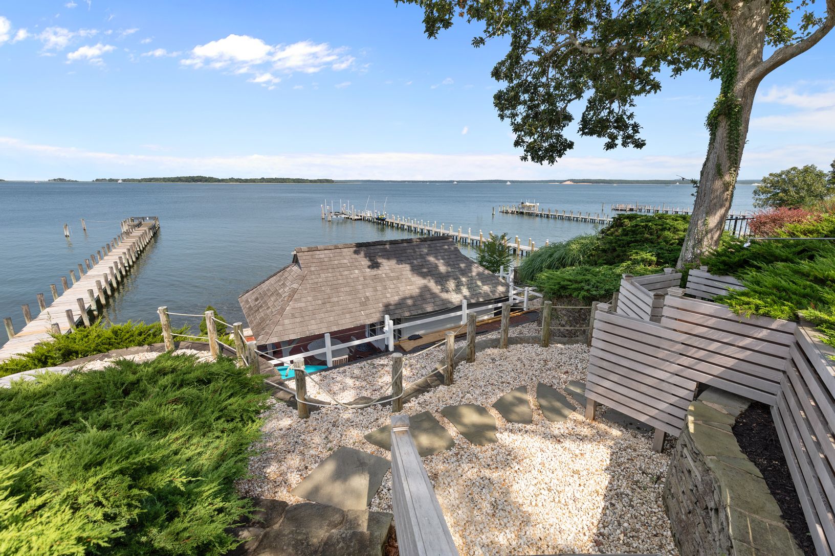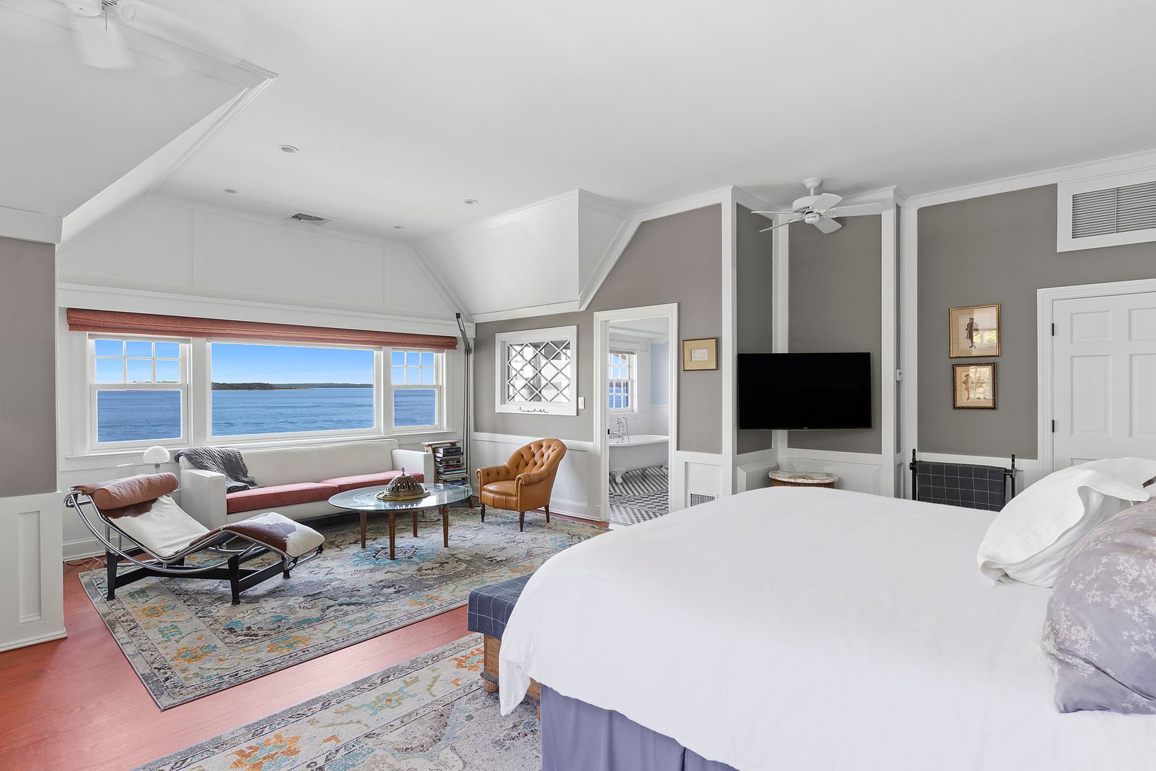 Located on the east facing shores of North Haven with picturesque sunrises across Sag Harbor Bay, this classic New England cape is steeped in gentility and elegance. High on a terraced bluff, the home sits on +-1.5 acres offering some of the most spectacular views to be found. Meticulously renovated and expanded since its original build in the 1940s, there are five bedrooms, each looking out across the water accompanied by four full and one ha