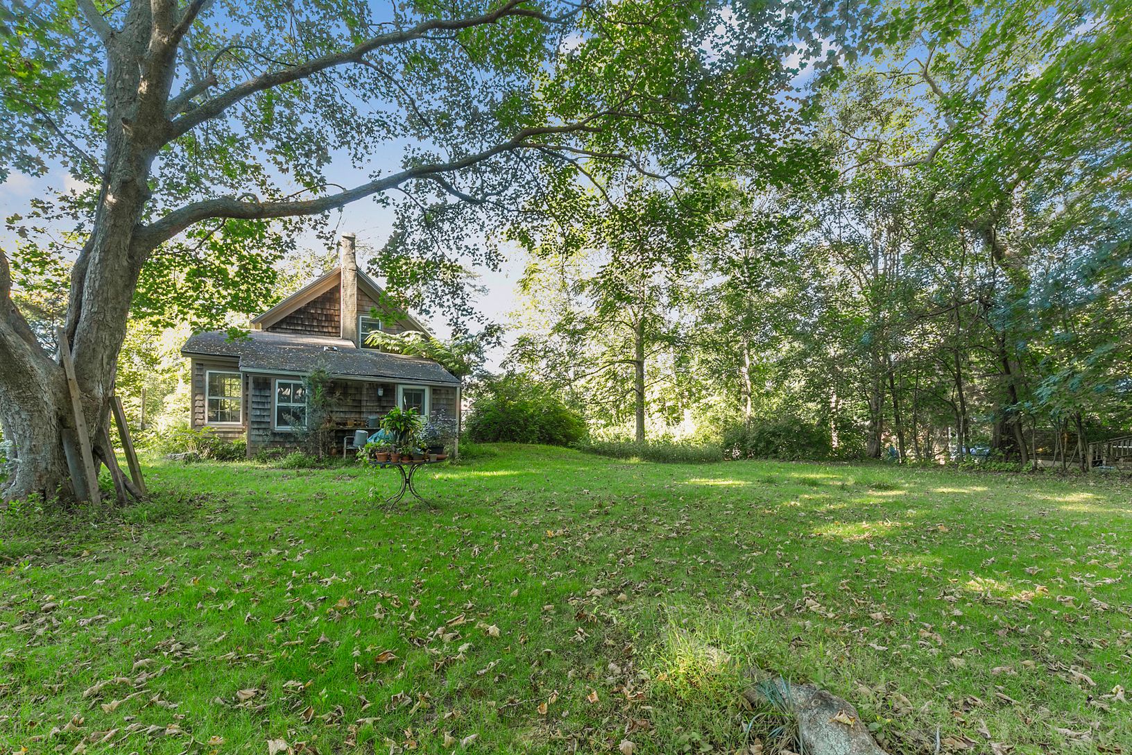 Large sag harbor acreage with charming 3 bedroom 2 bath house and accessory building on the property sits on a hill looking down towards the village.
