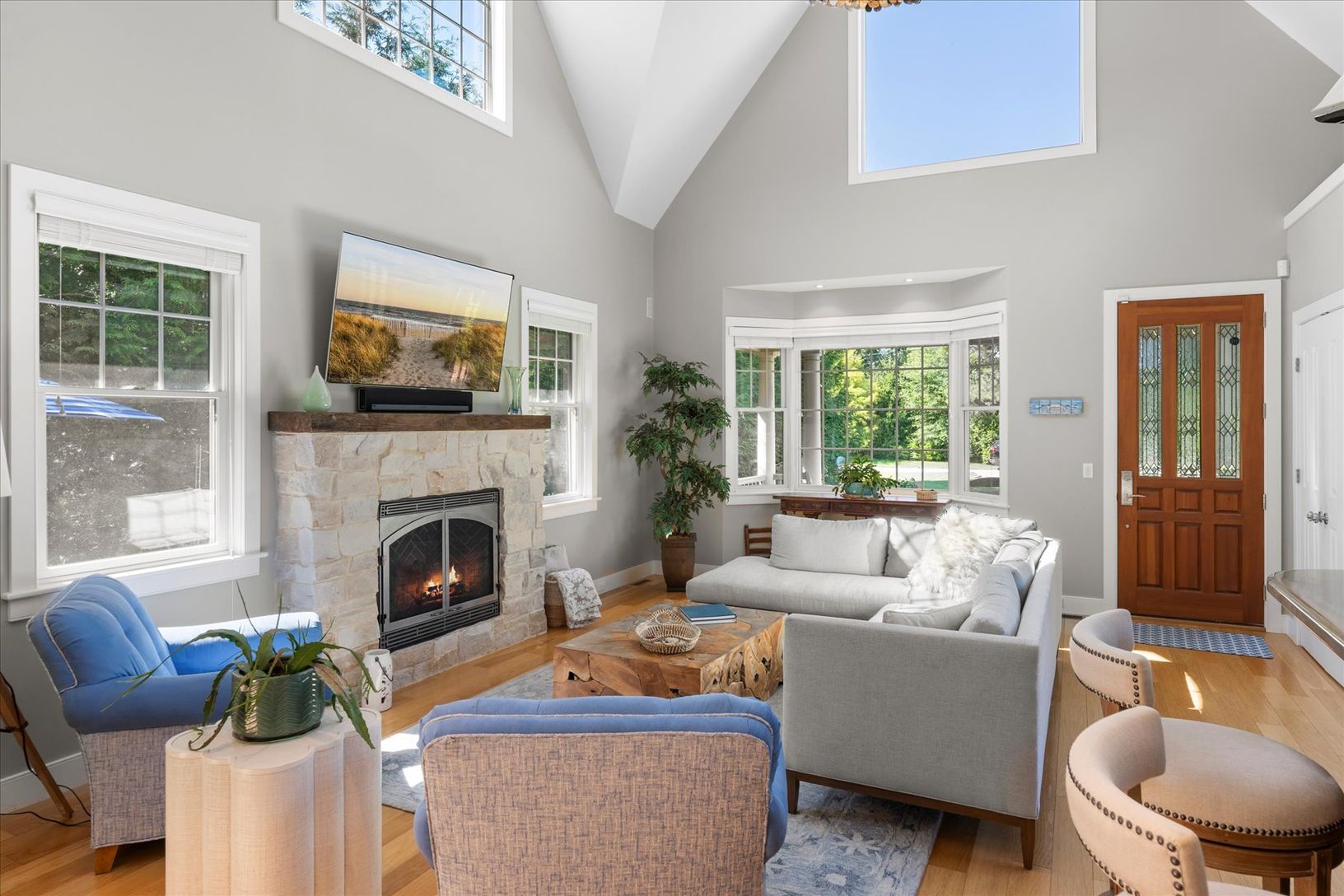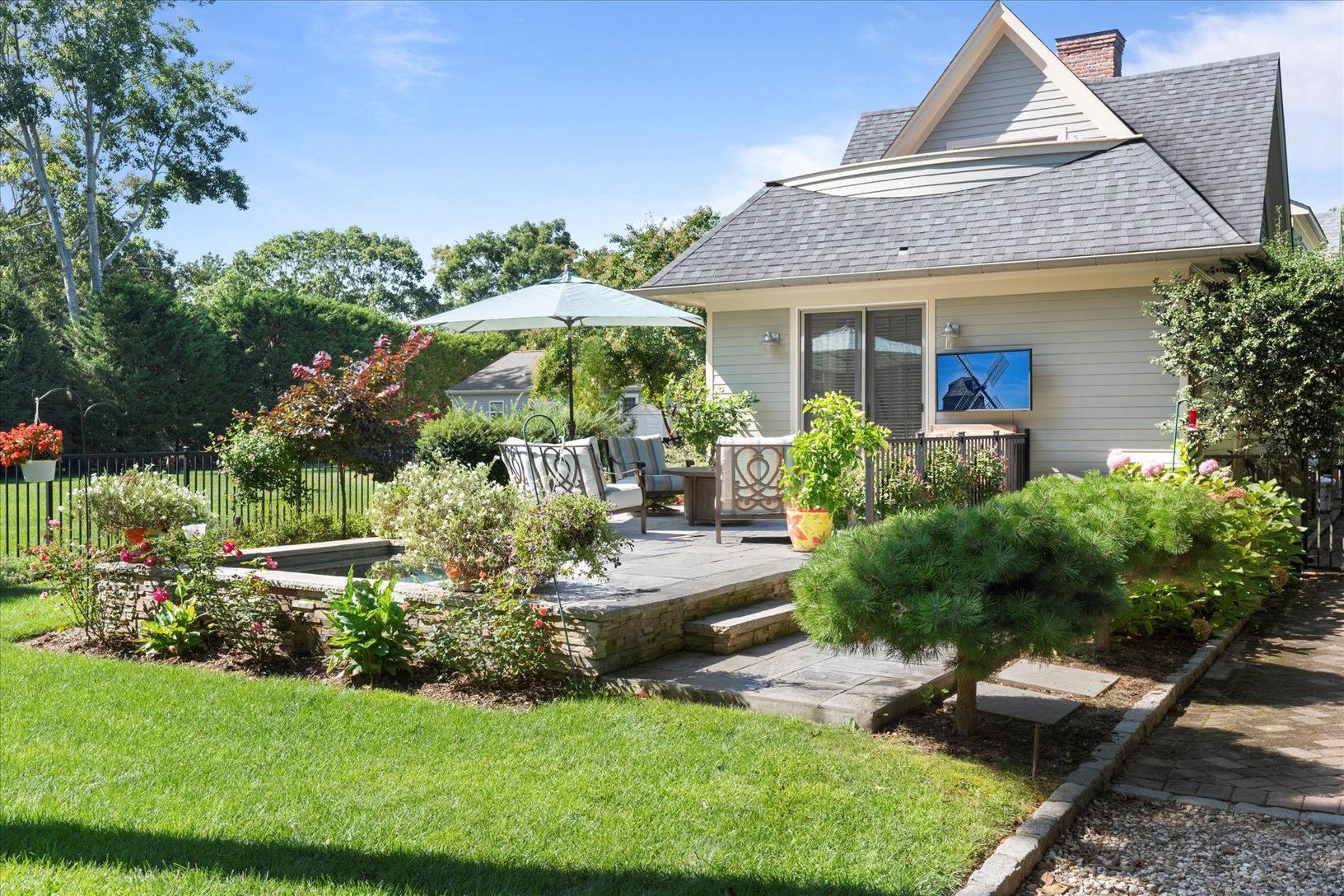 3-bed, 3.5-bath retreat in Quogue Village! Revel in open-concept living, a private first-floor Primary suite, Eat in Kitchen, Dining area and living room with bar. Outside, a built-in spa, heated driveway, and an oversized 2-car garage. Entertain amid lush landscaping and seize the Hamptons dream!