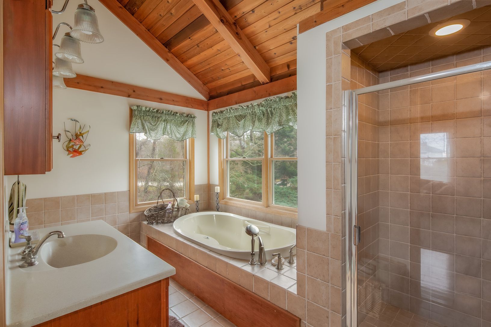 This house has it all. Private beach access to Great Peconic Bay, heated pool, central air, large custom kitchen, great room with fireplace, family room with slider to deck and pool area, den and first floor full bath, master suite with waterviews, 2 bedrooms that share a full baths. Come and experience the beautiful sunsets and everything the Hamptons has to offer.