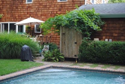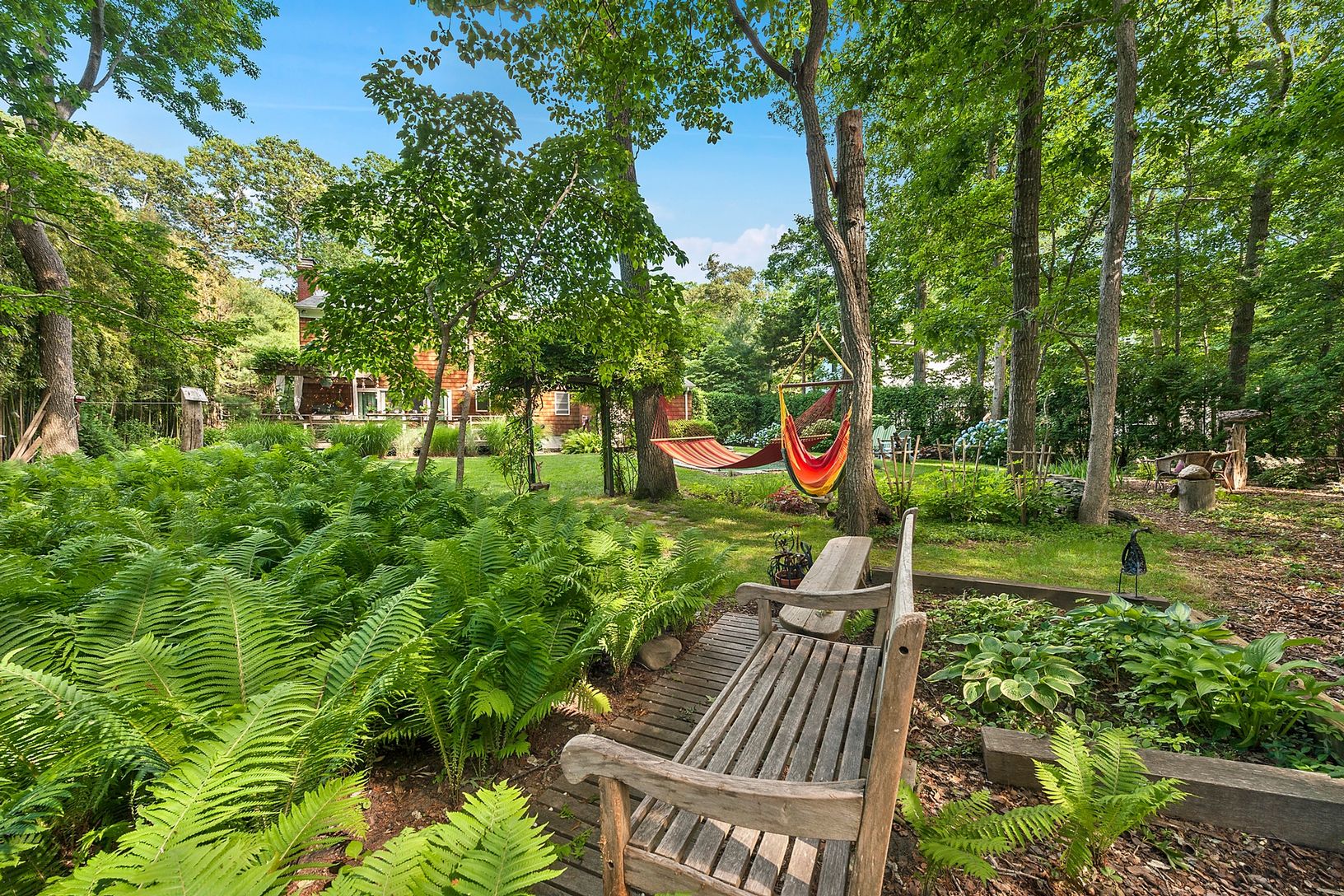 Charming 2-story traditional located in the bay area of East Hamptons Clearwater Beach Association , private beach and marina rights. residence offers five bedrooms, three full baths, , renovated marble kitchen with GE appliances, sunny living room with brick wood burning fireplace and separate dining room. The sprawling half- acre +/- parcel boasts beautiful perennial gardens, expansive custom deck, outdoor shower, heated saltwater pool,