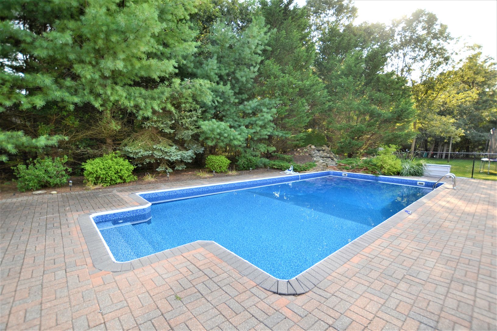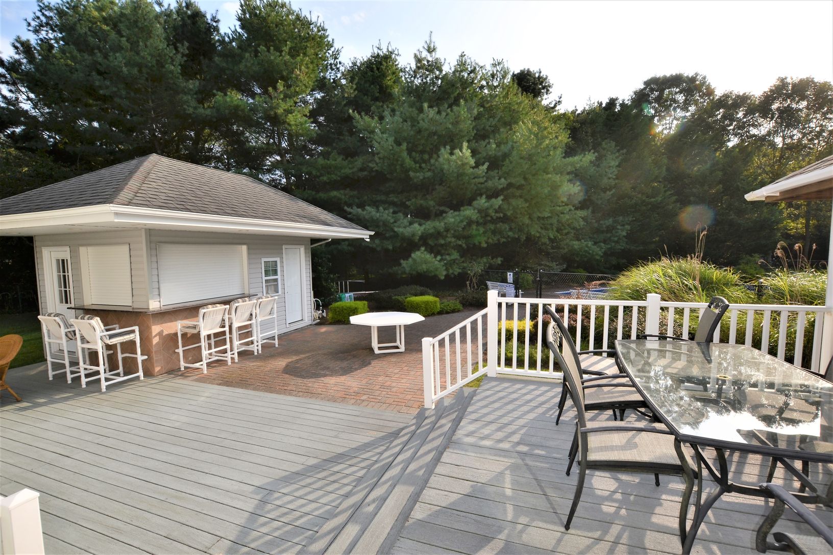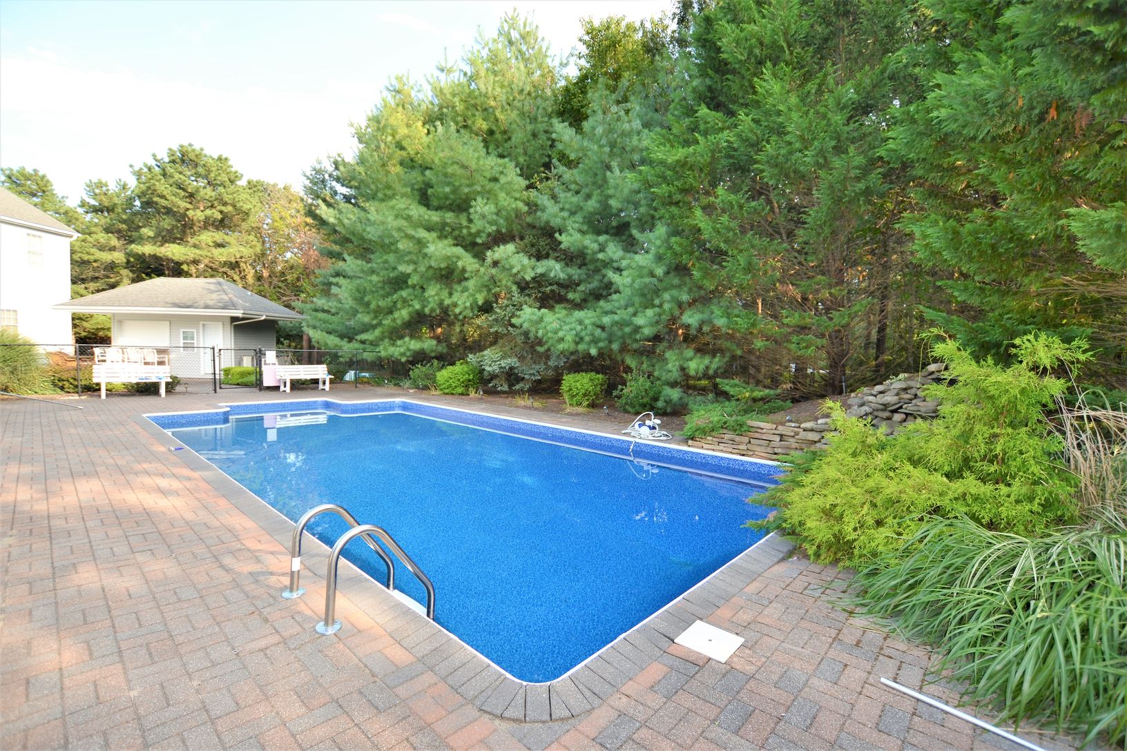 Private backyard oasis featuring gated, inground heated 18x36 pool w/rock waterfall. Pool house with kitchenette, wet bar, bar seating, granite countertops, microwave, tv and fridge. Private Pool house full bath. Covered deck with ample seating and BBQ. Patio with additional seating. Inside boasts a formal Living Rm w/fireplace, formal Dining Rm, Den, Eat-In Kitchen and Powder Rm. First Floor Laundry. Upstairs boasts Master Bedroom Suite w