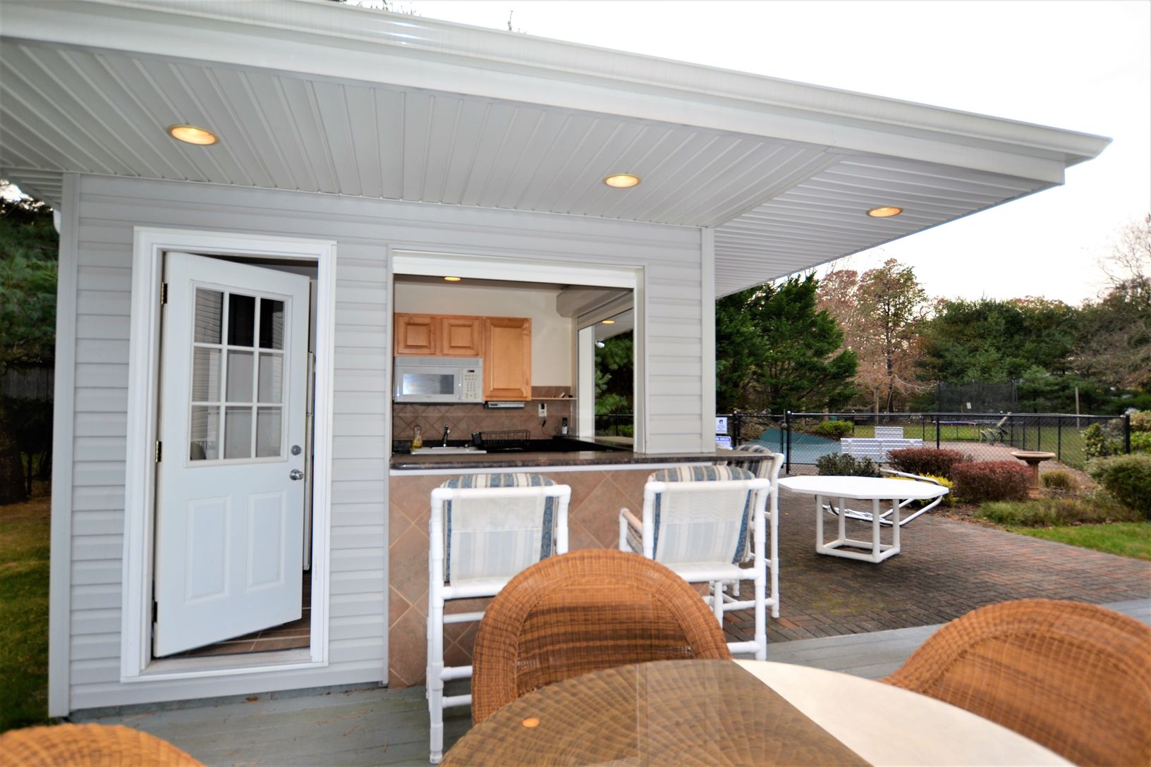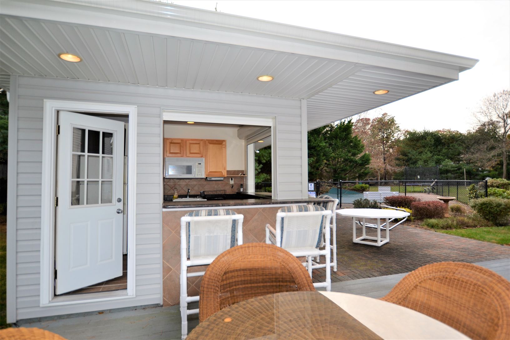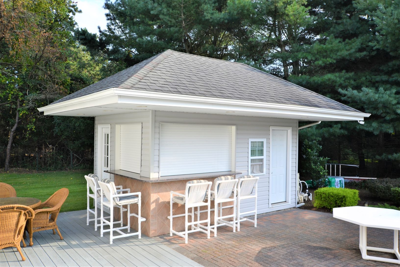 Private backyard oasis featuring gated, inground heated 18x36 pool w/rock waterfall. Pool house with kitchenette, wet bar, bar seating, granite countertops, microwave, tv and fridge. Private Pool house full bath. Covered deck with ample seating and BBQ. Patio with additional seating. Inside boasts a formal Living Rm w/fireplace, formal Dining Rm, Den, Eat-In Kitchen and Powder Rm. First Floor Laundry. Upstairs boasts Master Bedroom Suite w