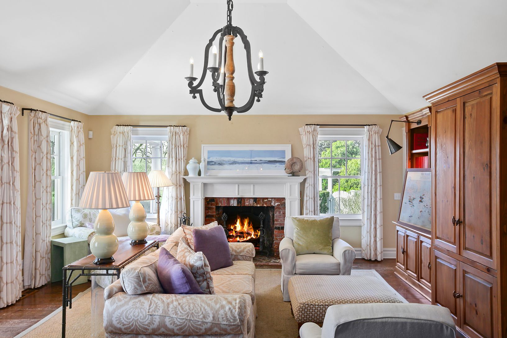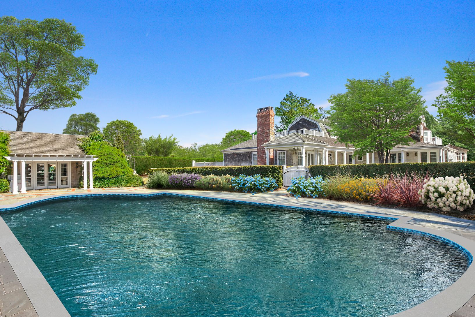 First offering on First Neck Lane with 2.5 lovely landscaped acres for your family and guests to enjoy this Summer. Shingle style with three finished levels including a third-floor sun porch with ocean views. Deep first-floor sun porches and two decks with southern and western views, six bedrooms, eight full baths, four fireplaces and separate staff quarters. An eat in kitchen with breakfast area is ideal for lazy weekend brunches as is the ou