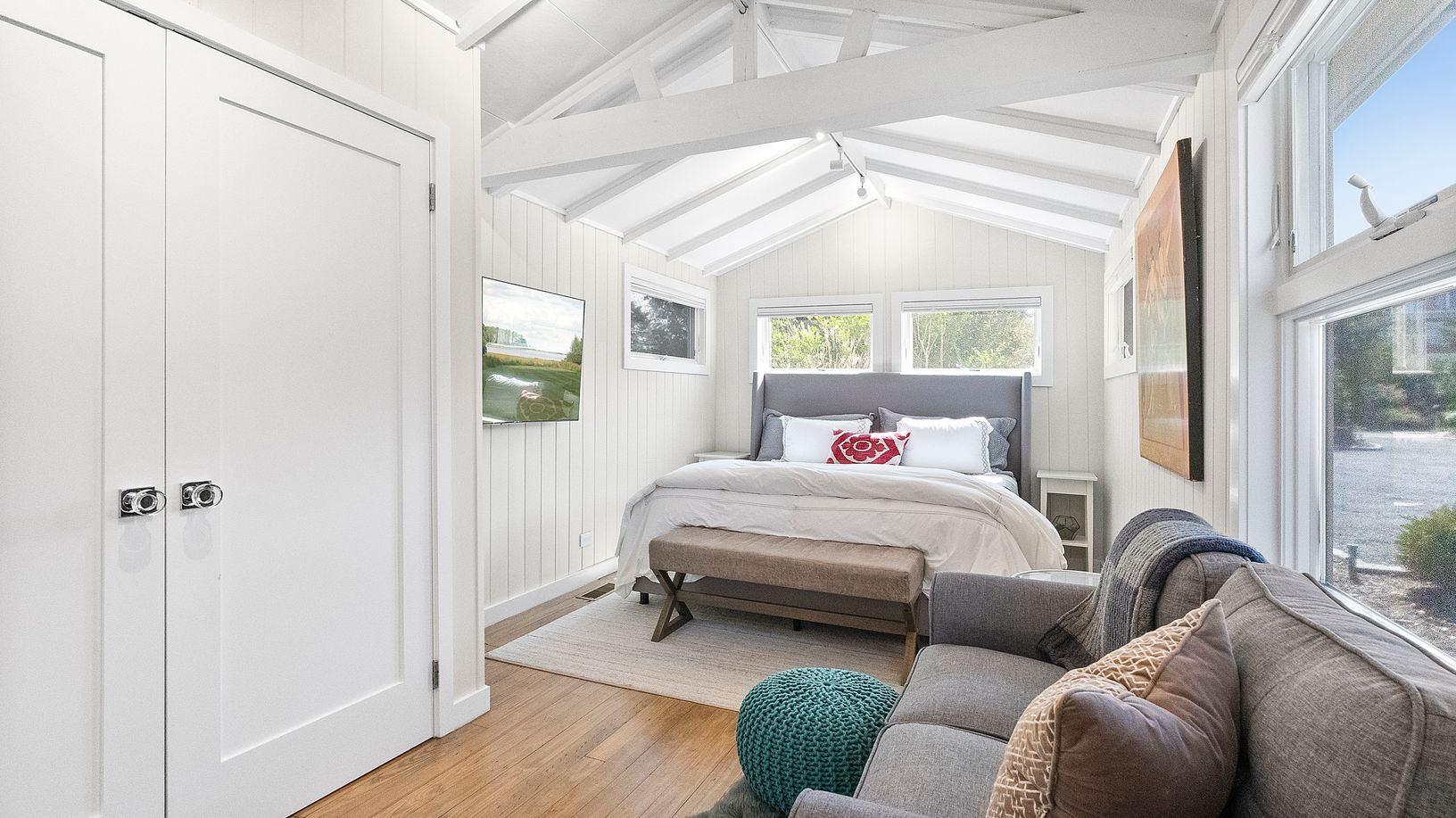 Nestled on sought-after Dune Road, this 4-bedroom and 4-bathroom home is a testament to coastal elegance. The west-facing orientation ensures picturesque sunsets from the main living s