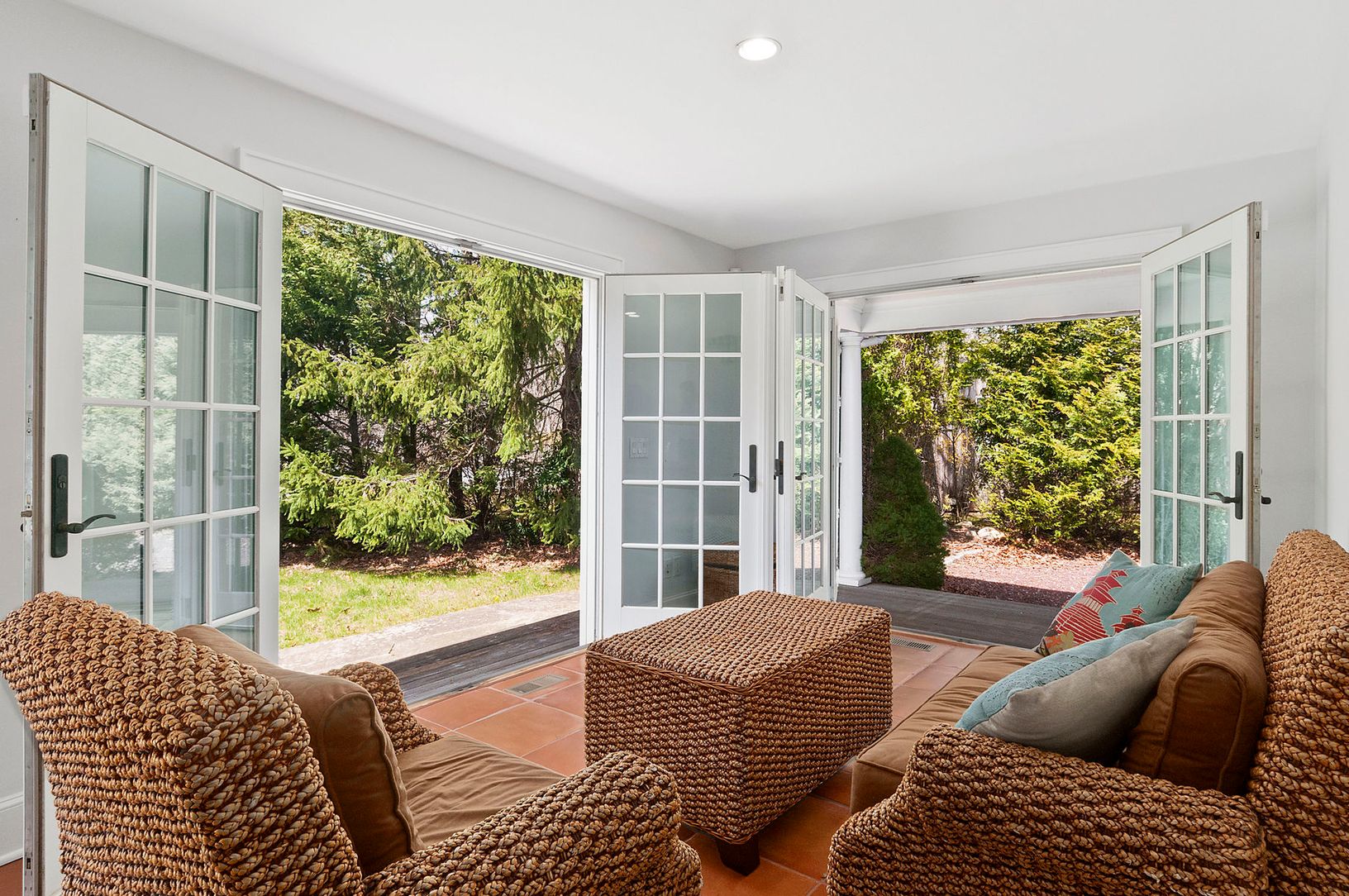 Light filled traditional located moments to Sag Harbor Village shops and restaurants with private beach access, perfect for paddle boarding and kayaking. Offering 3,000 +/- sf of elegantly appointed living space, with four bedrooms, four full and once half bath. The foyer leads to open plan living spaces featuring living room with gas fireplace sitting area, den, kitchen with top appliances and dining room. French doors can be found in all pr