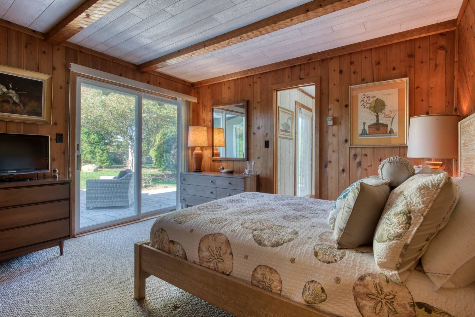 Situated just a short stroll from the ocean beach, this updated Ditch Plains beach house presents an inviting haven with three bedrooms, two bathrooms, and a half bathroom. The kitchen features stainless steel appliances and seamlessly connects to the dining area and a spacious living room. A conveniently located laundry room, complete with a shower and direct outdoor access, proves ideal for post-beach cleanups. The outdoor space is professio