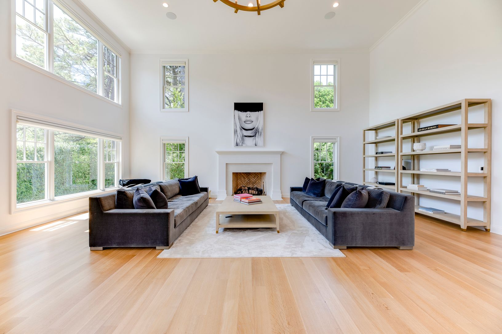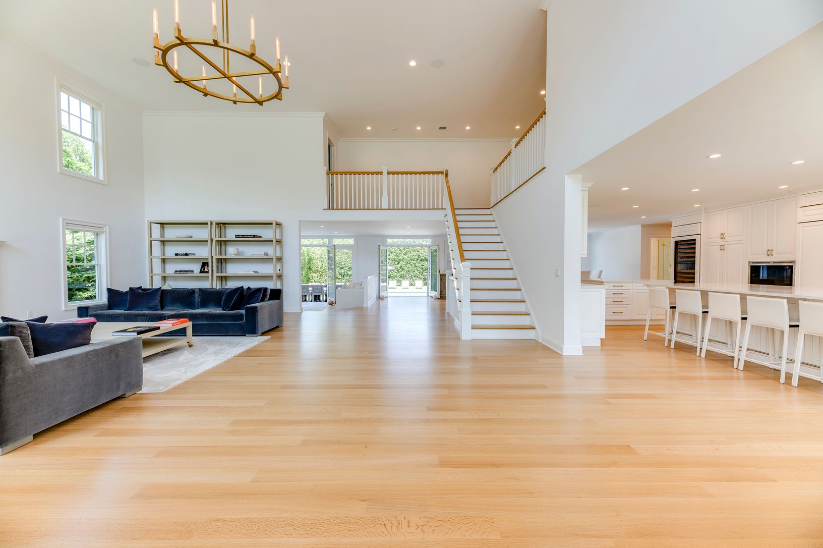 This gated, beautifully designed 5 bedroom, 6 bath home was just recently completed sparing no expense and is being sold fully furnished. The expansive gourmet kitchen boasts two oversized islands, a subzero wine tower, refrigerator and draws, two cove dishwashers, a wolf six burner double oven and heating drawers. The open floor plan is anchored by a sun filled, double height vaulted living room, a formal dining and a casual seating area with